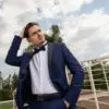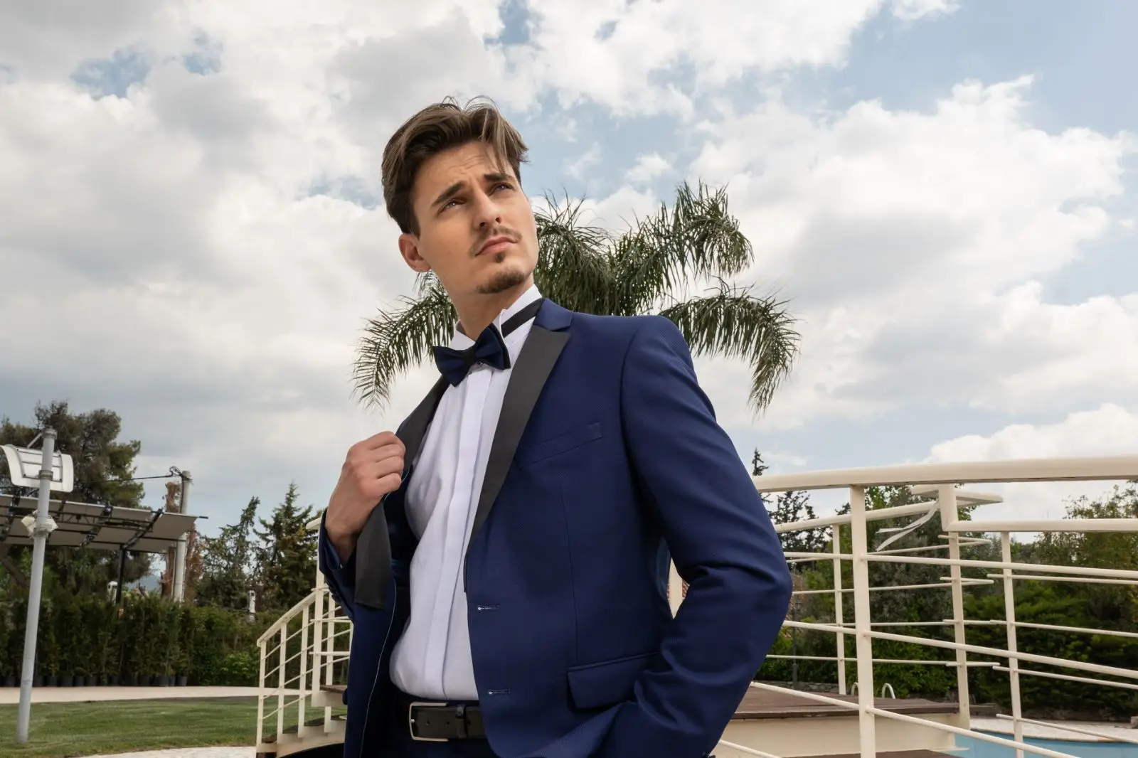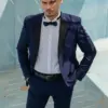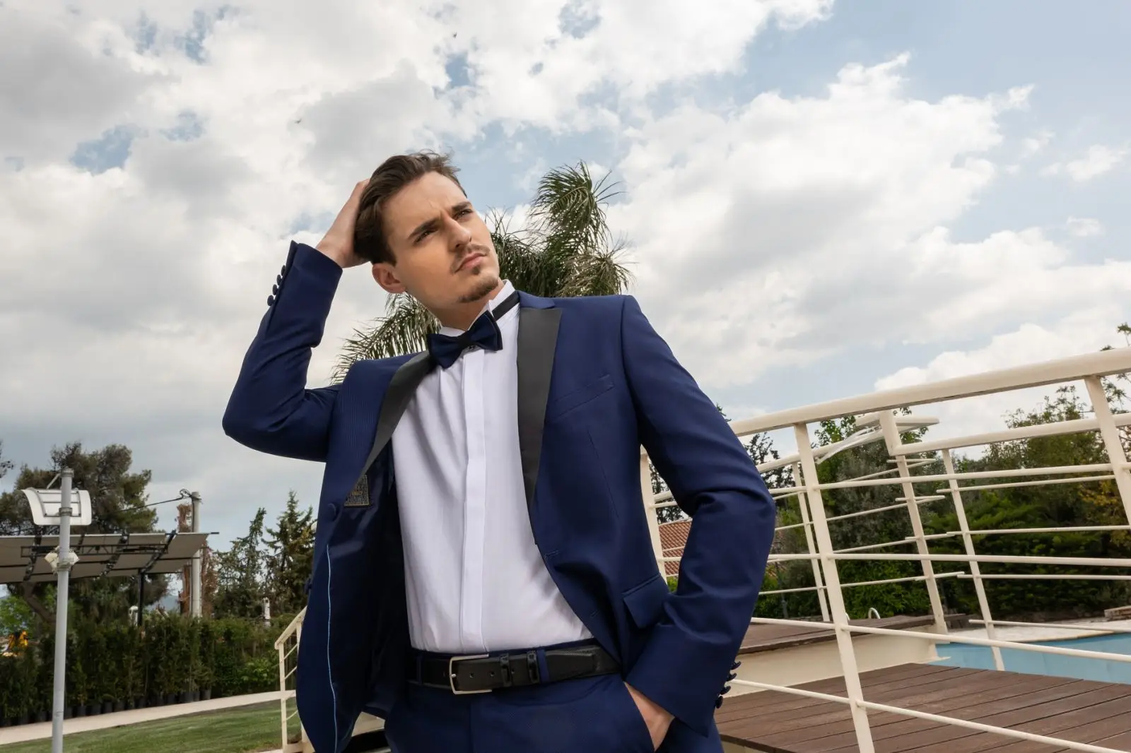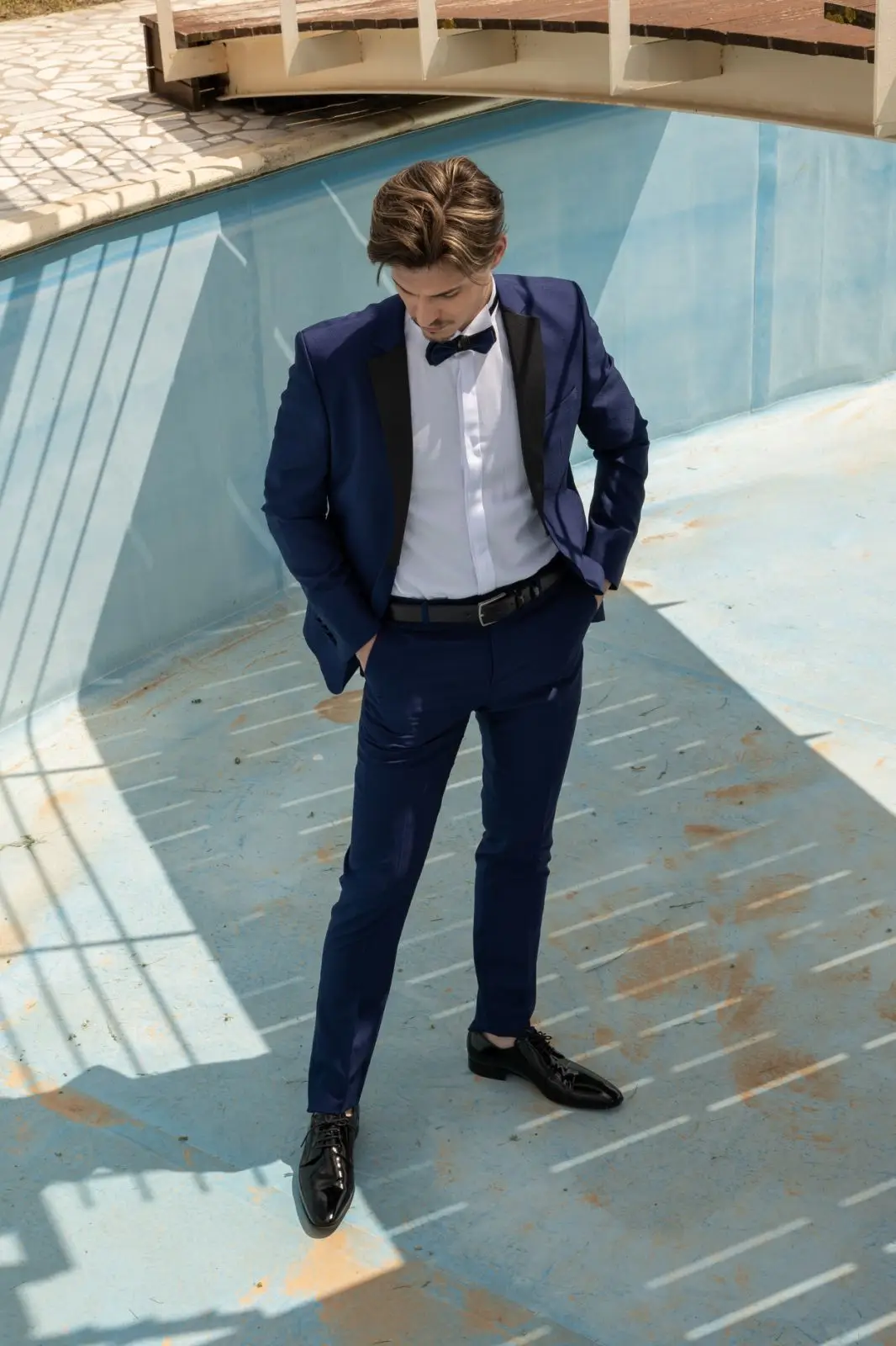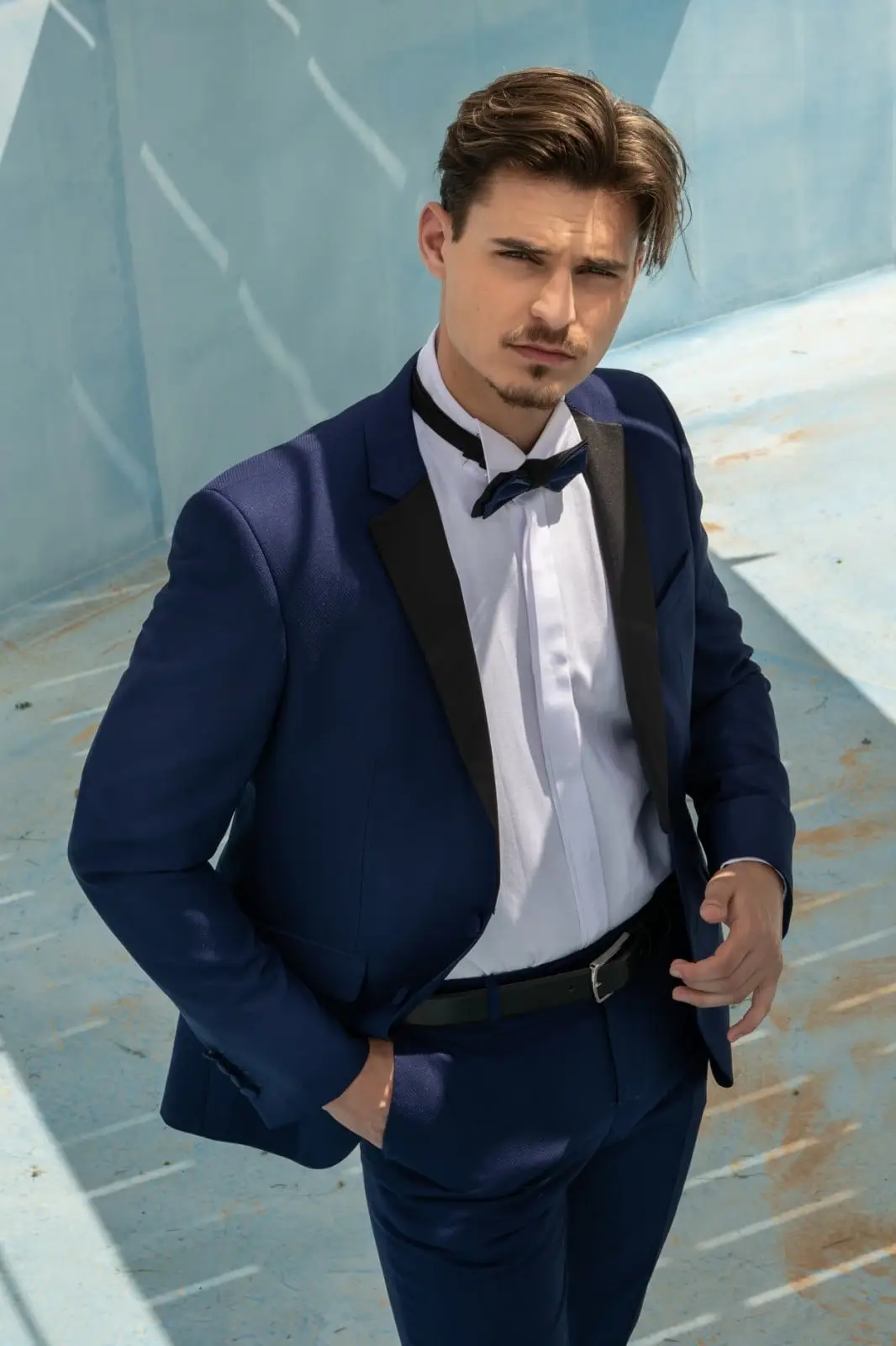 Ανδρικό Γαμπριάτικο Κοστούμι Μπλε Slim Fit Με Αφαιρούμενα Πέτα SU-14