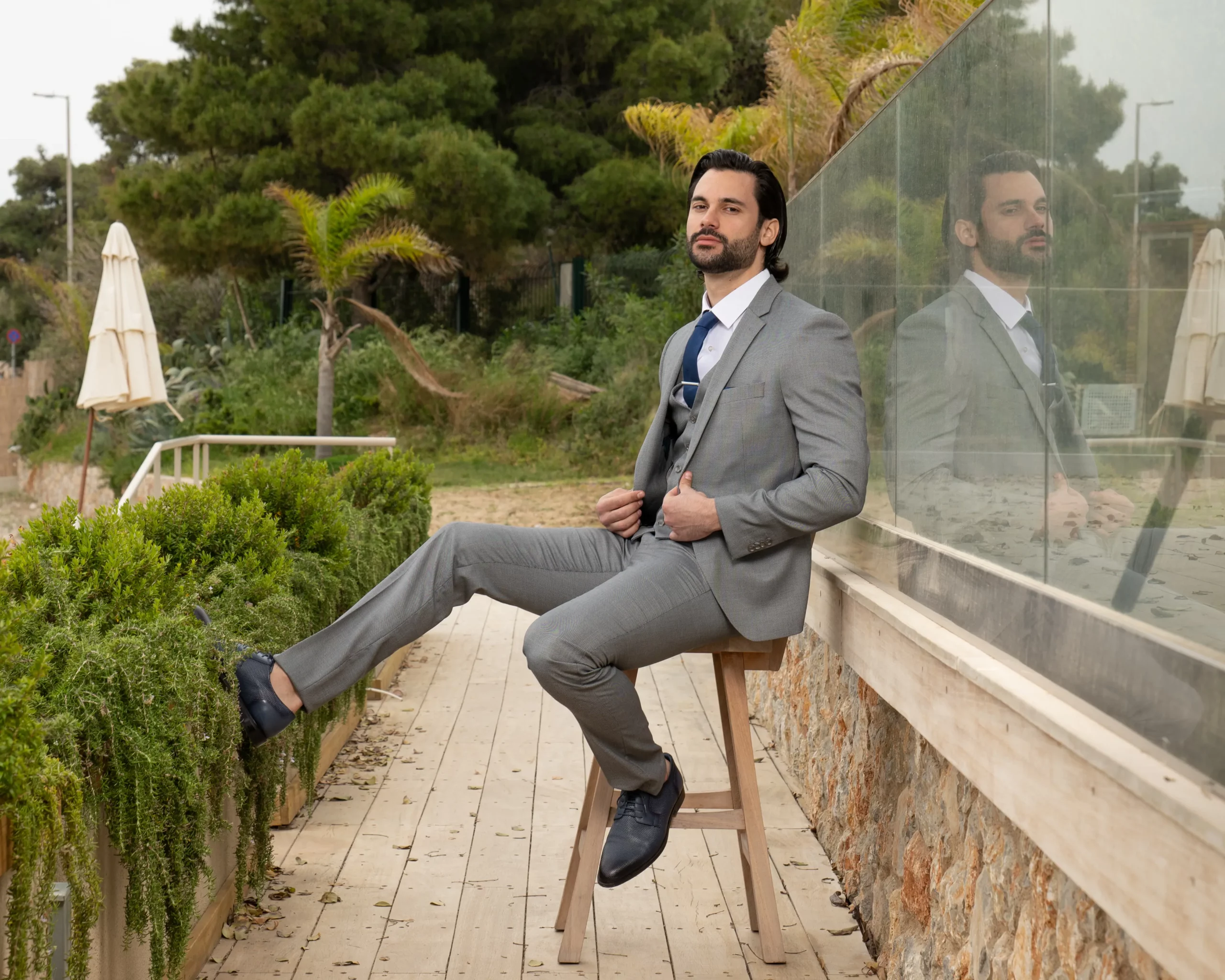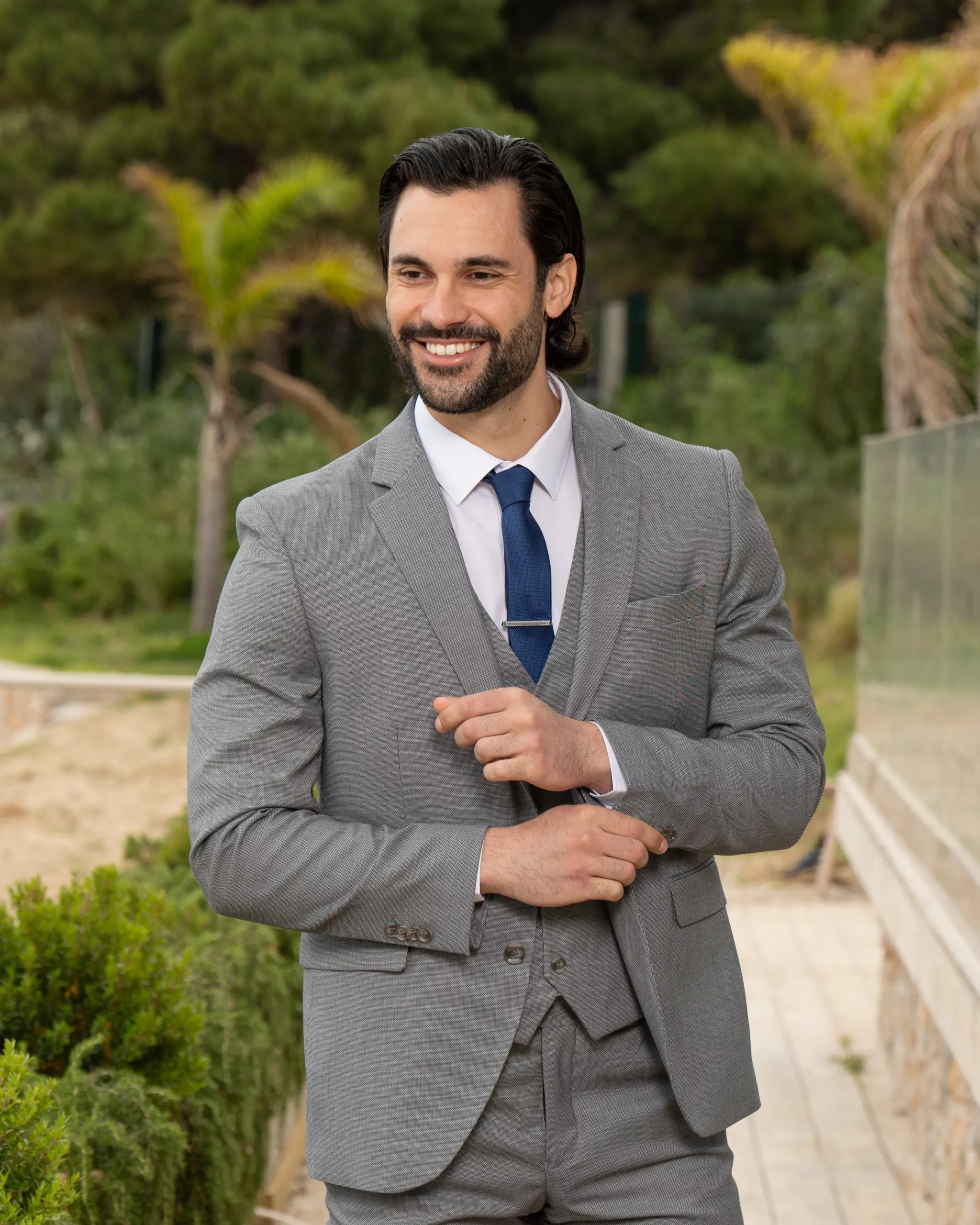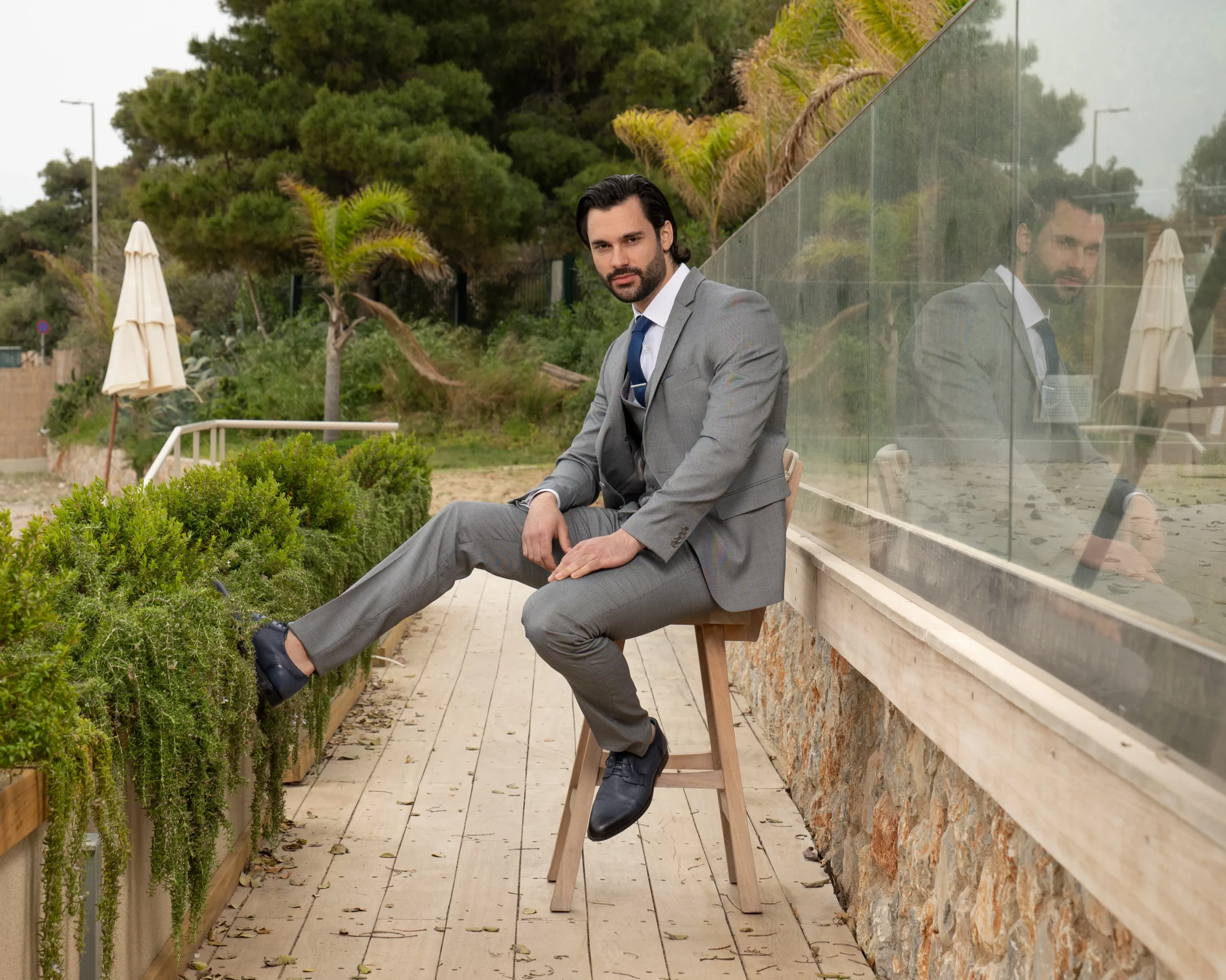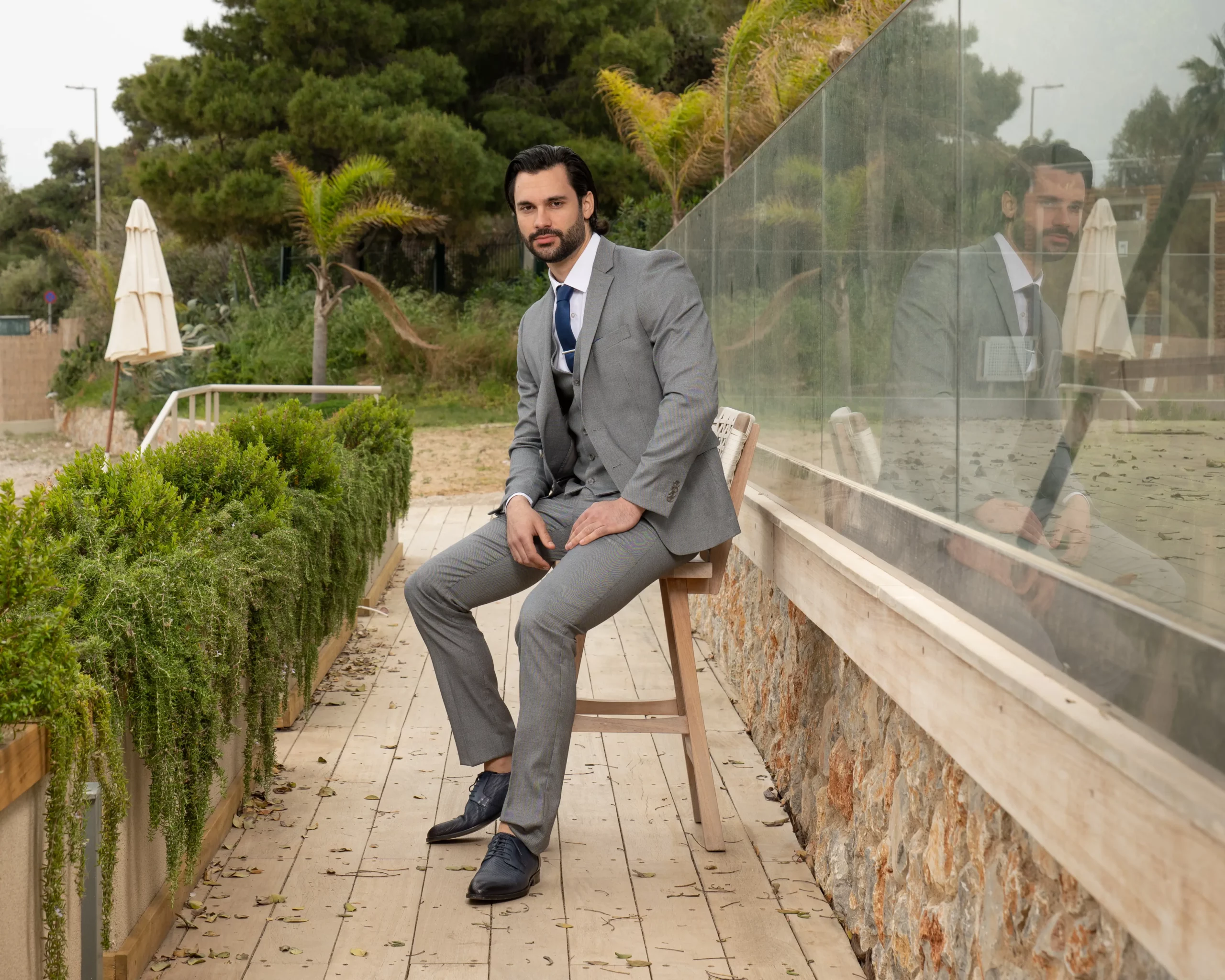 Το γκρι σακάκι και παντελόνι αποτελεί ένα κλασικό συνδυασμό που δεν έχει απογοητεύσει ποτέ, ενώ ο συνδυασμός με την μπλε γραβάτα δίνει κύρος και κομψότητα αντάξια ενός καλού κοστουμιού.