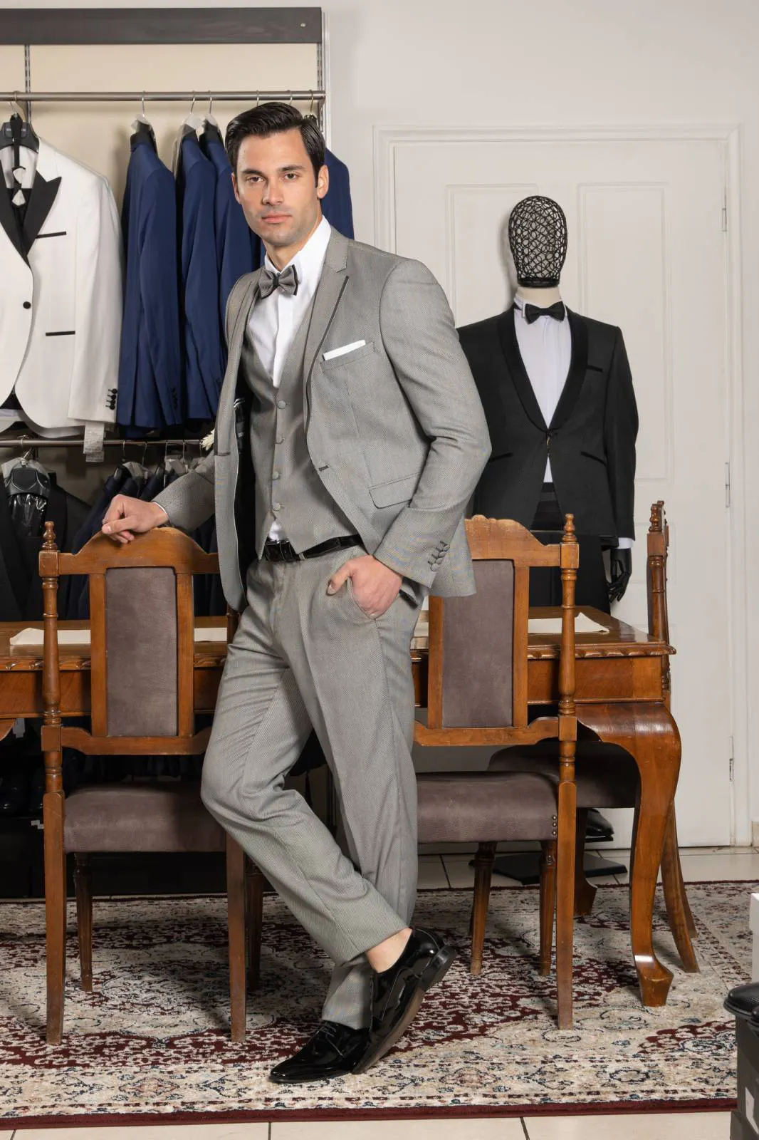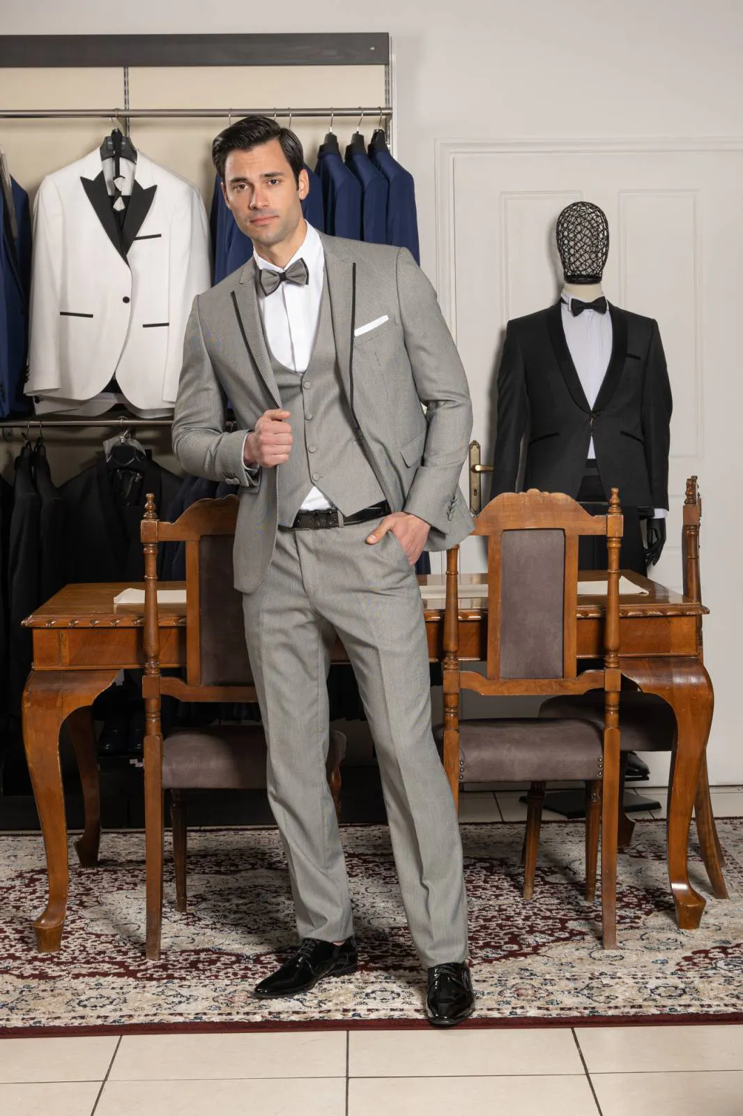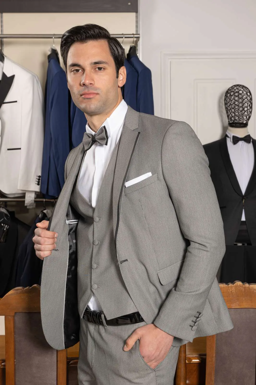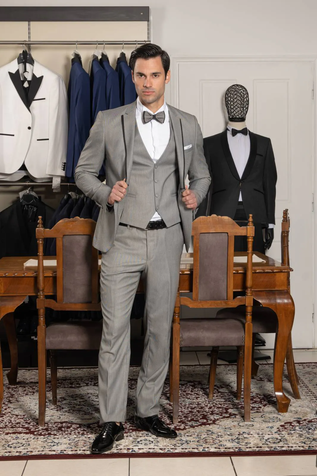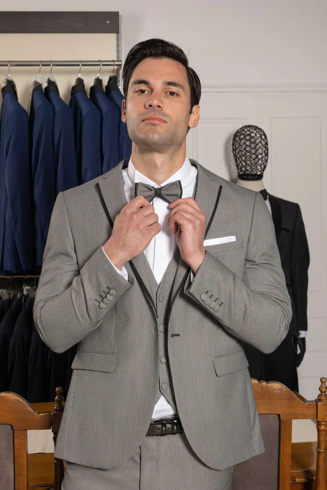 Κοστούμι Γκρι με γιλέκο και παπιγιόν #112