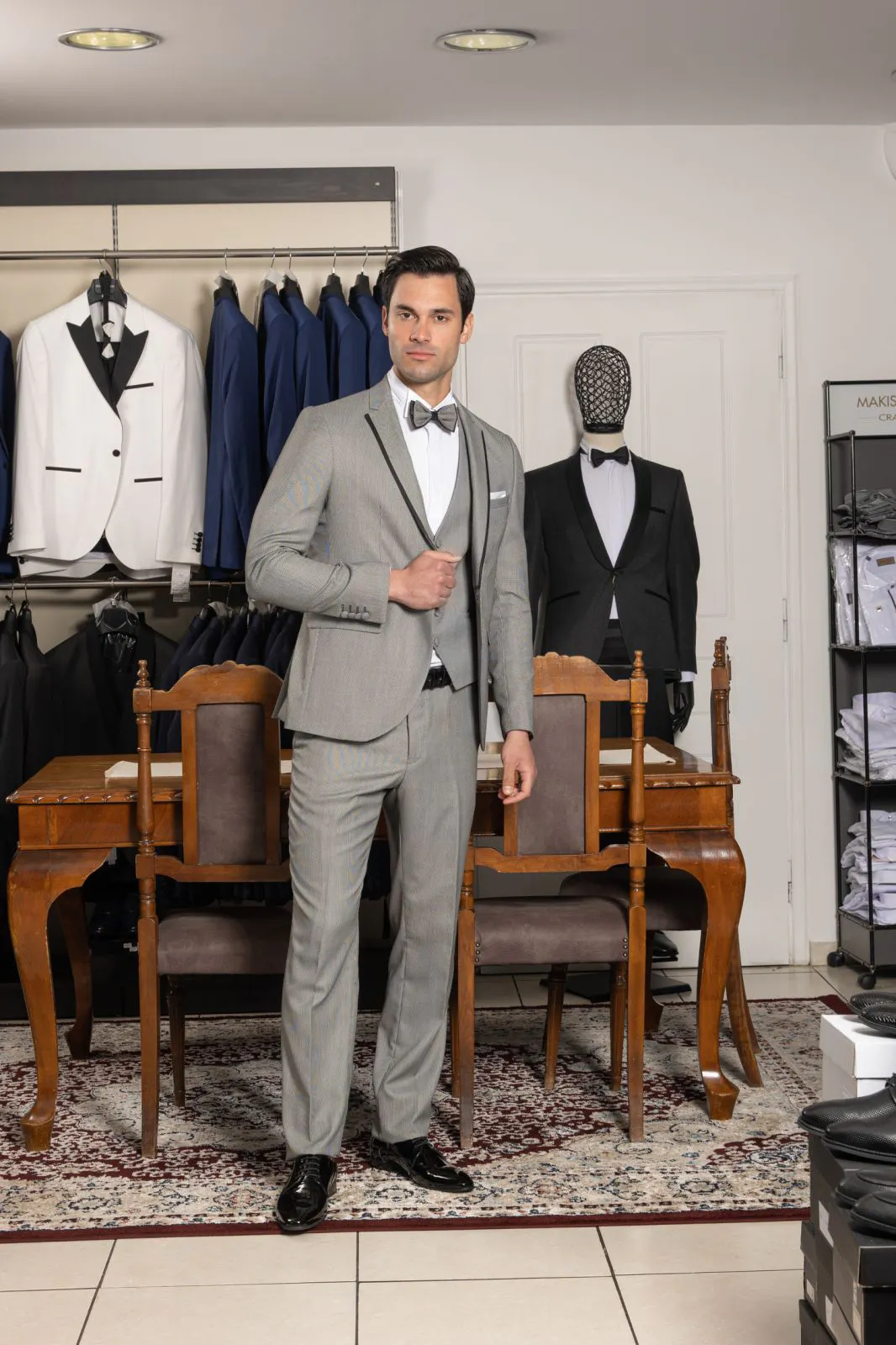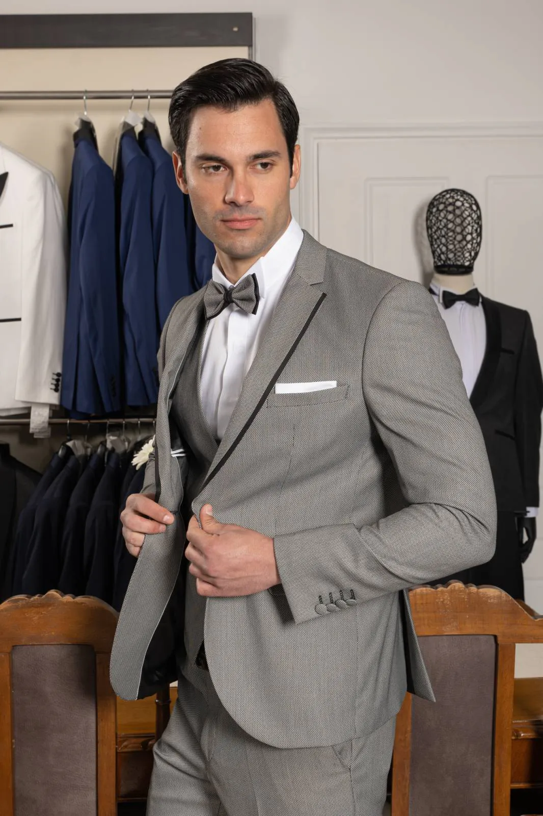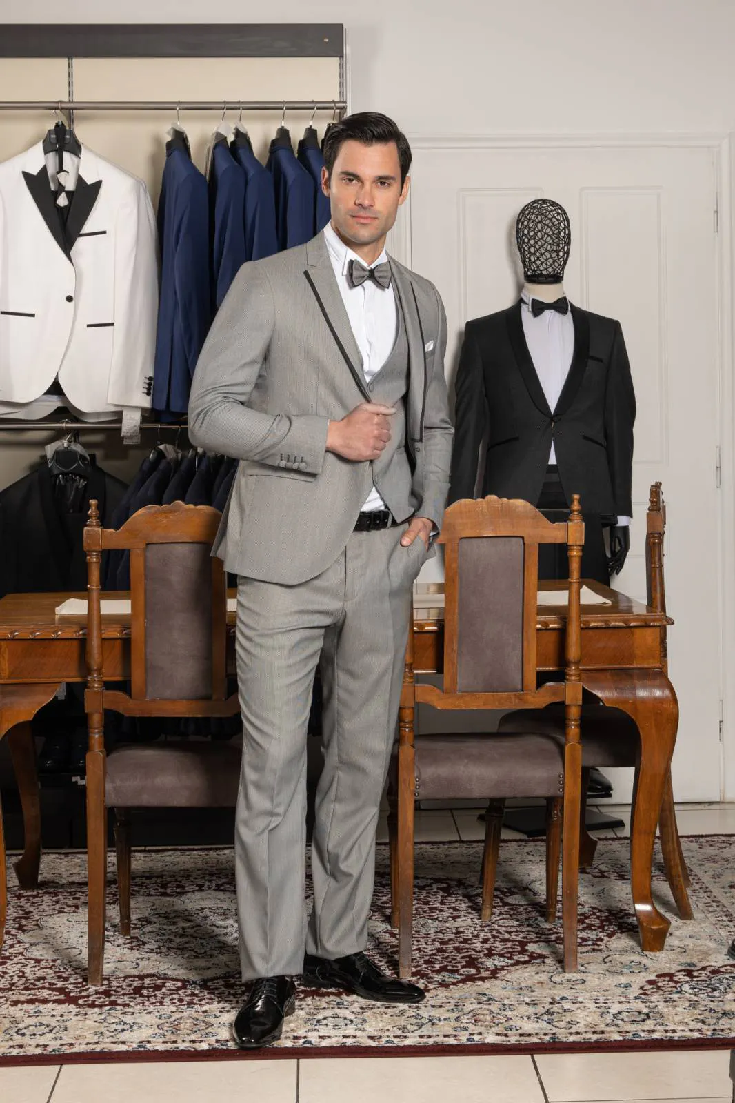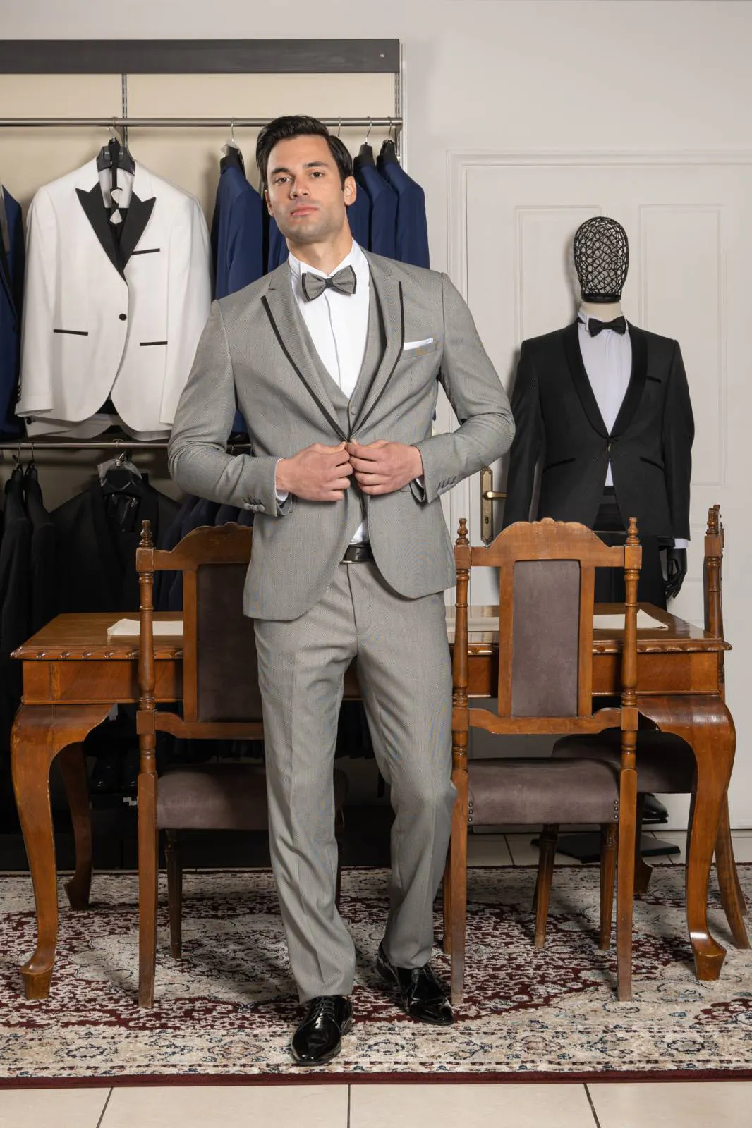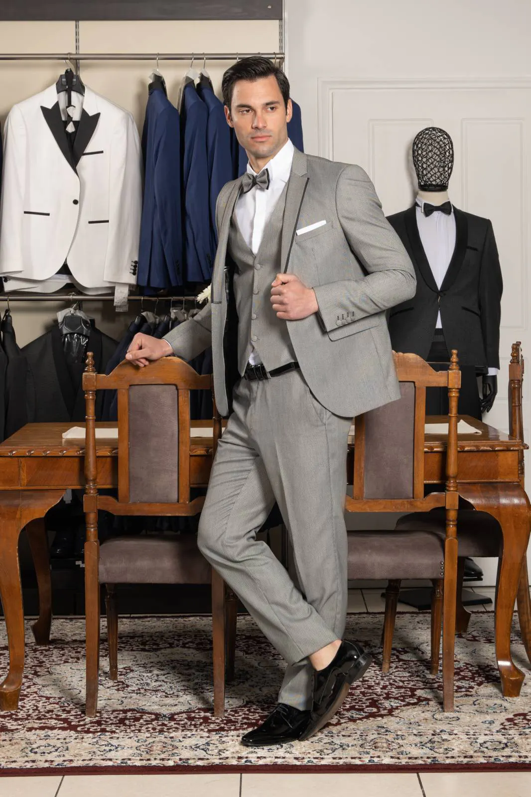Κοστούμι Γκρι με γιλέκο και παπιγιόν #112