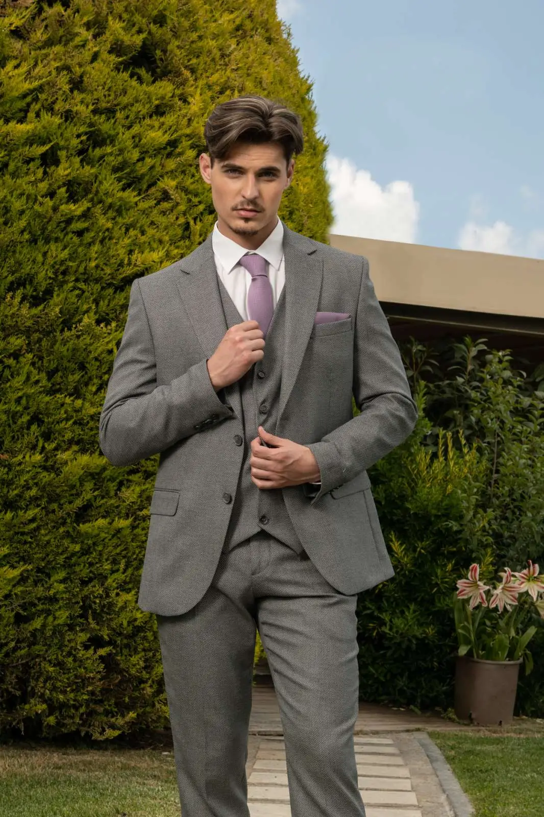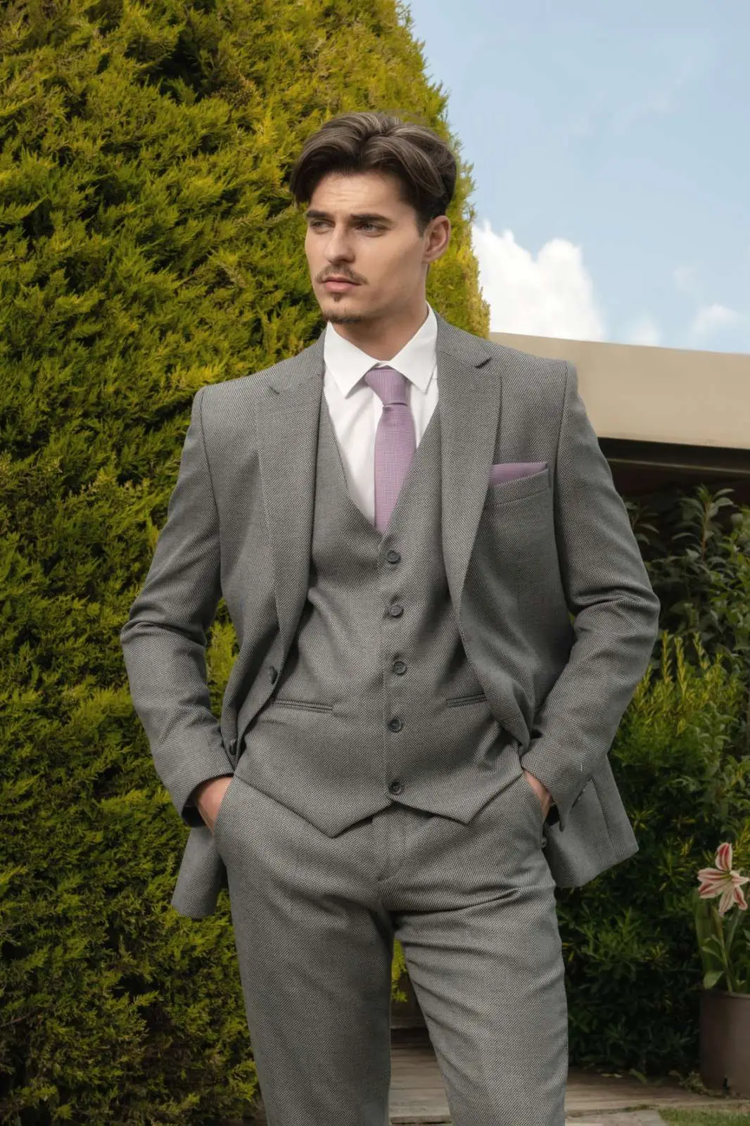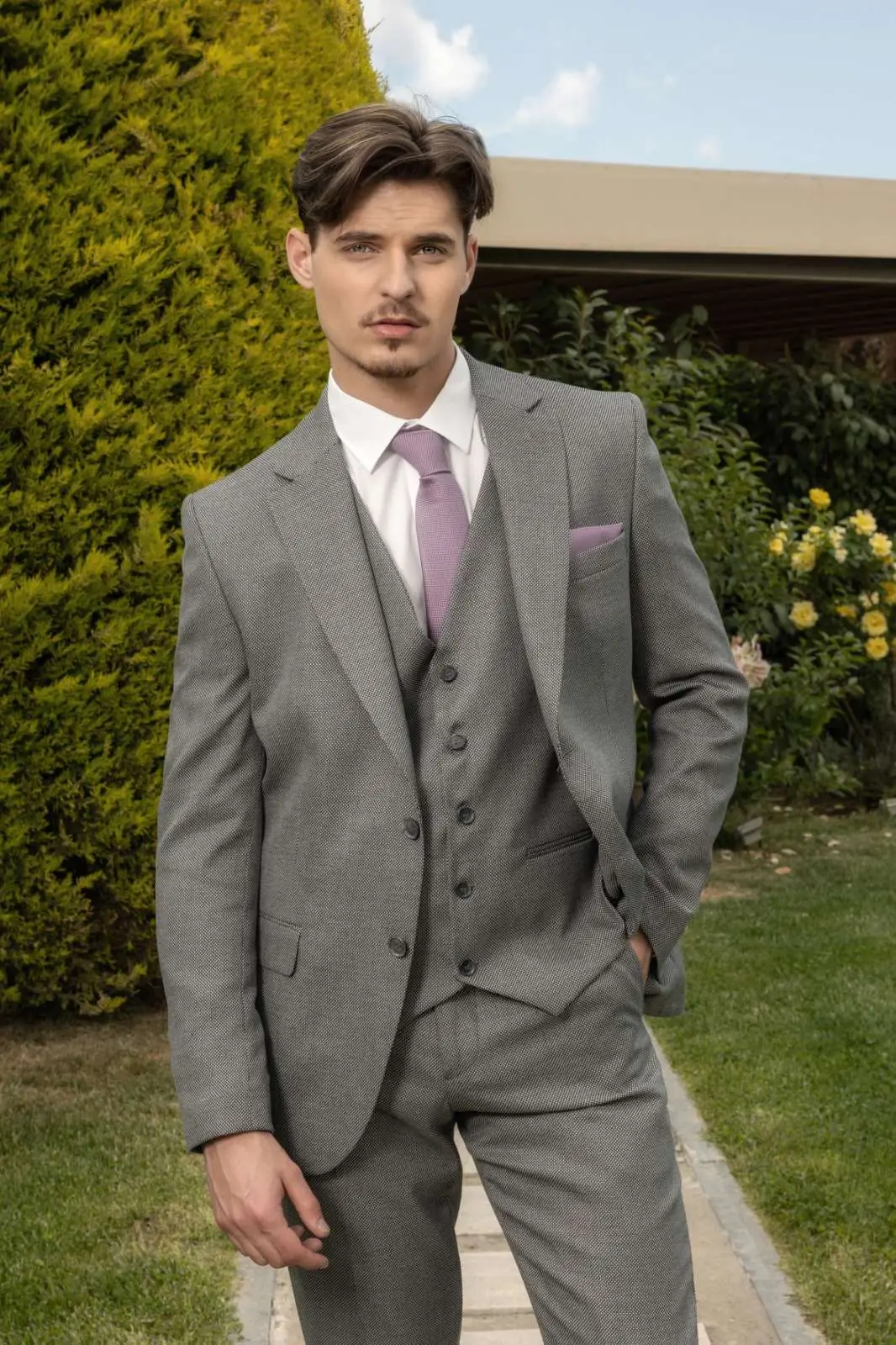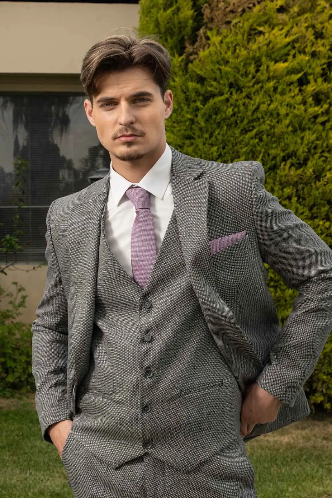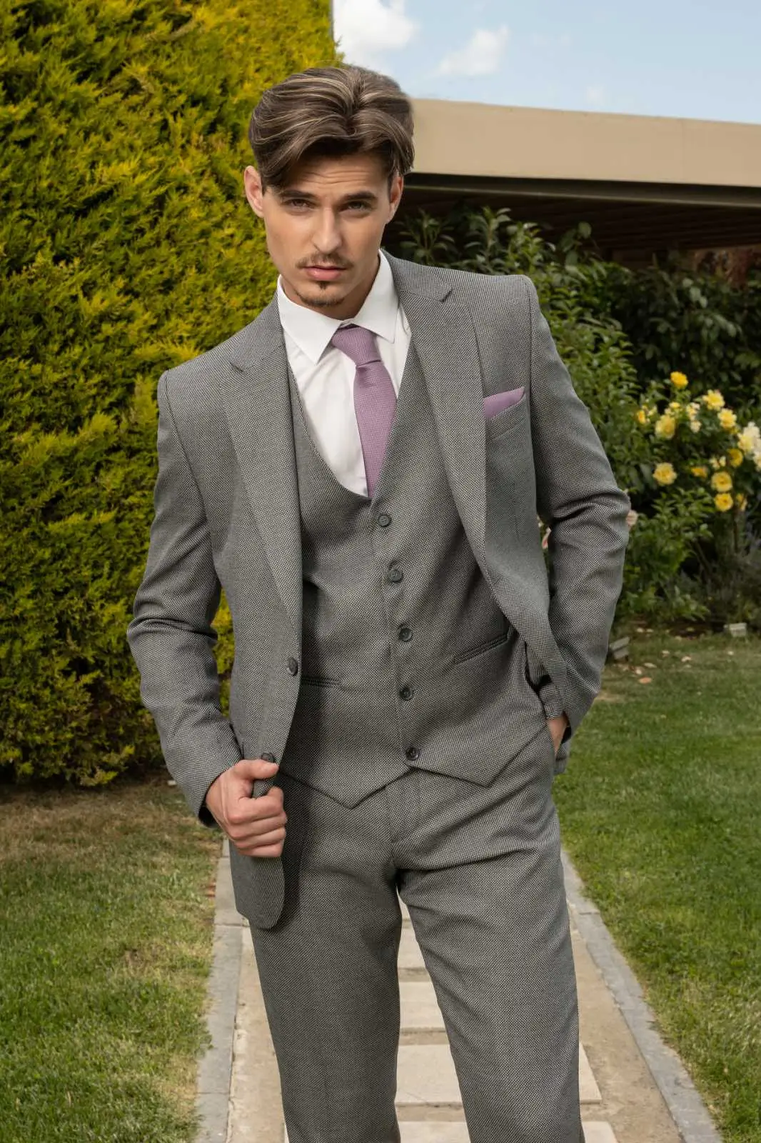Μοντέρνο Κοστούμι σε μοντέρνα slim fit γραμμή, μπορεί να φορεθεί σε κάθε περίπτωση για να σας κάνει να κερδίσετε τις εντυπώσεις. Το γιλέκο έρχεται προαιρετικά για να συμπληρώσει το ντύσιμο σας.