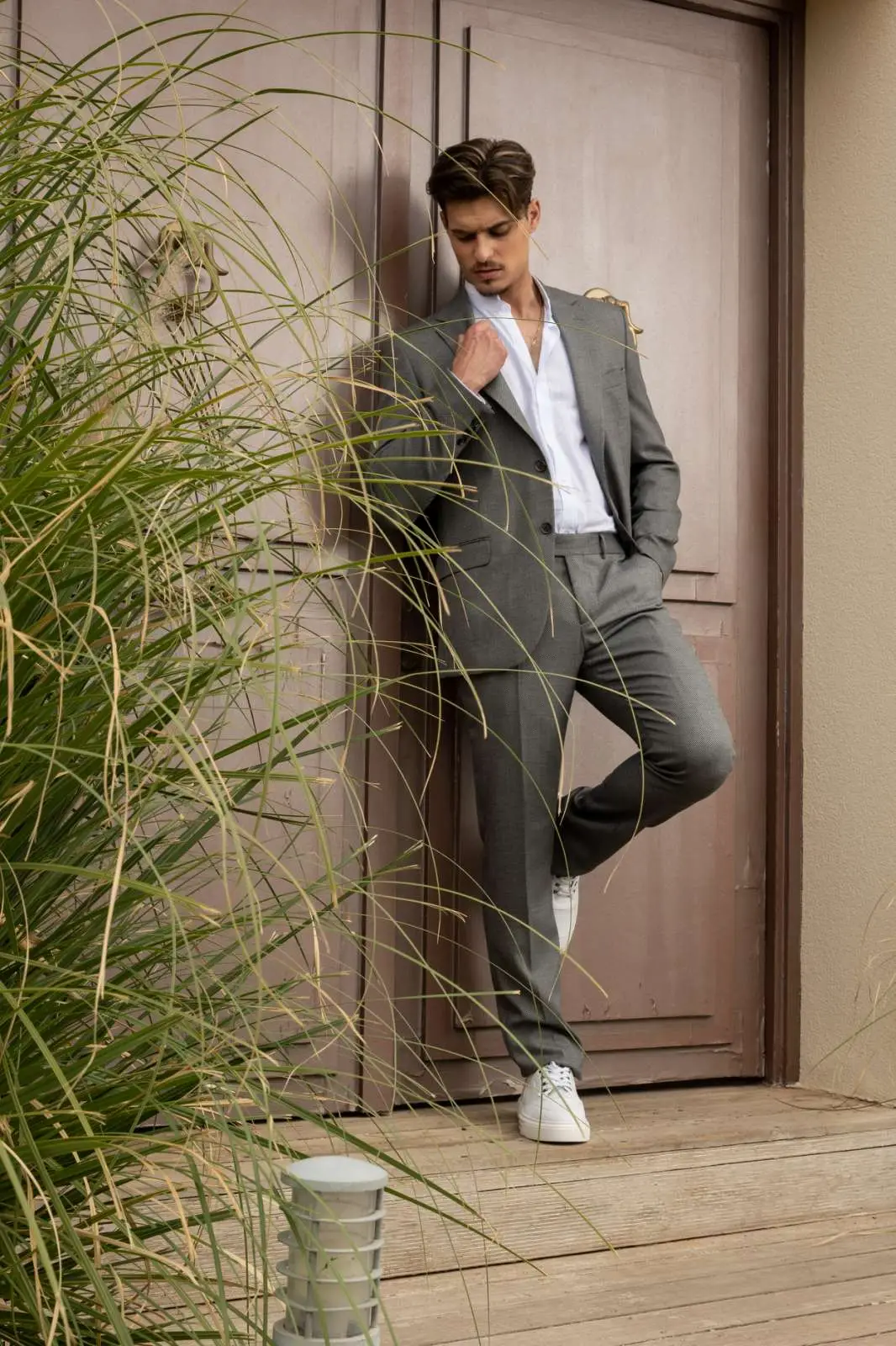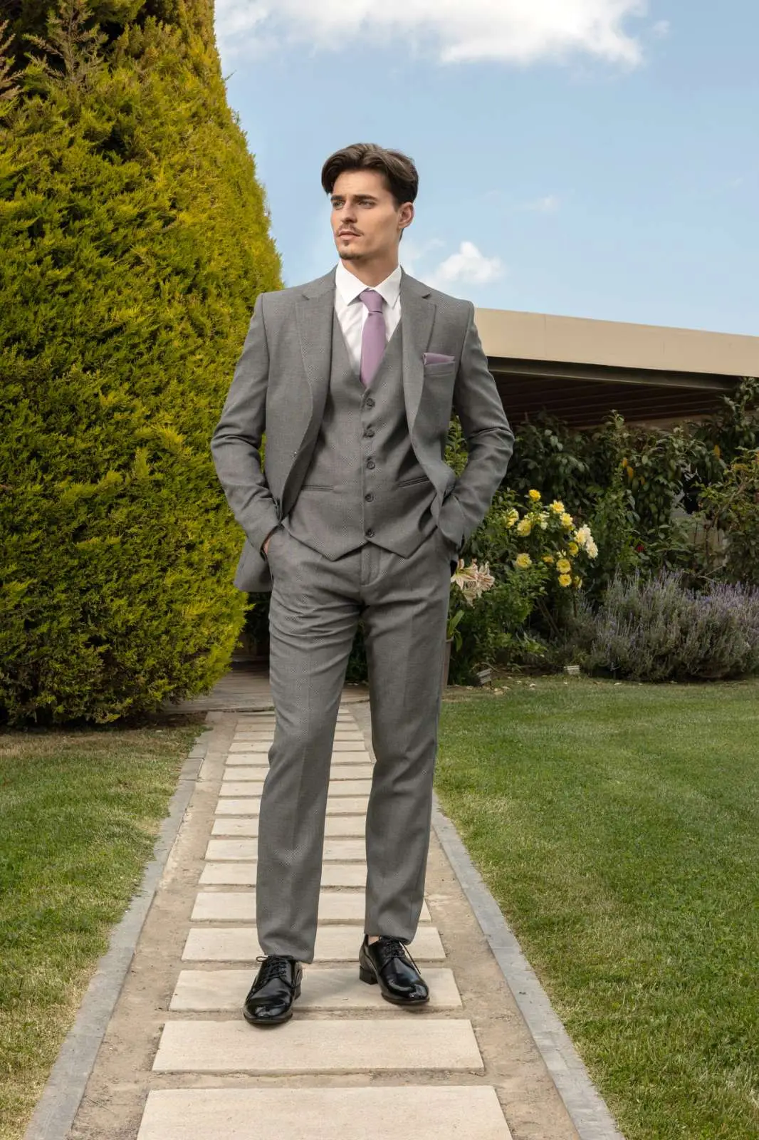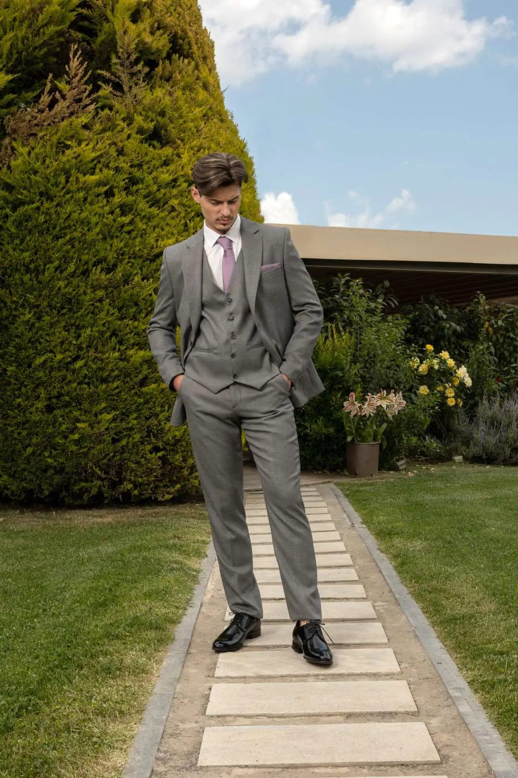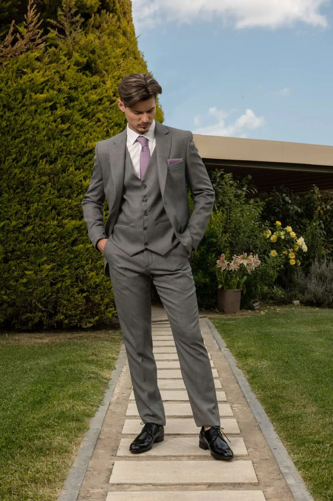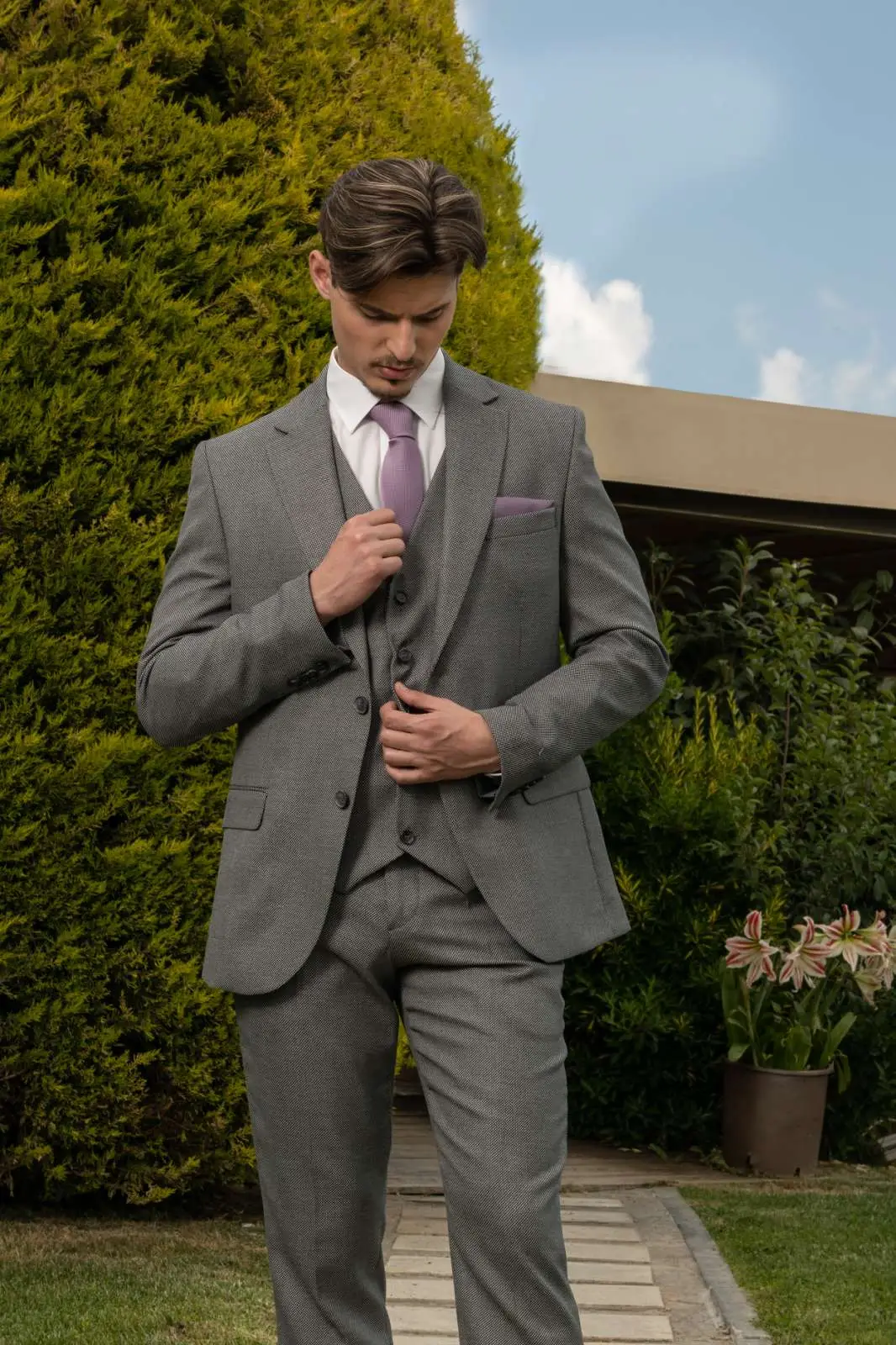 Μοντέρνο Κοστούμι σε μοντέρνα slim fit γραμμή, μπορεί να φορεθεί σε κάθε περίπτωση για να σας κάνει να κερδίσετε τις εντυπώσεις. Το γιλέκο έρχεται προαιρετικά για να συμπληρώσει το ντύσιμο σας.
