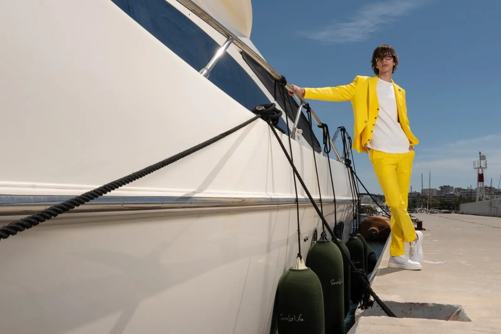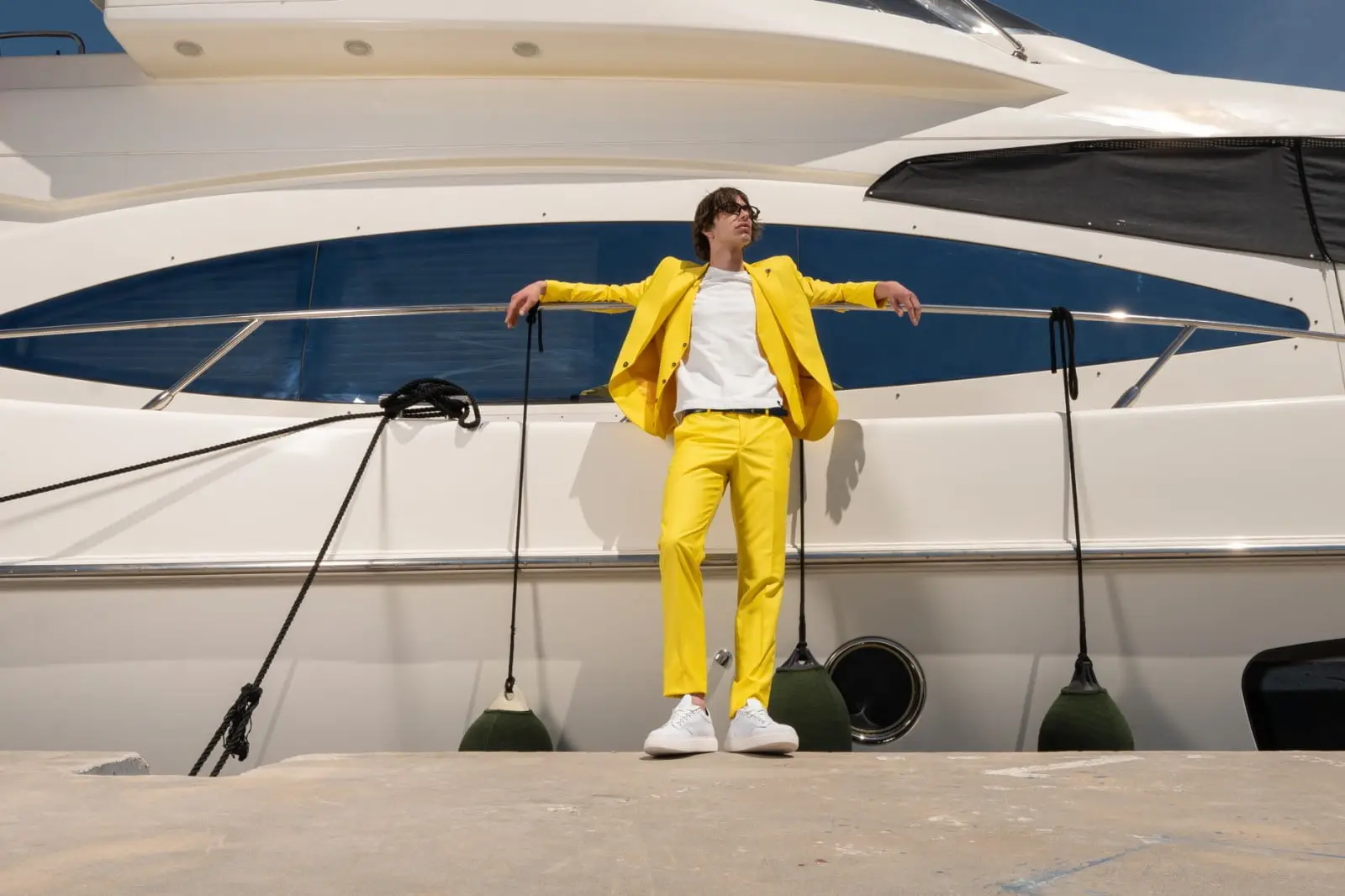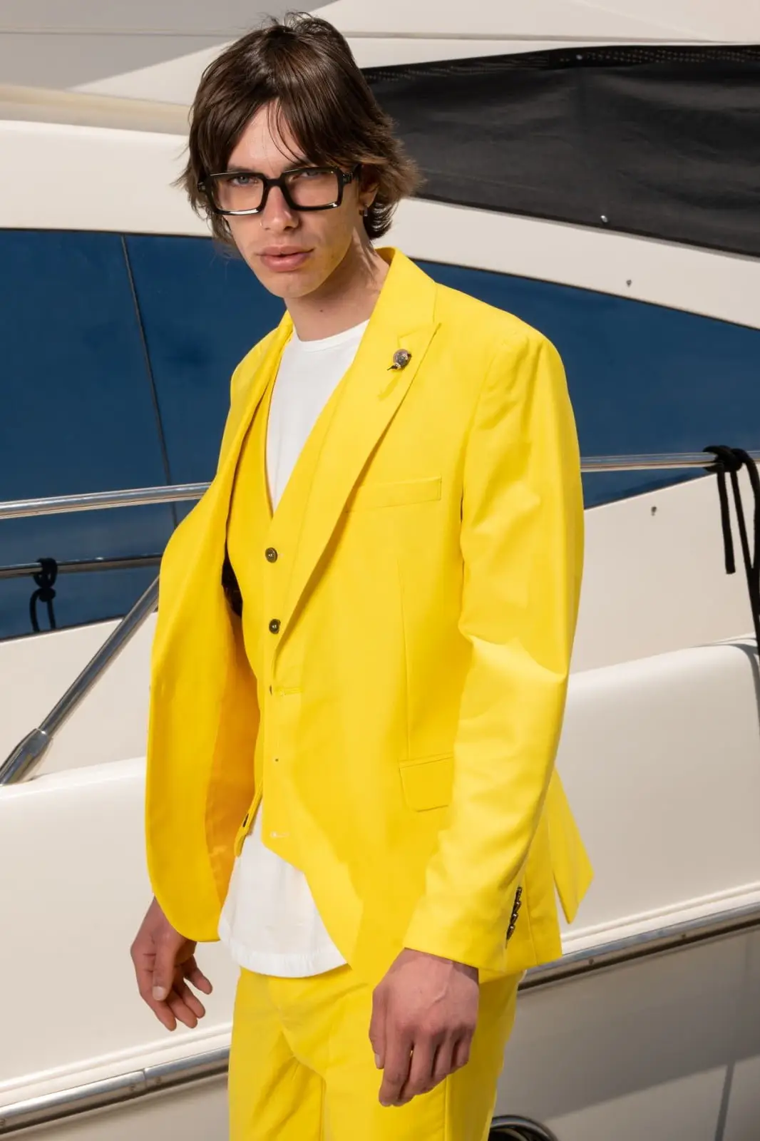 Ένα χρώμα που δηλώνει ότι το 2023 ήρθε για να κάνει την ανδρική μόδα ξεχωριστή. Η γραμμή είναι μοντέρνα slim fit και η τιμή αφορά σακάκι, παντελόνι και γιλέκο.