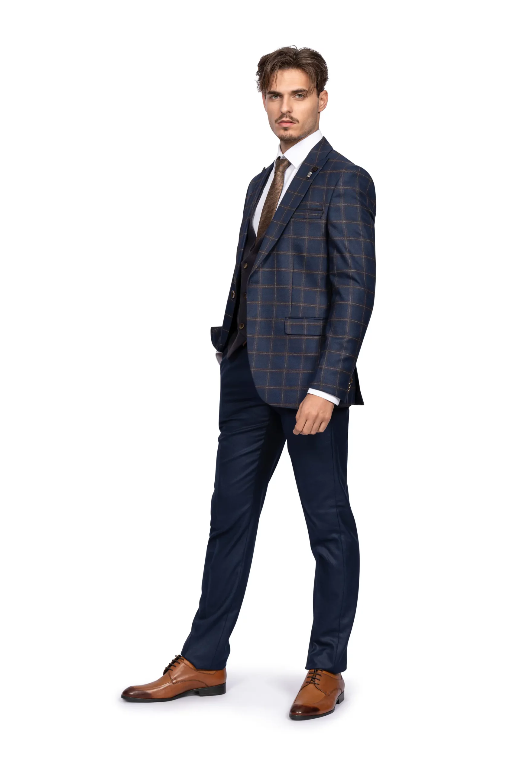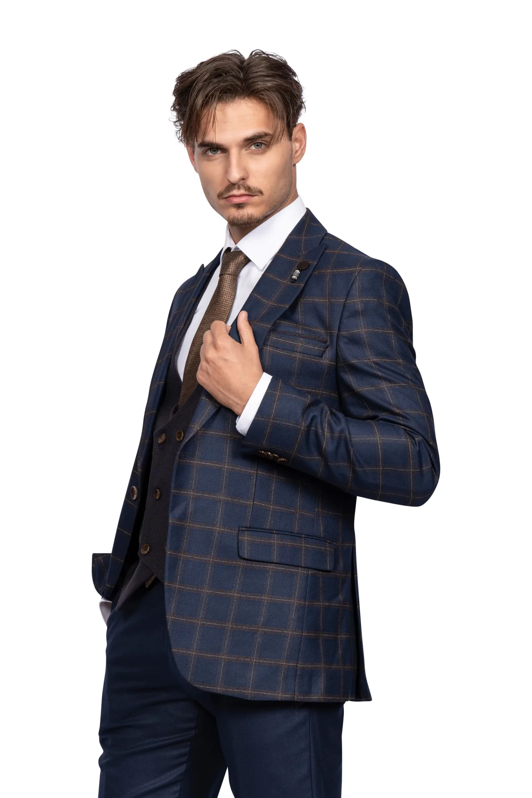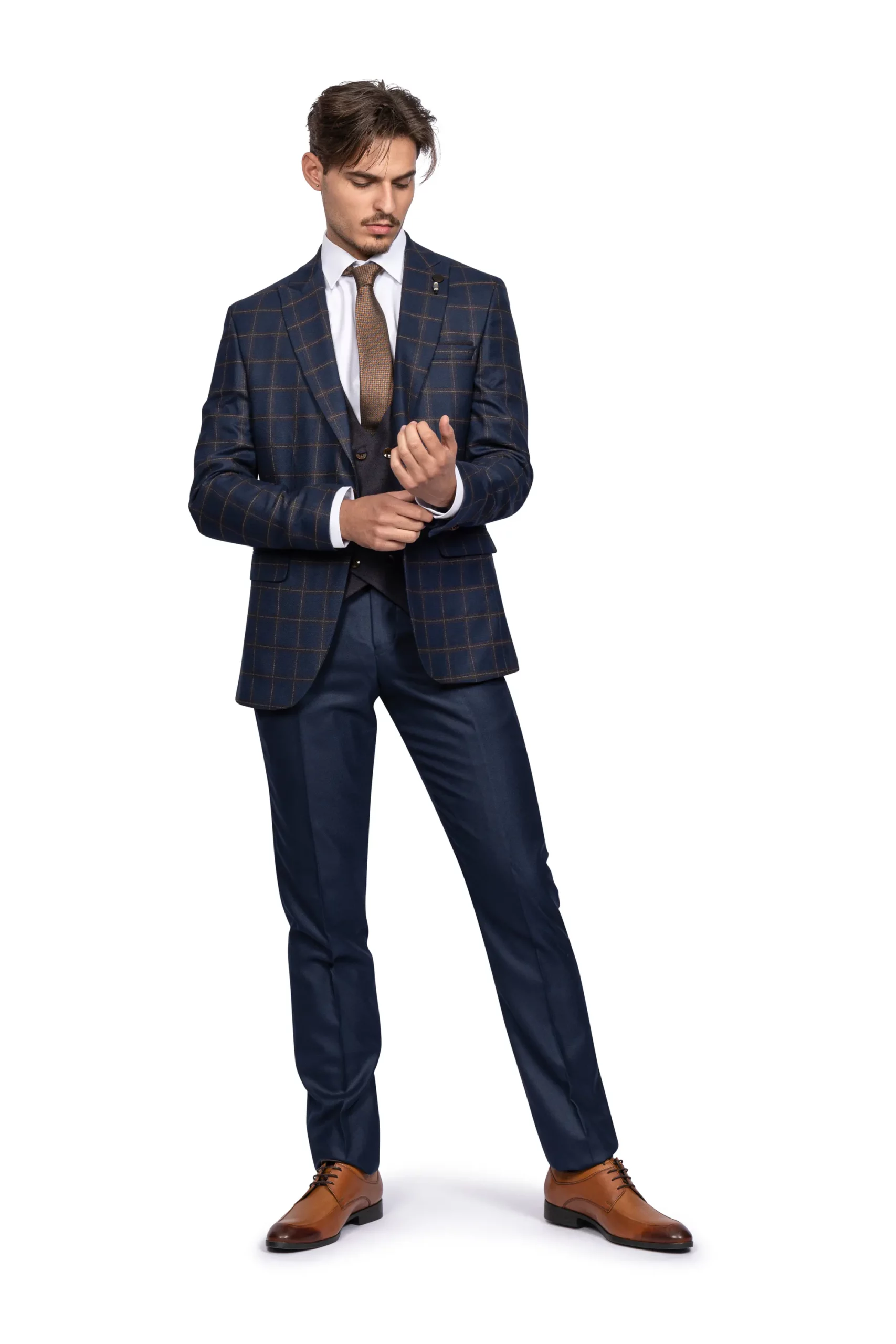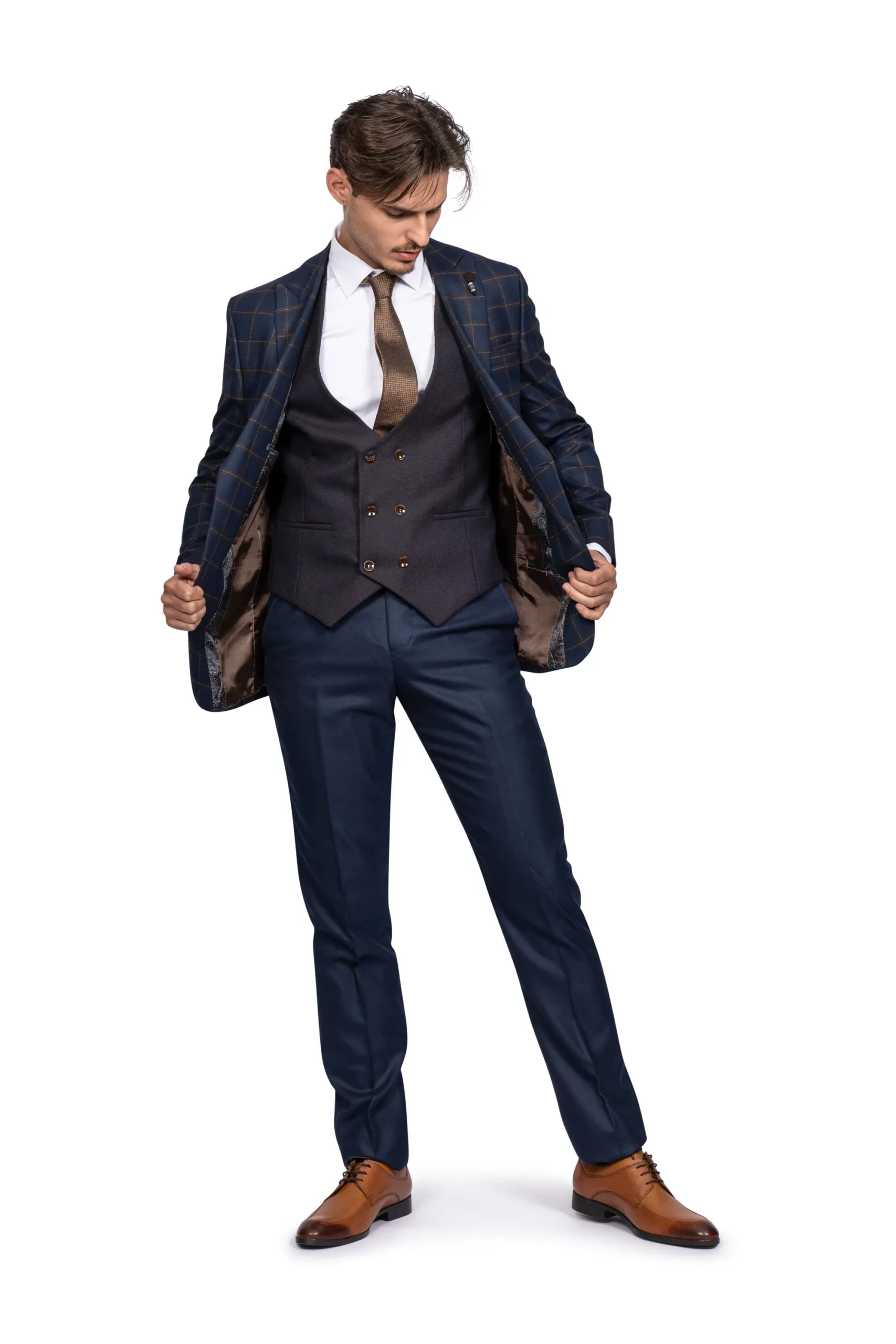 Κοστούμι Ανδρικό Καρό Μπλε – Καφέ Με Καφέ Γιλέκο 161