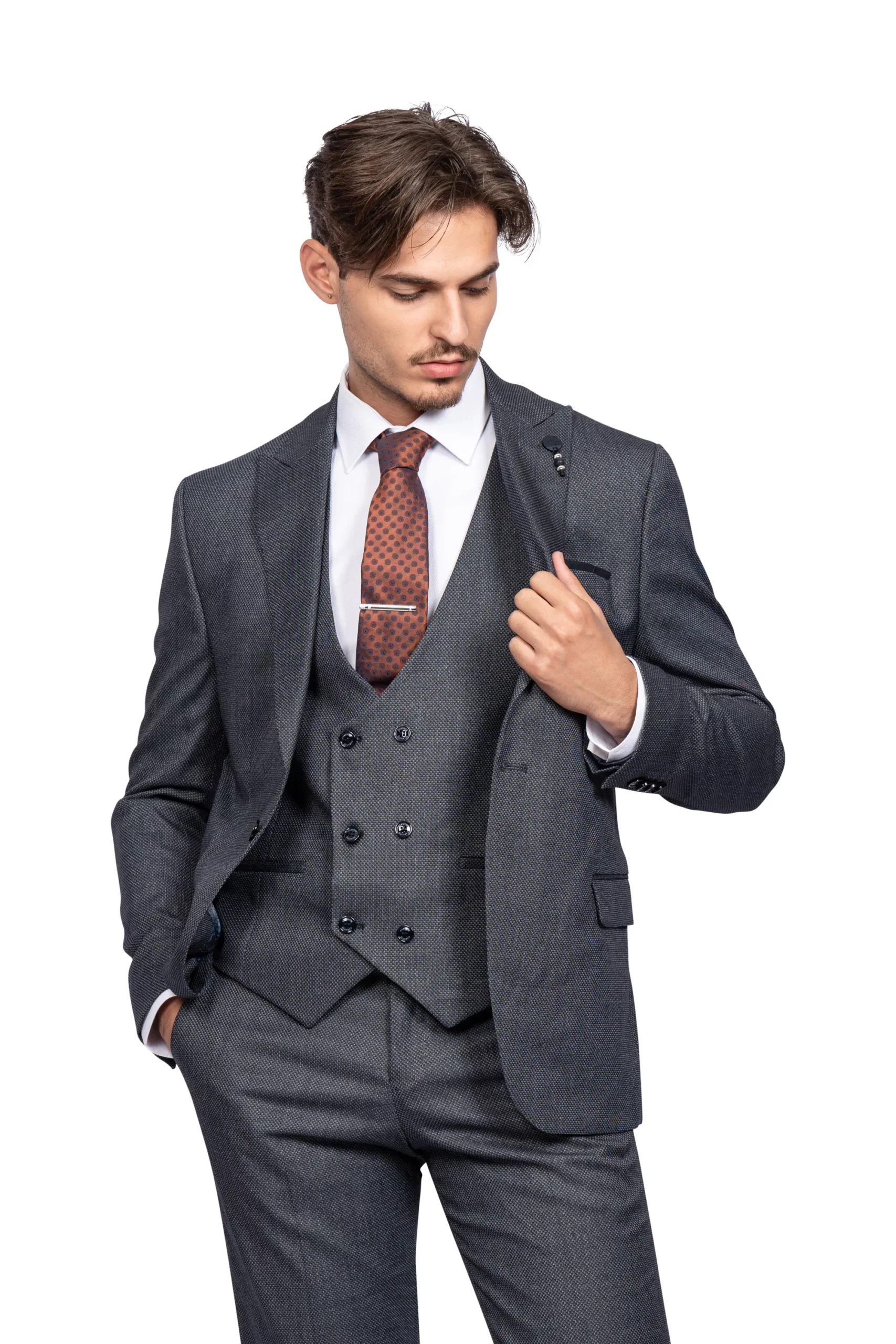 Κοστούμι Ανδρικό Γκρι Με Γκρι Γιλέκο