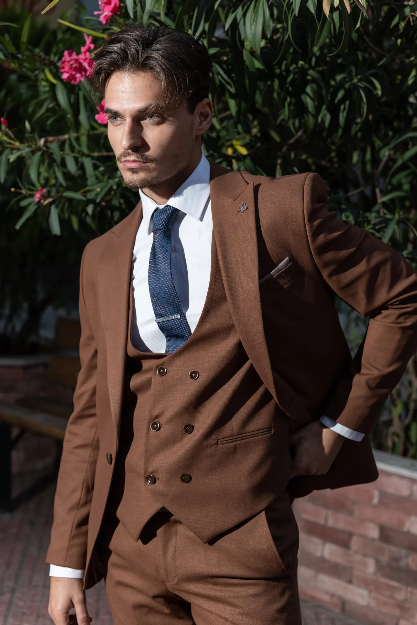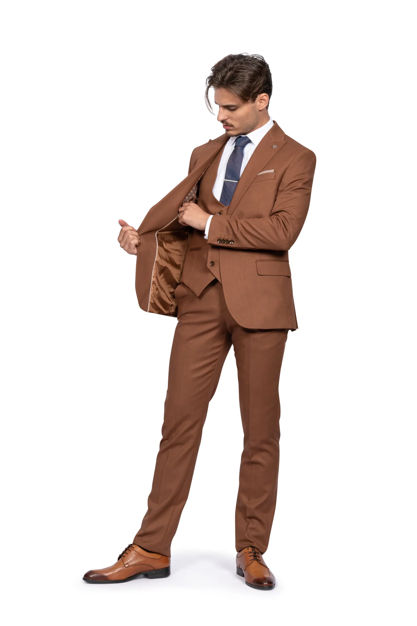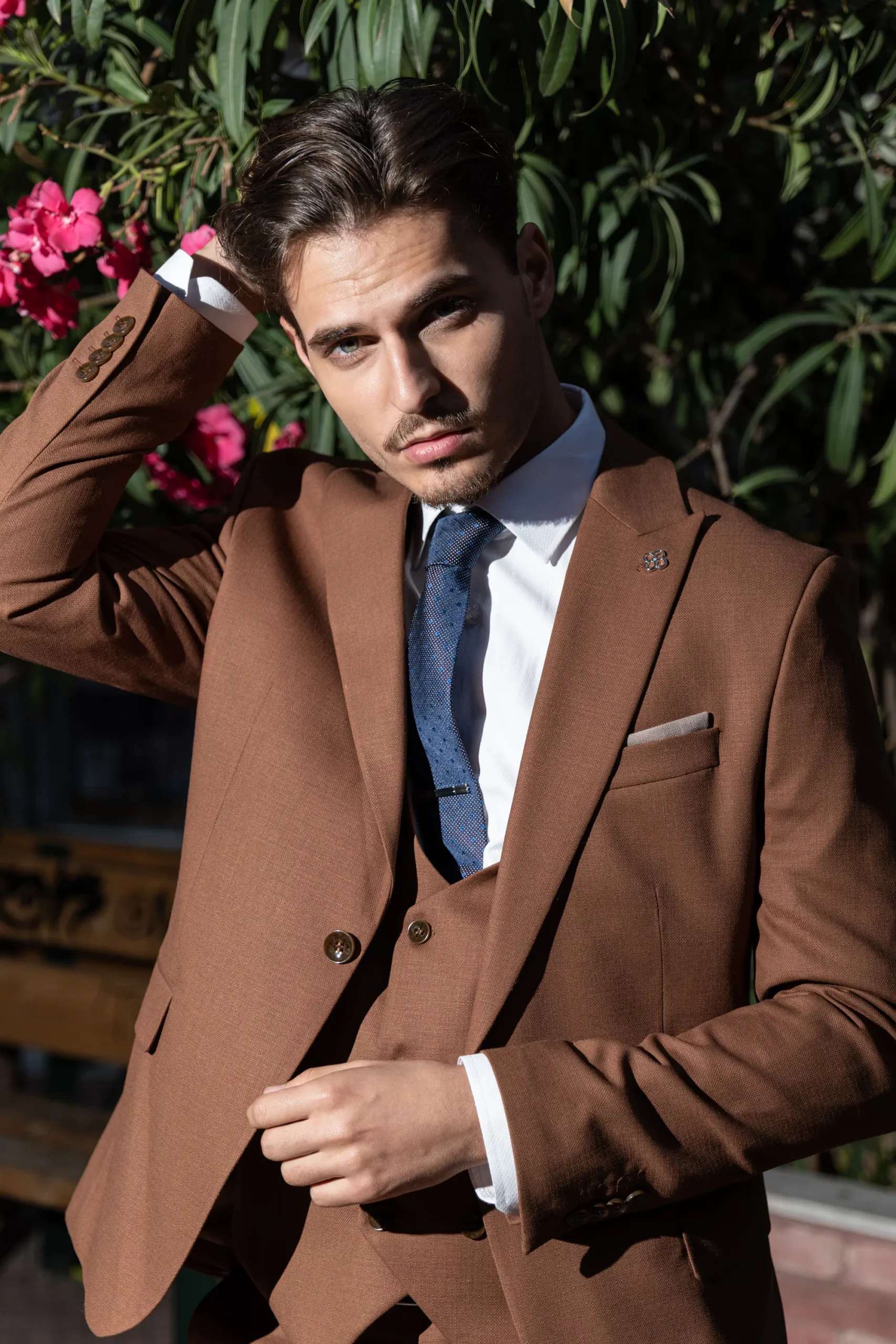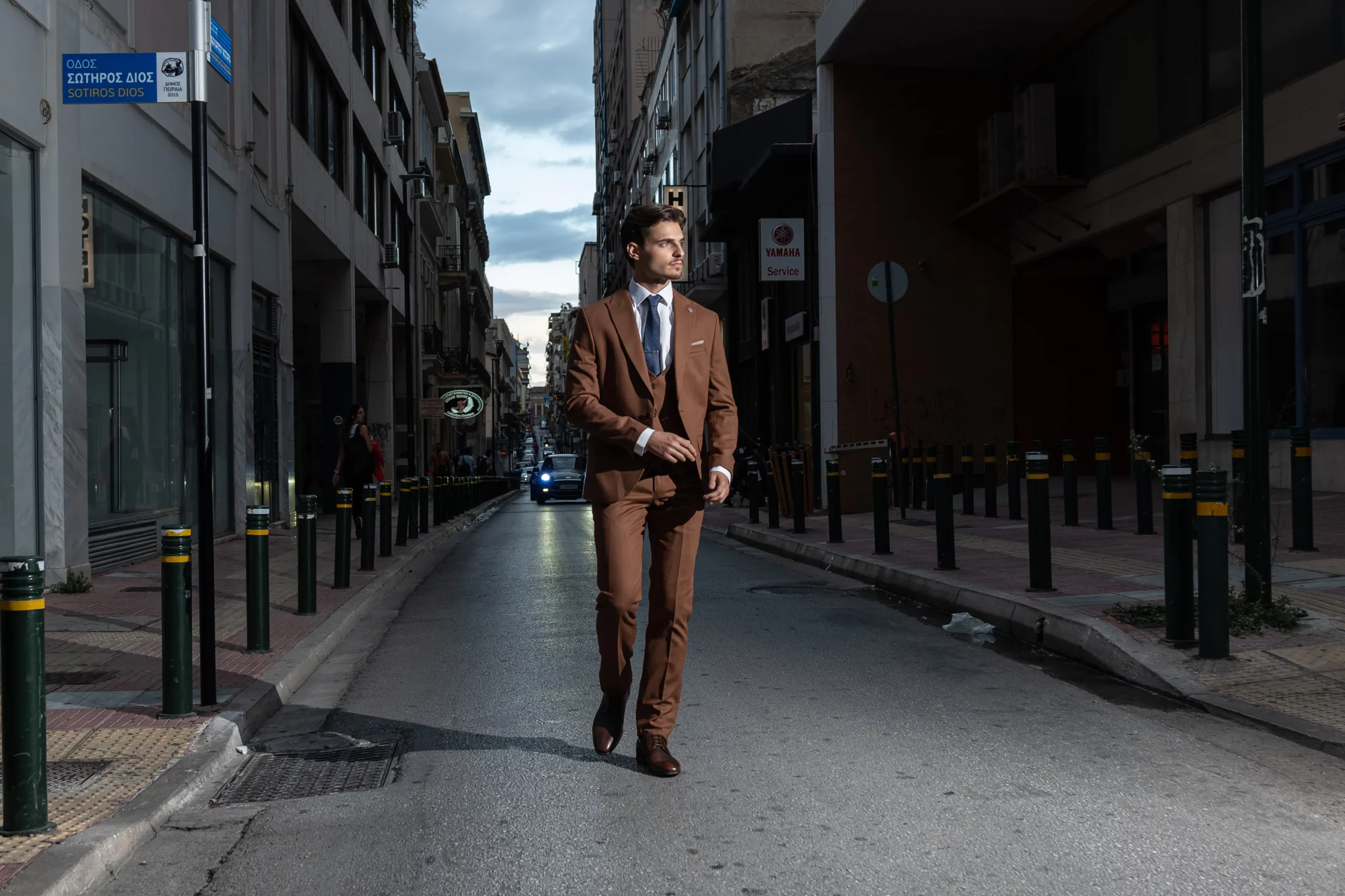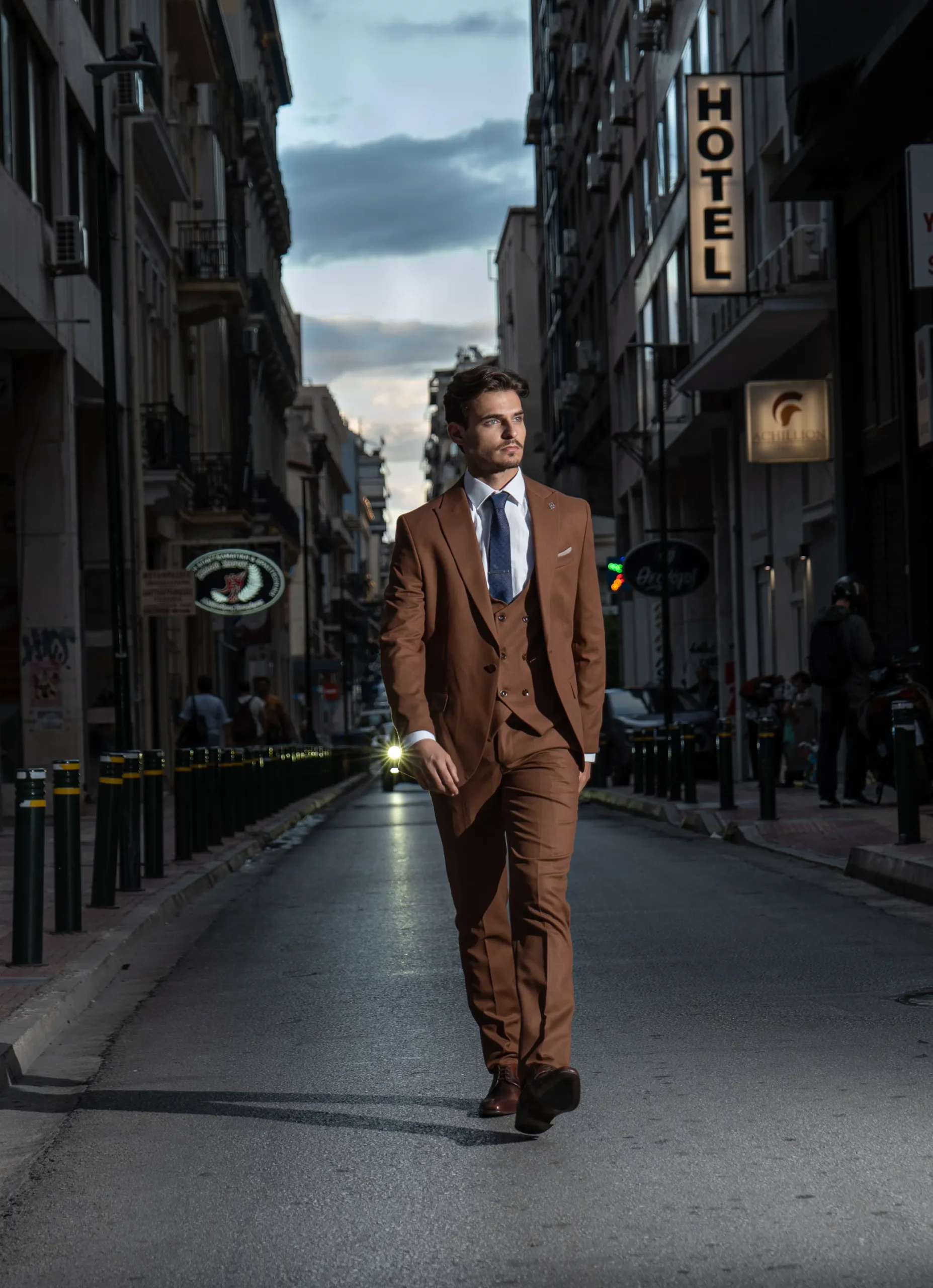 Κοστούμι Ανδρικό Καμηλό Με Καμηλό Γιλέκο 158