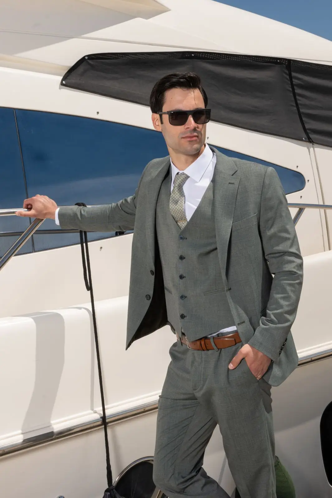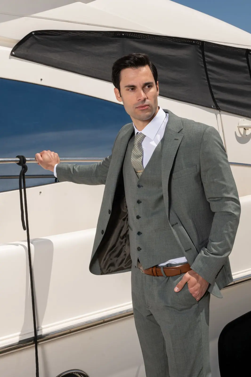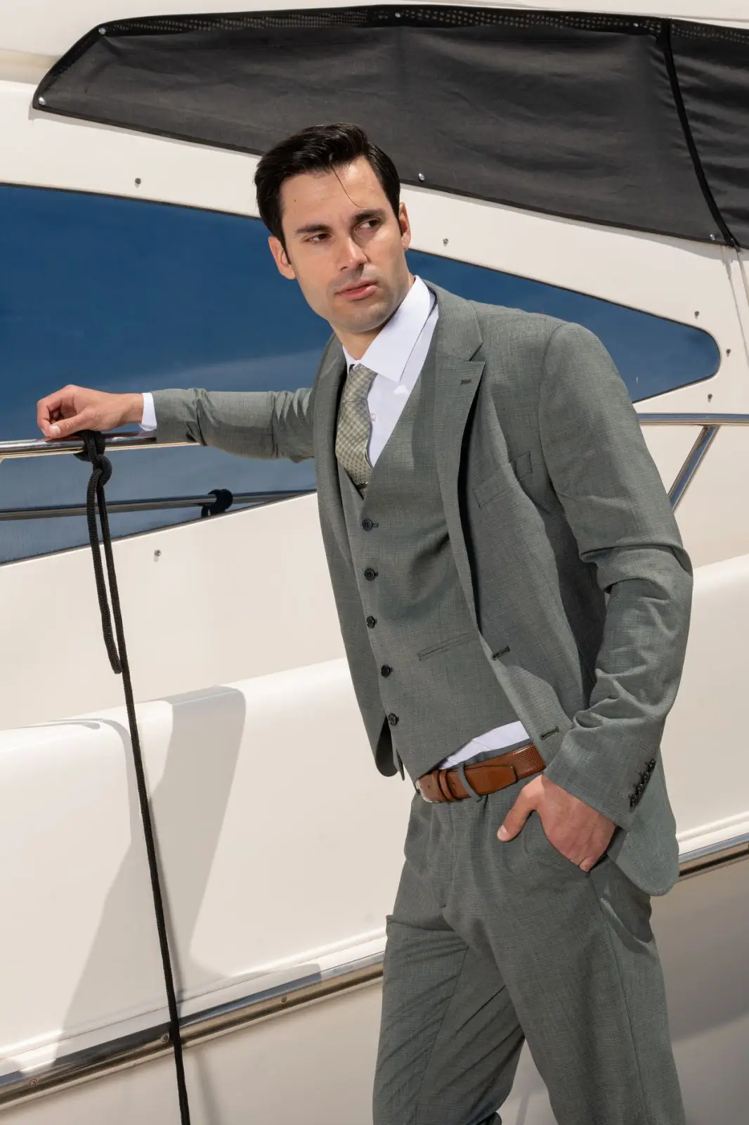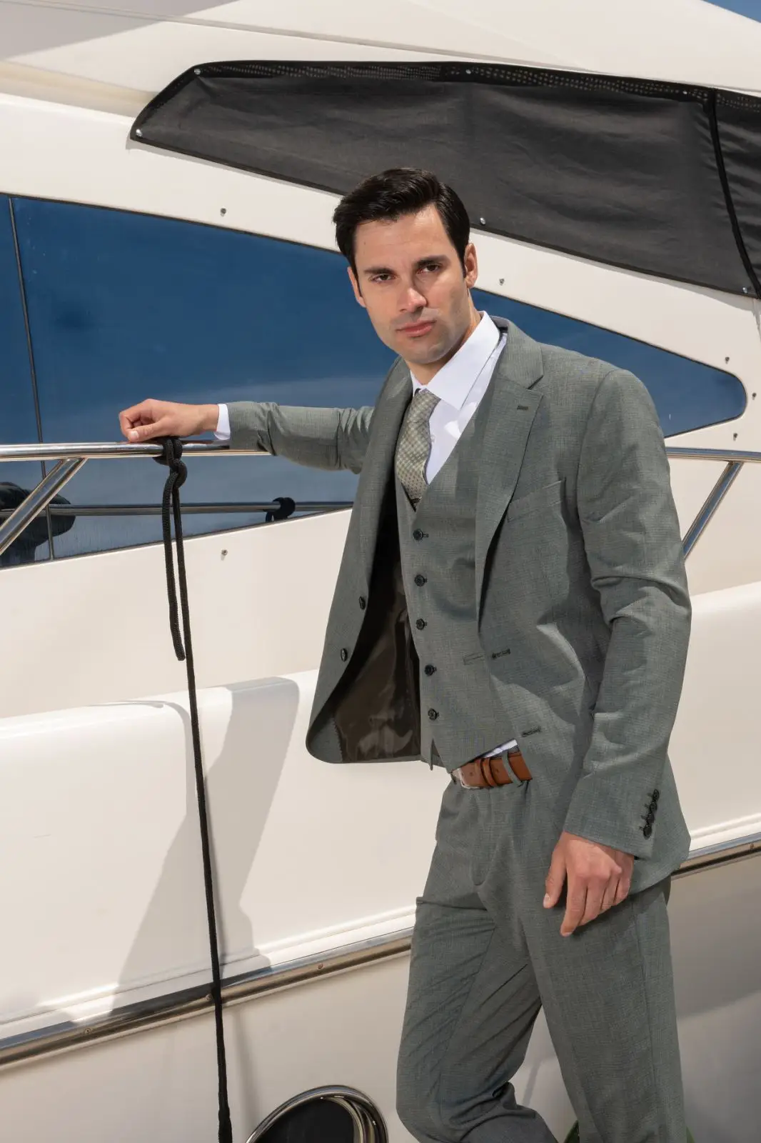 Η γραμμή είναι μοντέρνα slim fit και η τιμή αφορά σακάκι, παντελόνι και γιλέκο.