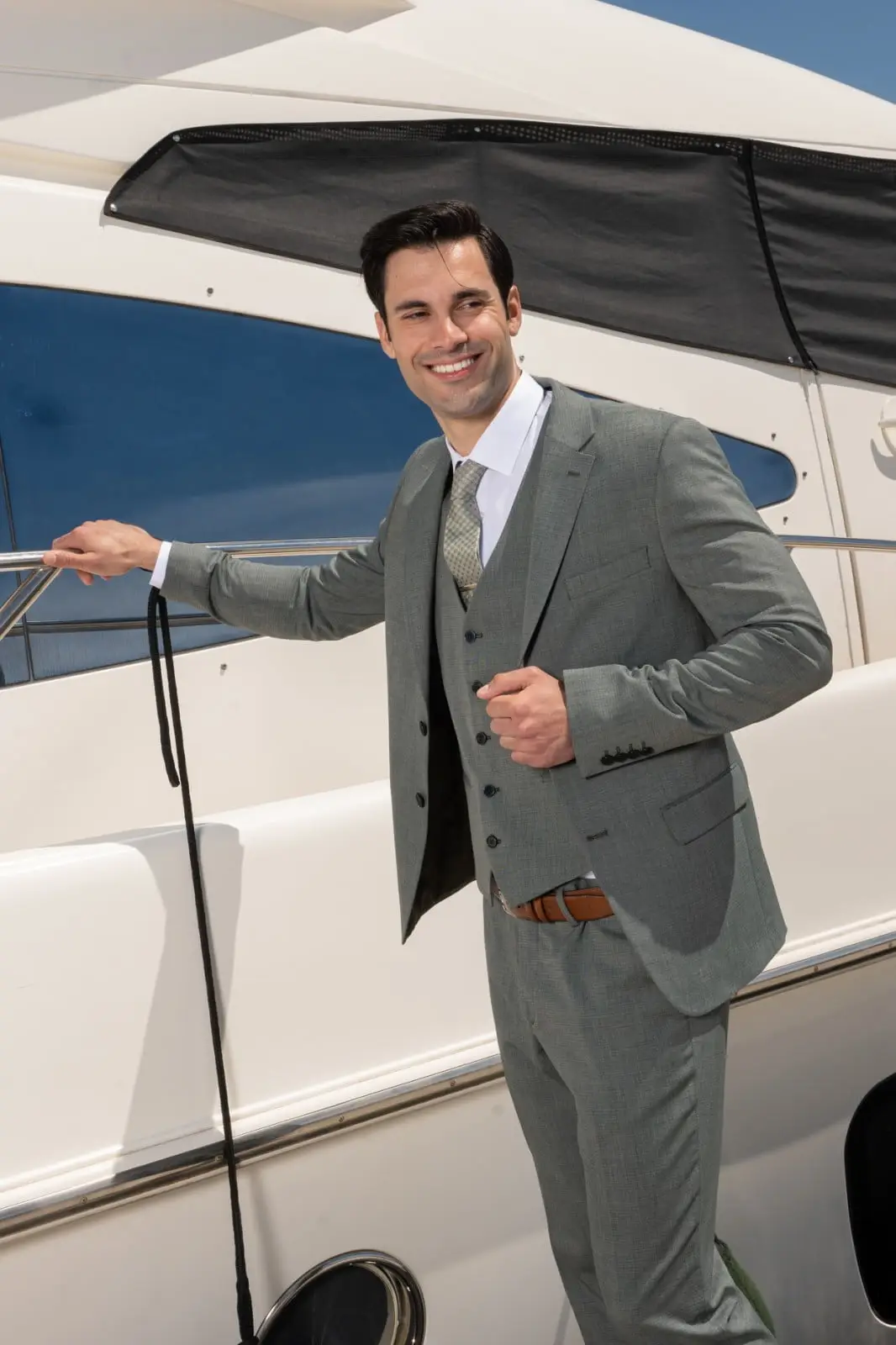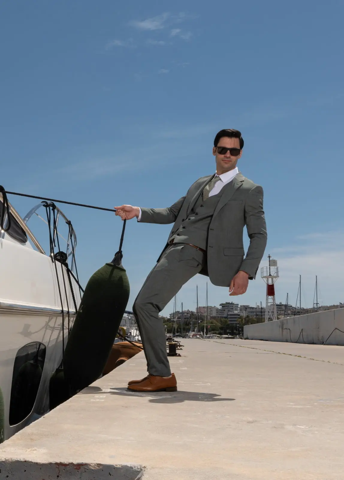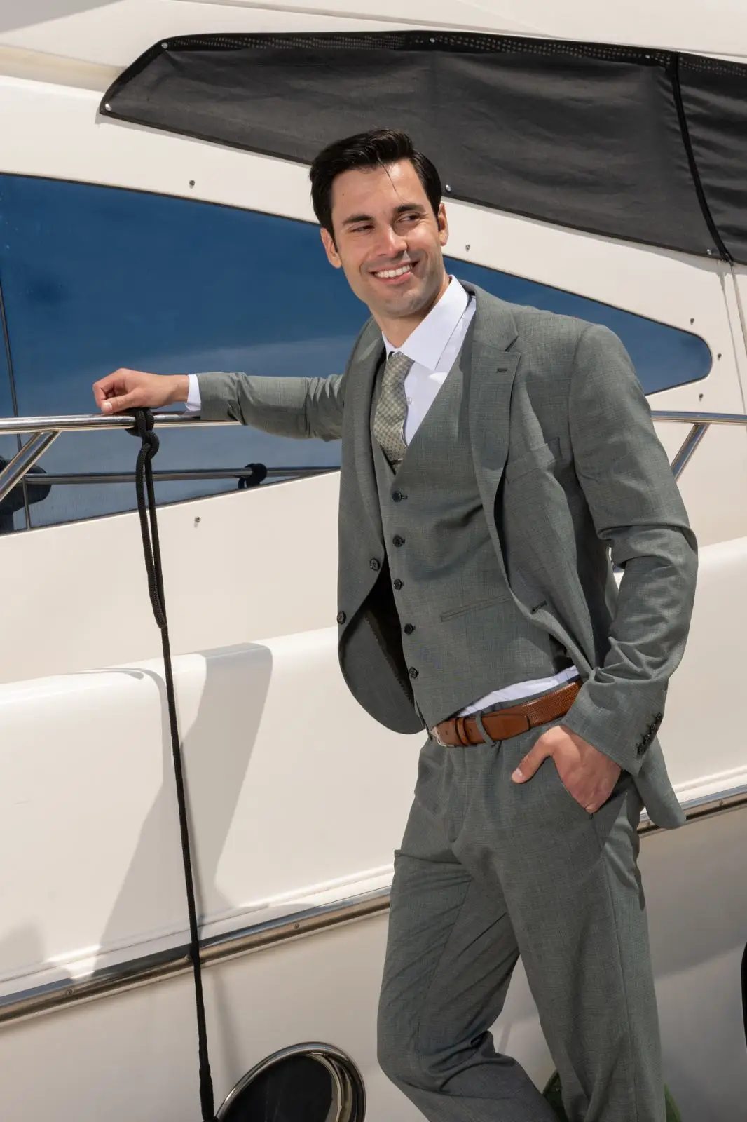 Η γραμμή είναι μοντέρνα slim fit και η τιμή αφορά σακάκι, παντελόνι και γιλέκο.