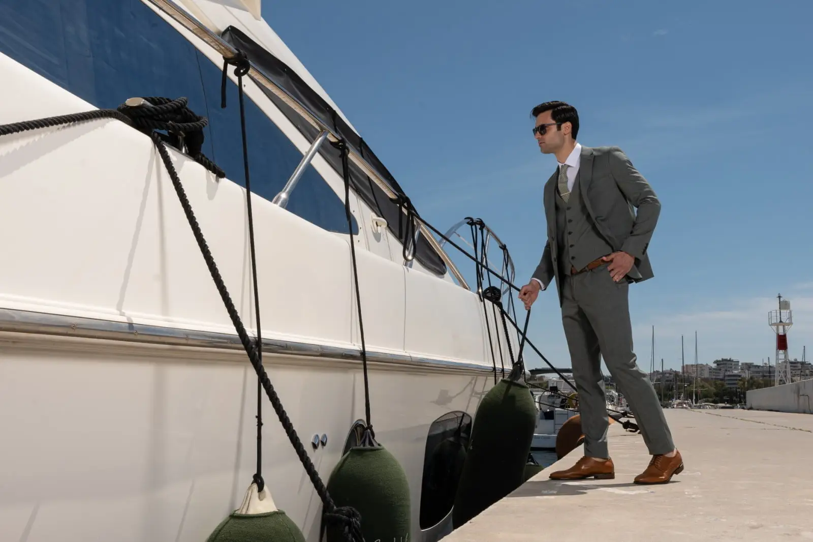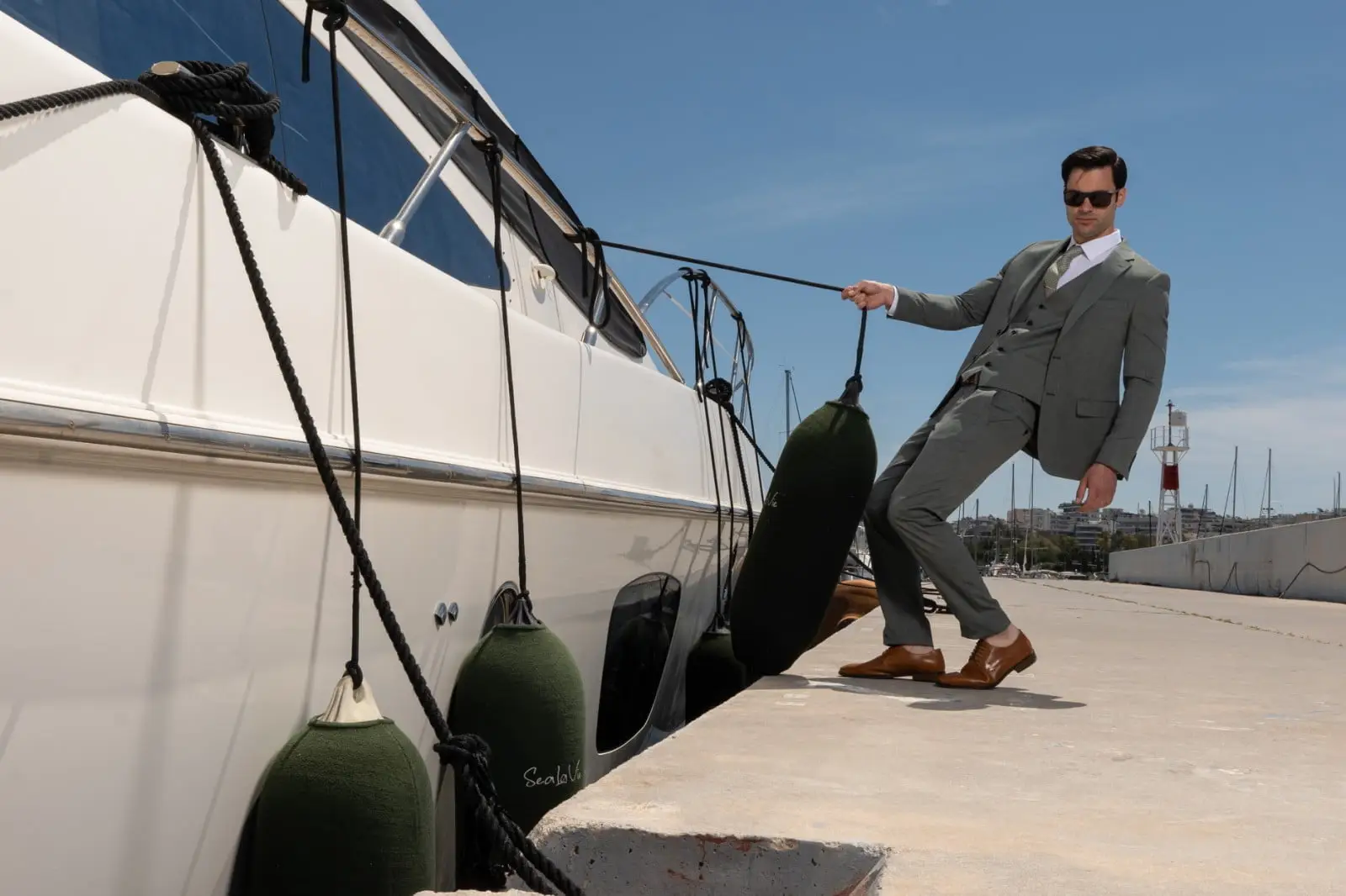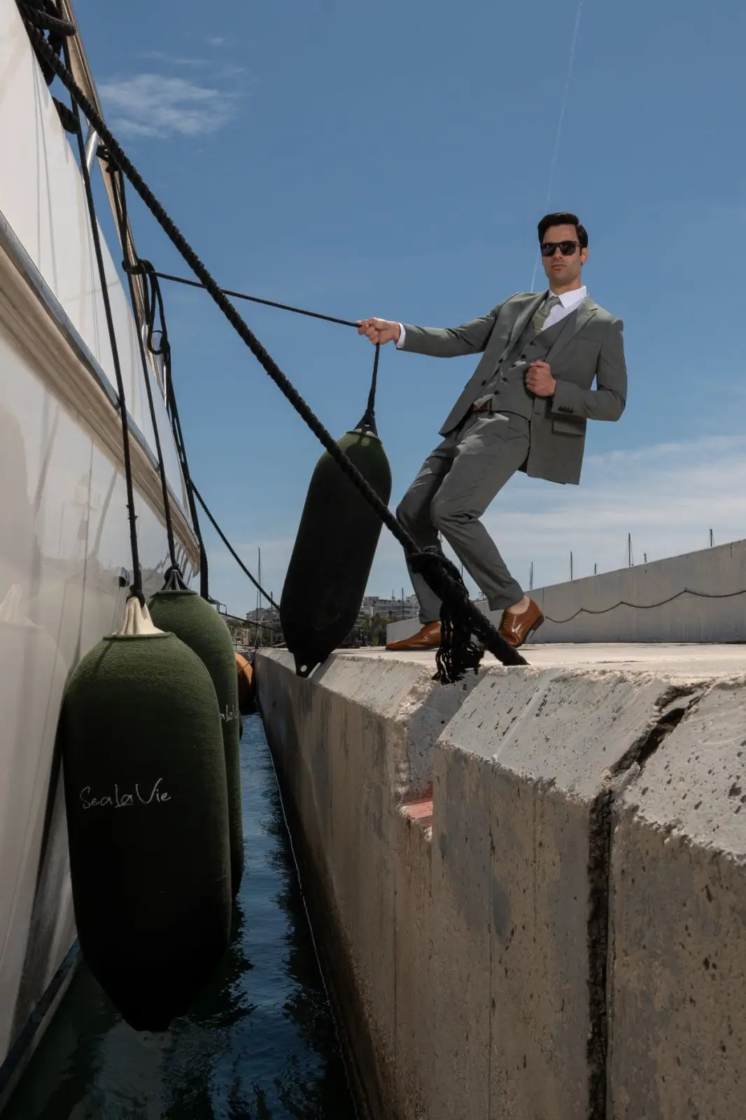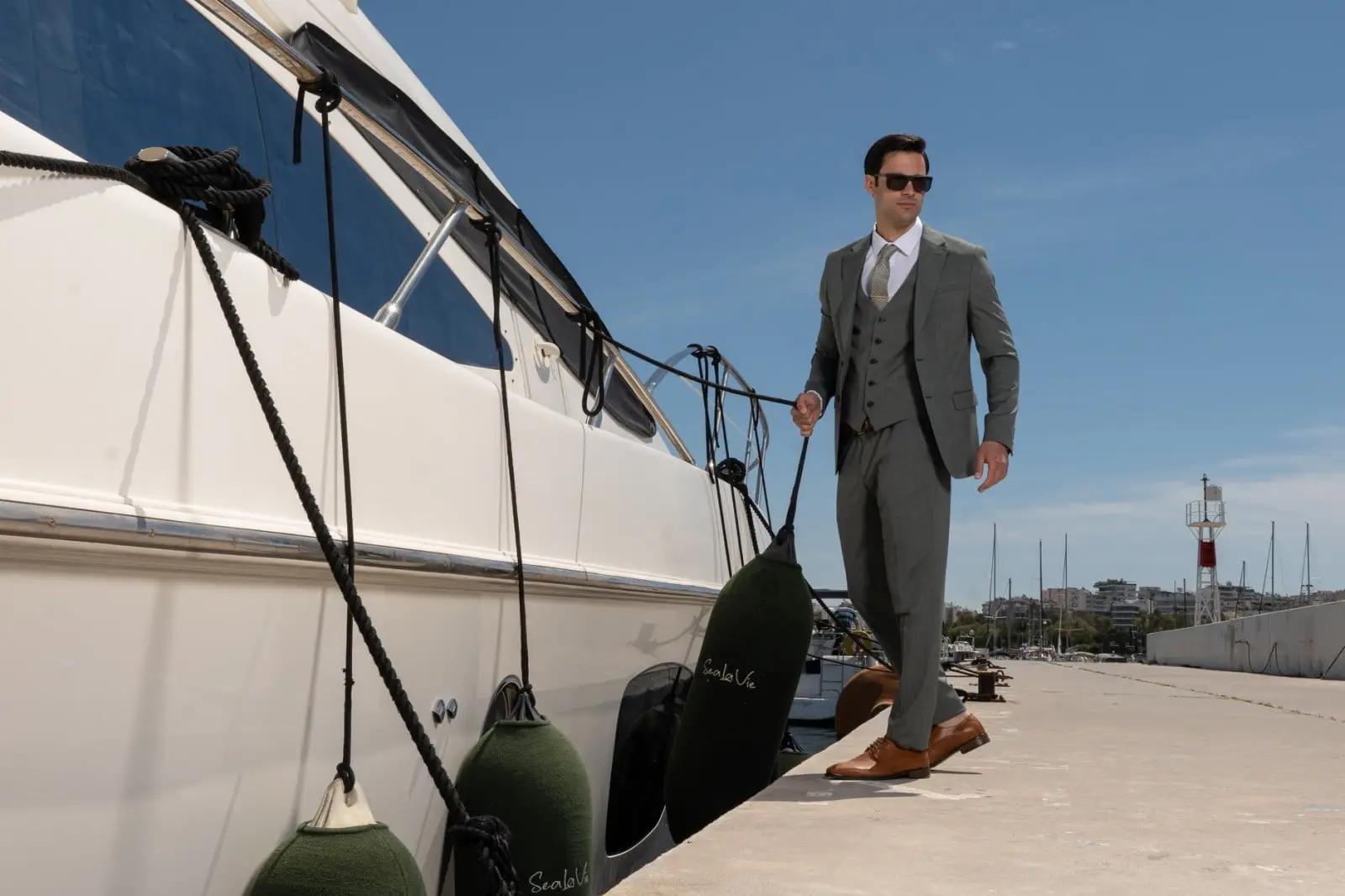 Η γραμμή είναι μοντέρνα slim fit και η τιμή αφορά σακάκι, παντελόνι και γιλέκο.