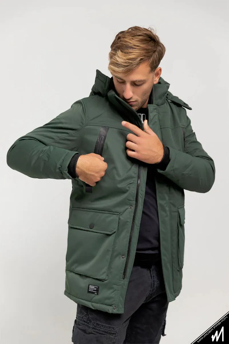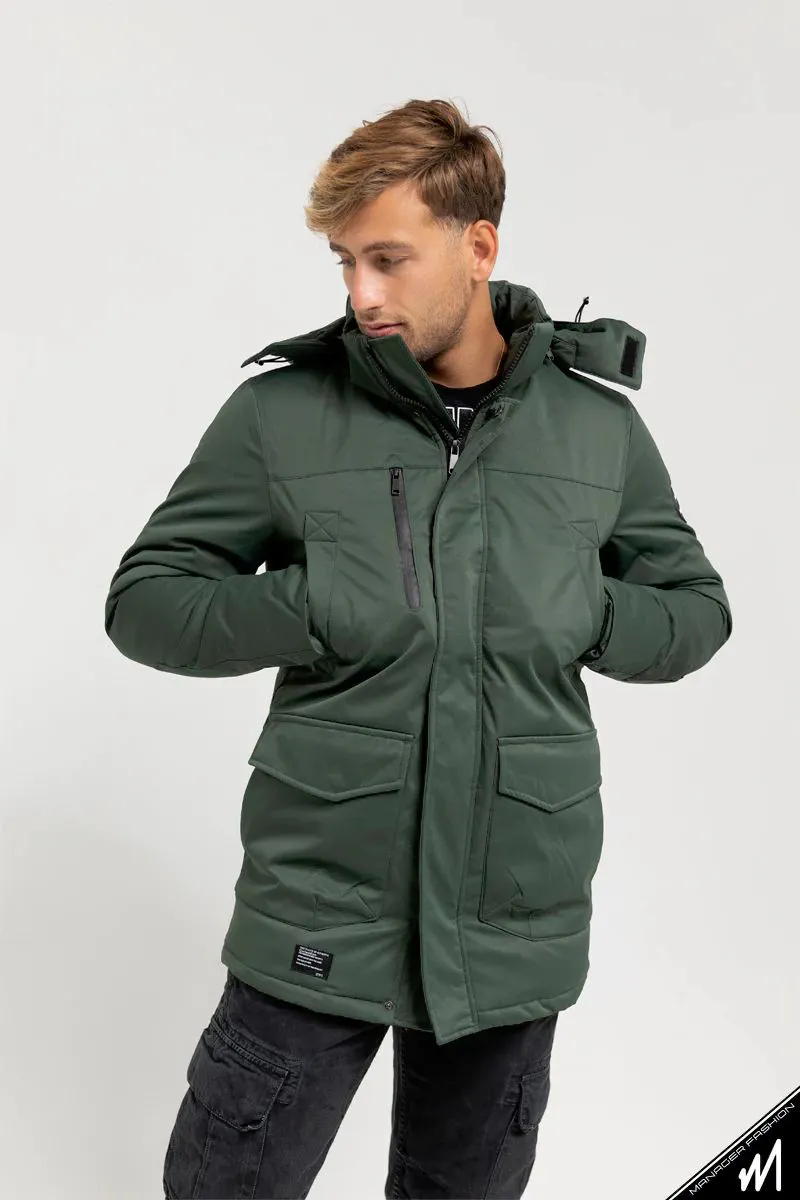 Μπουφάν Ανδρικό Parka Χακί Με Αποσπώμενη Κουκούλα 109