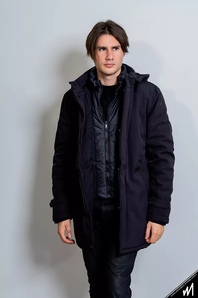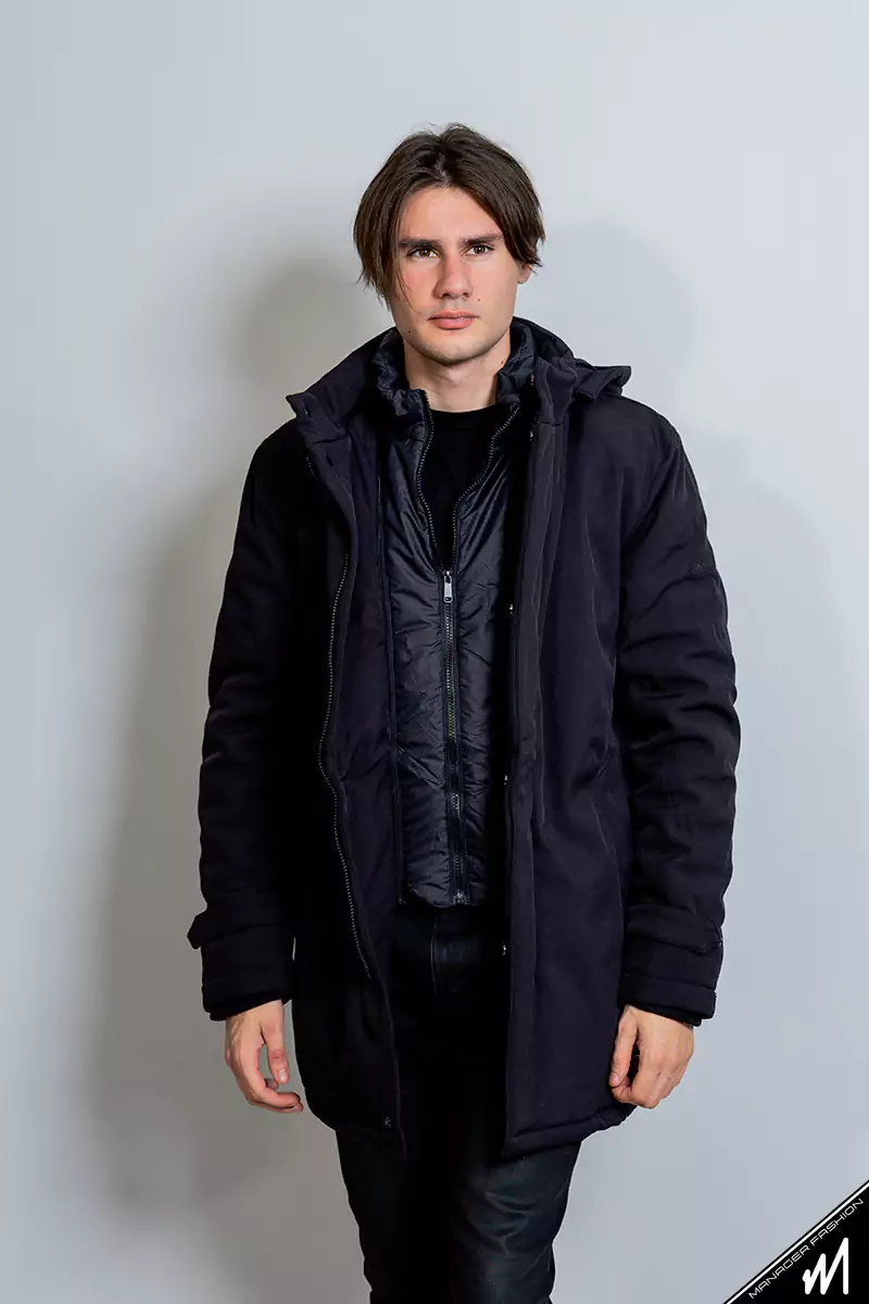 Μπουφάν parka για casual αλλά και βραδινές εμφανίσεις με εσωτερικό γιλέκο αποσπώμενο,εσωτερική τσέπη στο στήθος και αποσπώμενη κουκούλα.