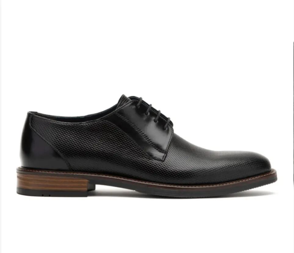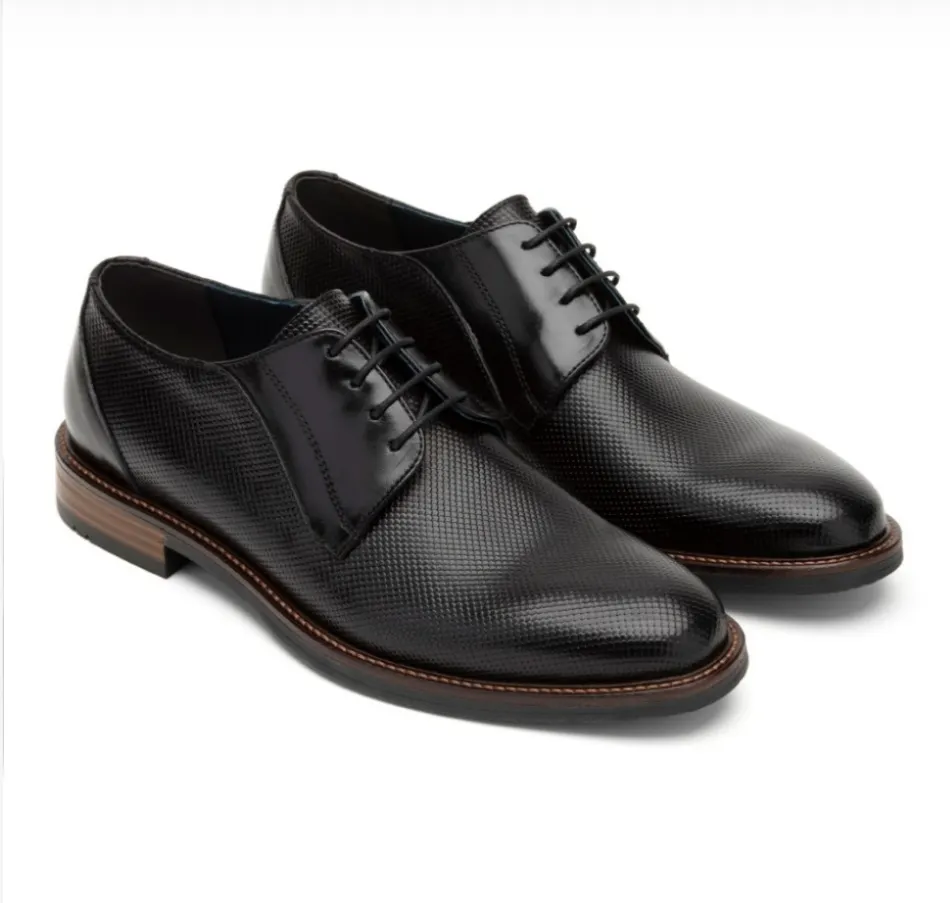 Στο ανάγλυφο άριστο δέρμα μοσχαριού Ιταλίας έχει δοθεί μια κάπως μακρόστενη σιλουέτα, η οποία καταλήγει σε μύτη σε σχήμα αμυγδάλου, ενώ αναδεικνύονται οι προσεγμένες ραφές. Αυτές επιτυγχάνουν την τέλεια αρμονία μεταξύ στιλιστικής καλαισθησίας και των προδιαγραφών υψηλής ποιότητας στην ανδρική μόδα. Αριστοτεχνικές πινελιές, όπως οι σχεδιαστικές εναλλαγές μεταξύ λείου και σταμπωτού δέρματος, προσθέτουν επιπλέον πολυτέλεια και στυλ.