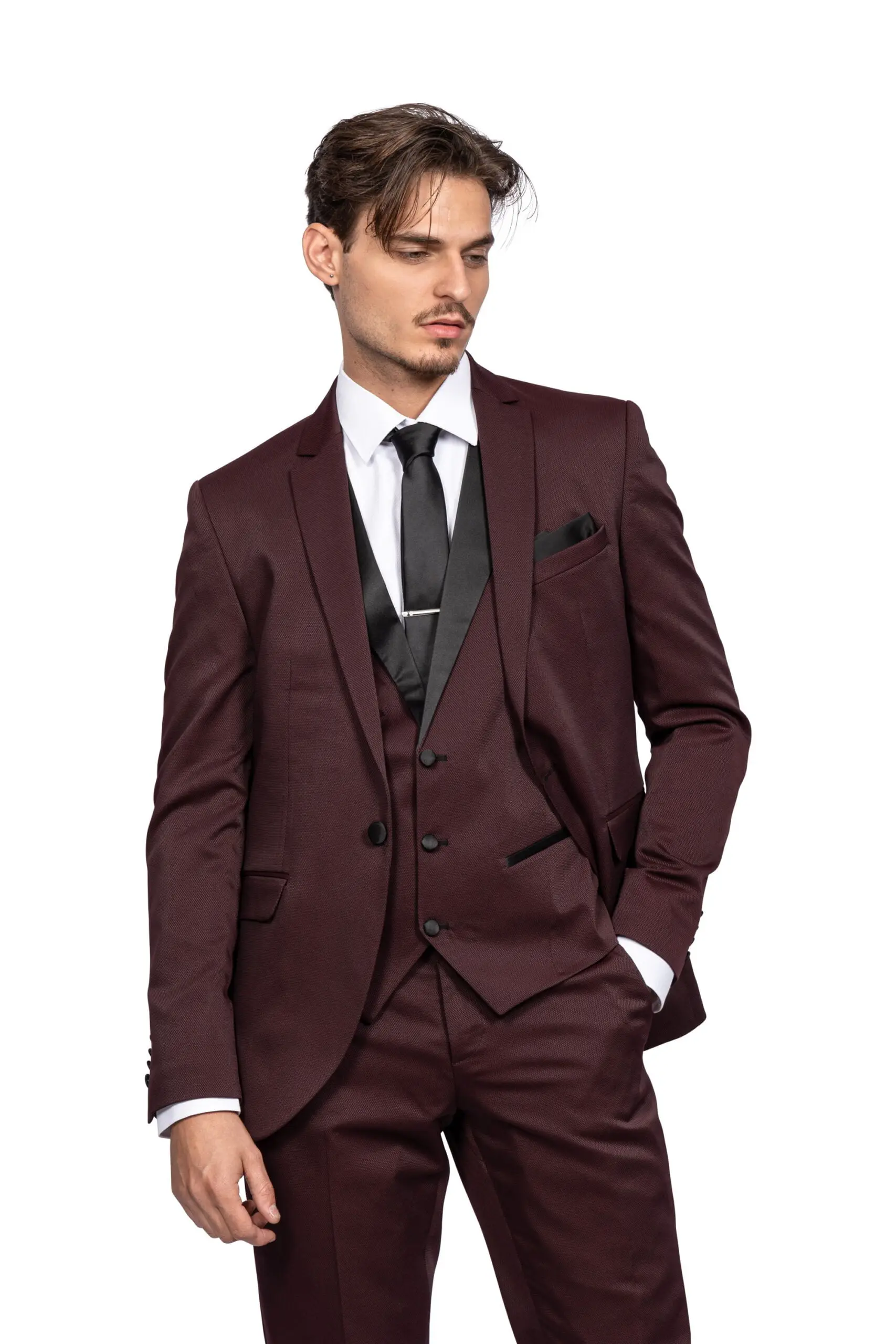 Ανδρικό Κουστούμι Slim Fit Senso Diverso Μπορντό Με Μπορντό Γιλέκο 162