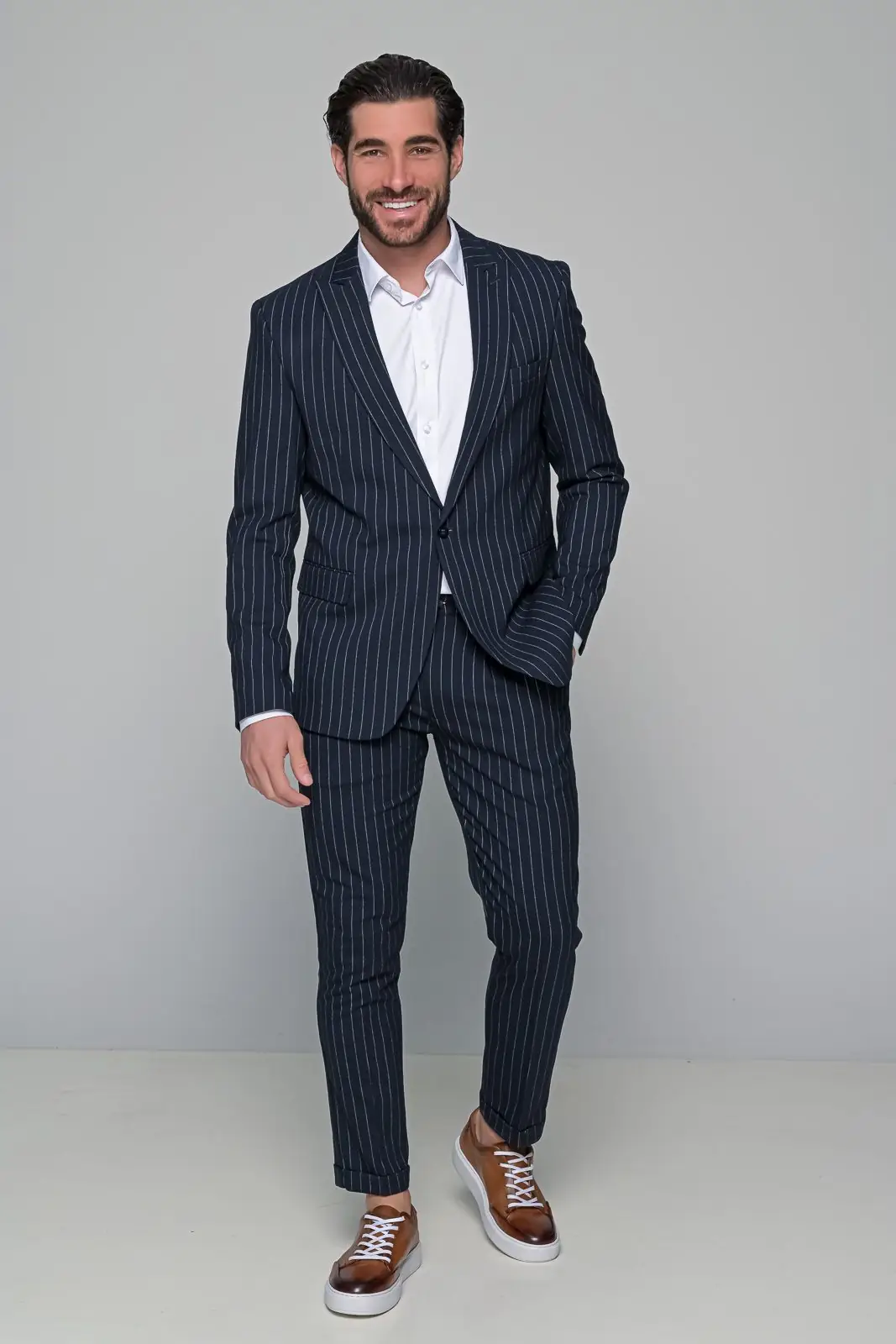 Το κοστούμι Positano της Ben Tailor συνδυάζει τη διαχρονική φινέτσα με τη μοντέρνα άνεση. Ιδανικό τόσο για επαγγελματικές περιστάσεις όσο και για κομψές casual εμφανίσεις, αυτό το κοστούμι προσφέρει άψογη εφαρμογή και υψηλή ποιότητα κατασκευής. Φοριέται με πουκάμισο και loafers για ένα κλασικό look ή με sneakers για μια πιο σύγχρονη προσέγγιση στο ανδρικό στυλ.