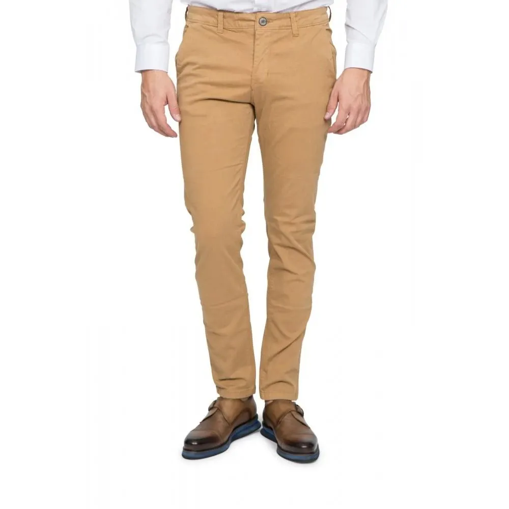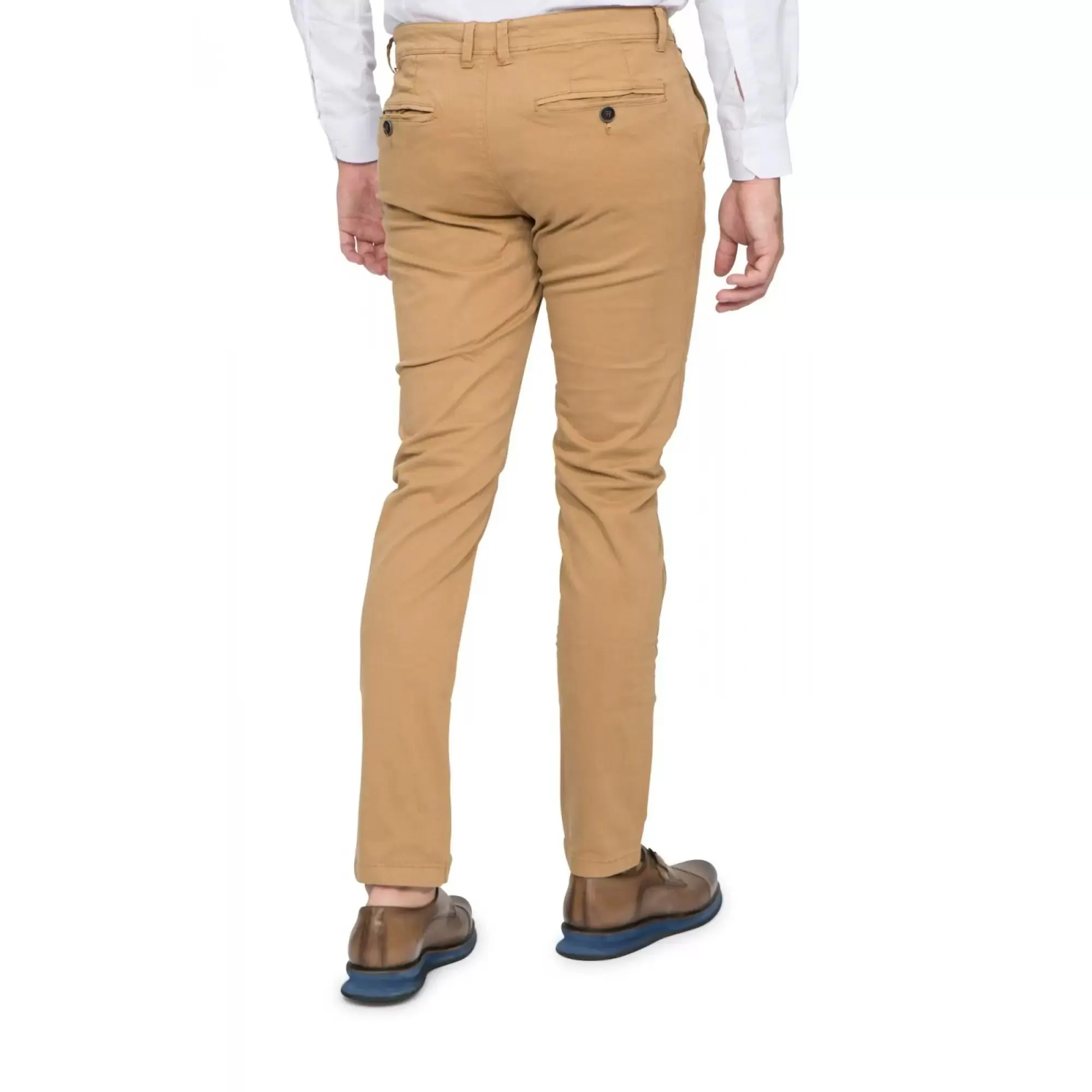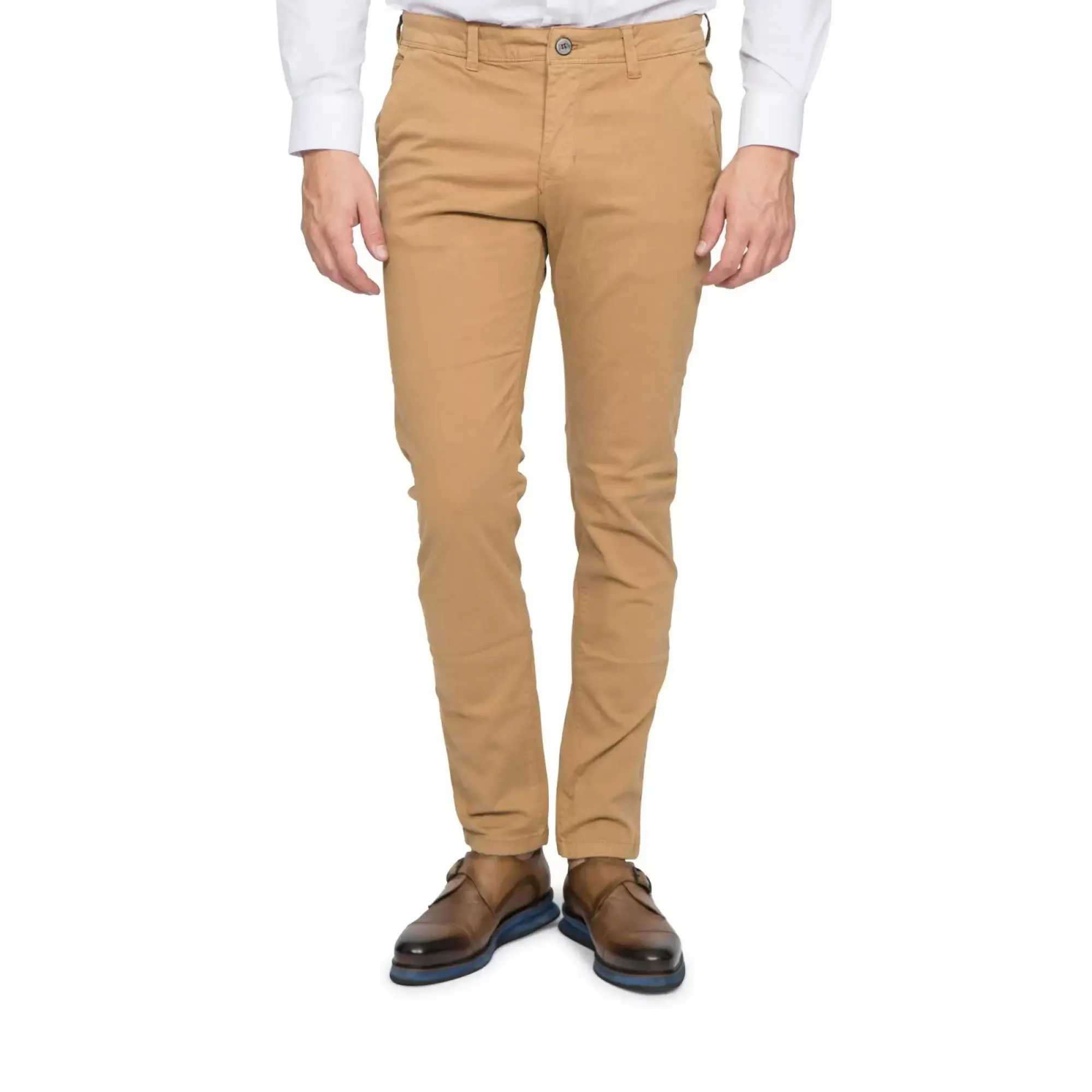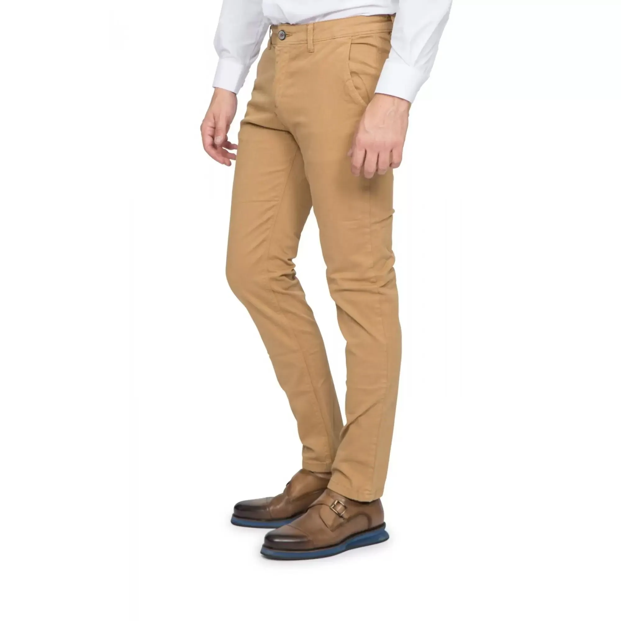 Υπέροχο ανδρικό παντελόνι Chinos σε μπεζ χρώμα με υπέροχη εφαρμογή, σε στενή μοντέρνα γραμμή.