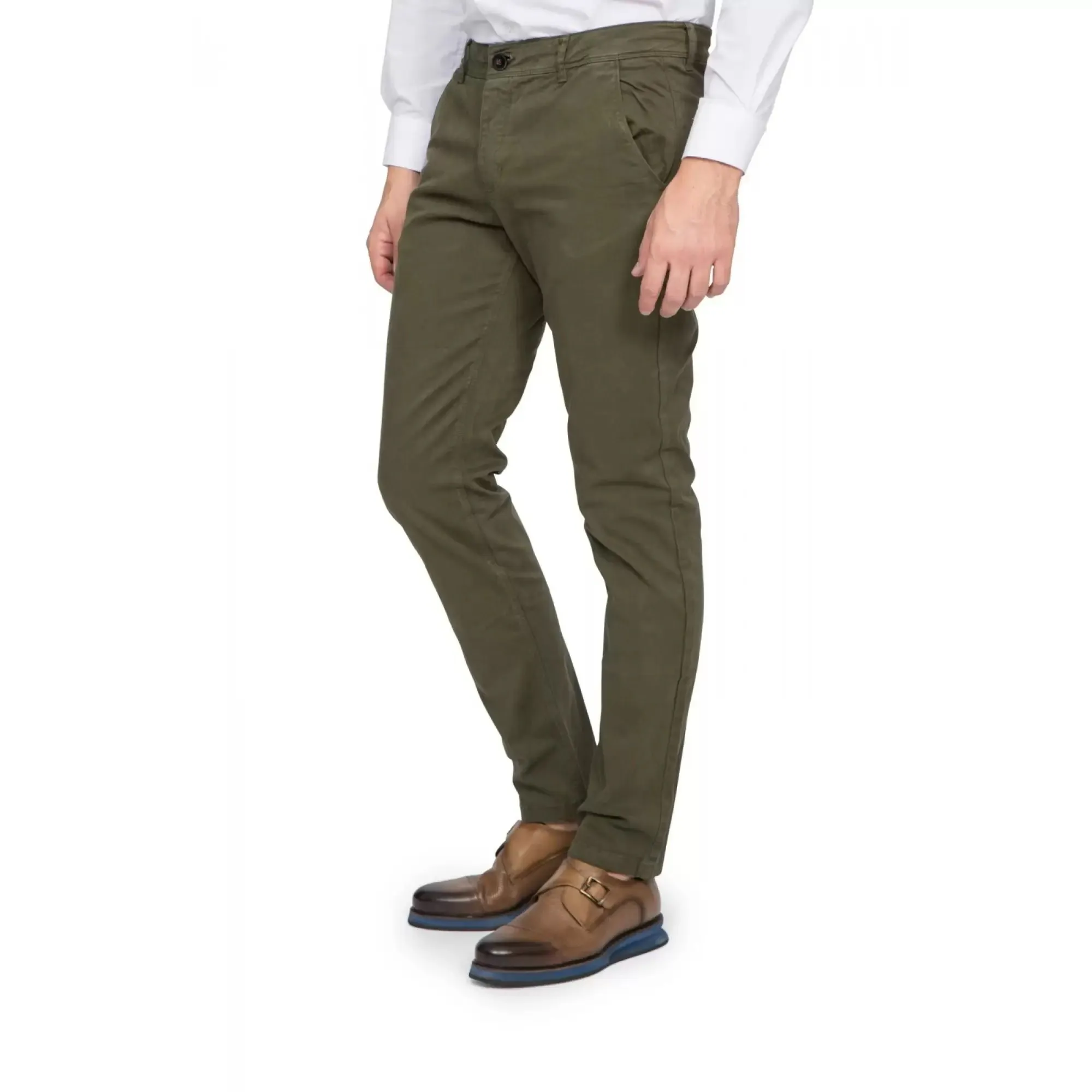 Υπέροχο ανδρικό παντελόνι Chinos σε λαδί χρώμα με υπέροχη εφαρμογή, σε στενή μοντέρνα γραμμή.