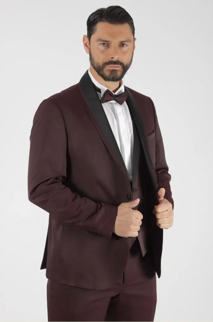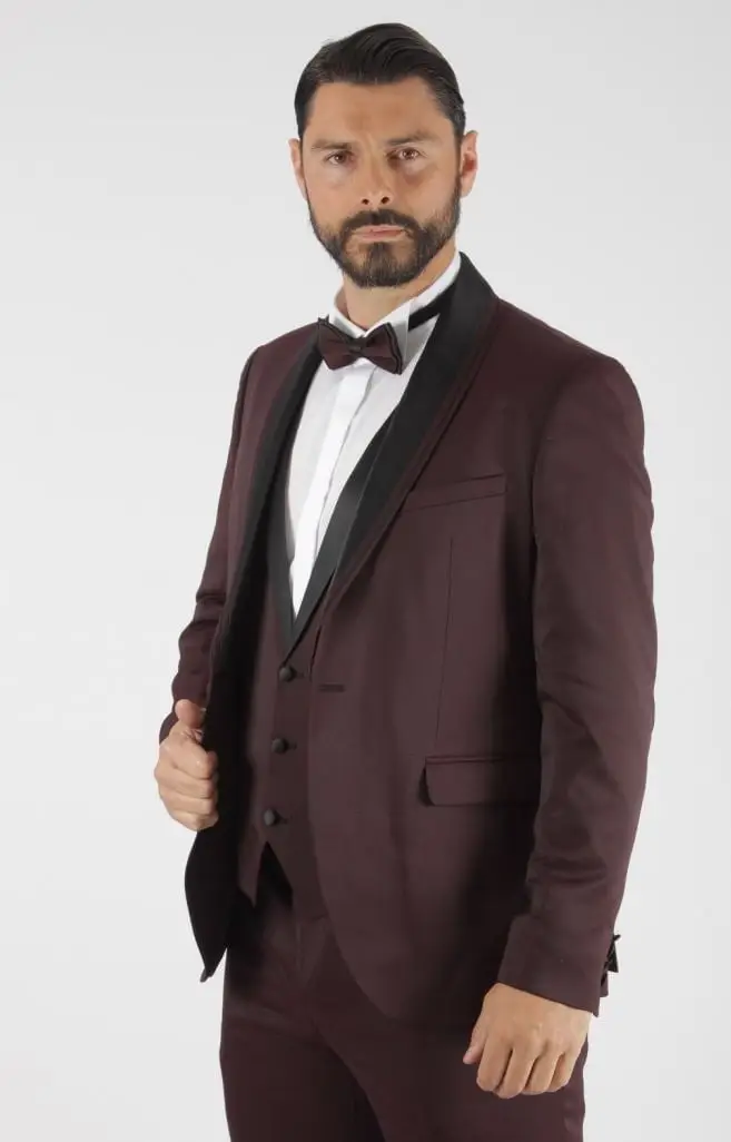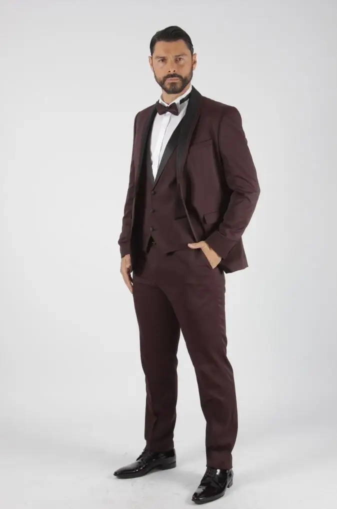 Ανδρικό Κοστούμι Μπορντό Με Γιλέκο Senso Diverso S24-12