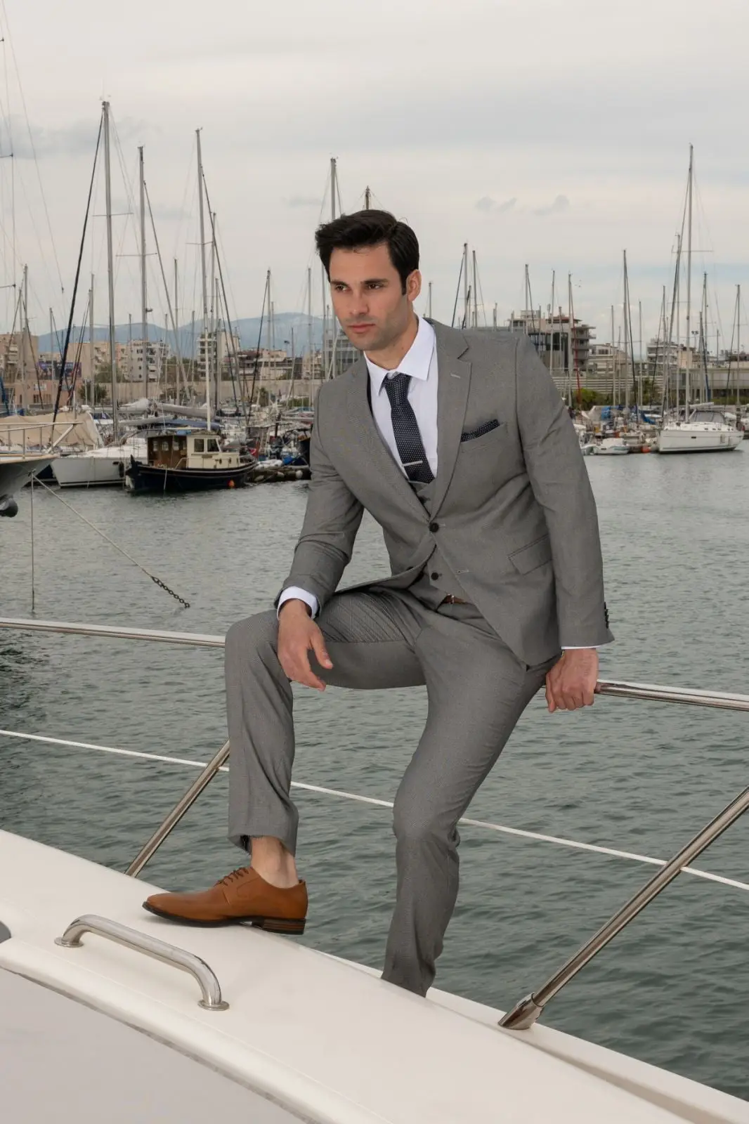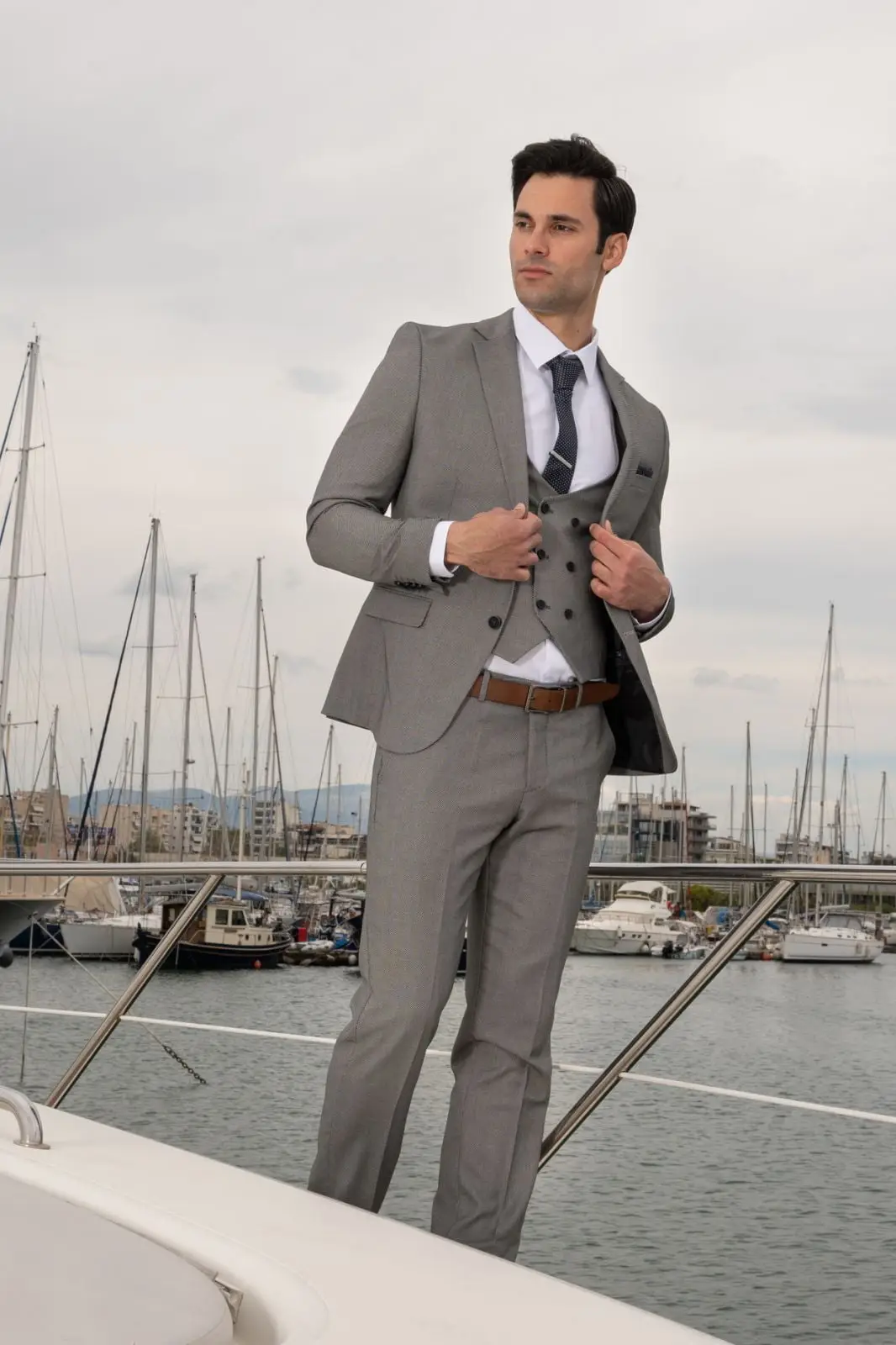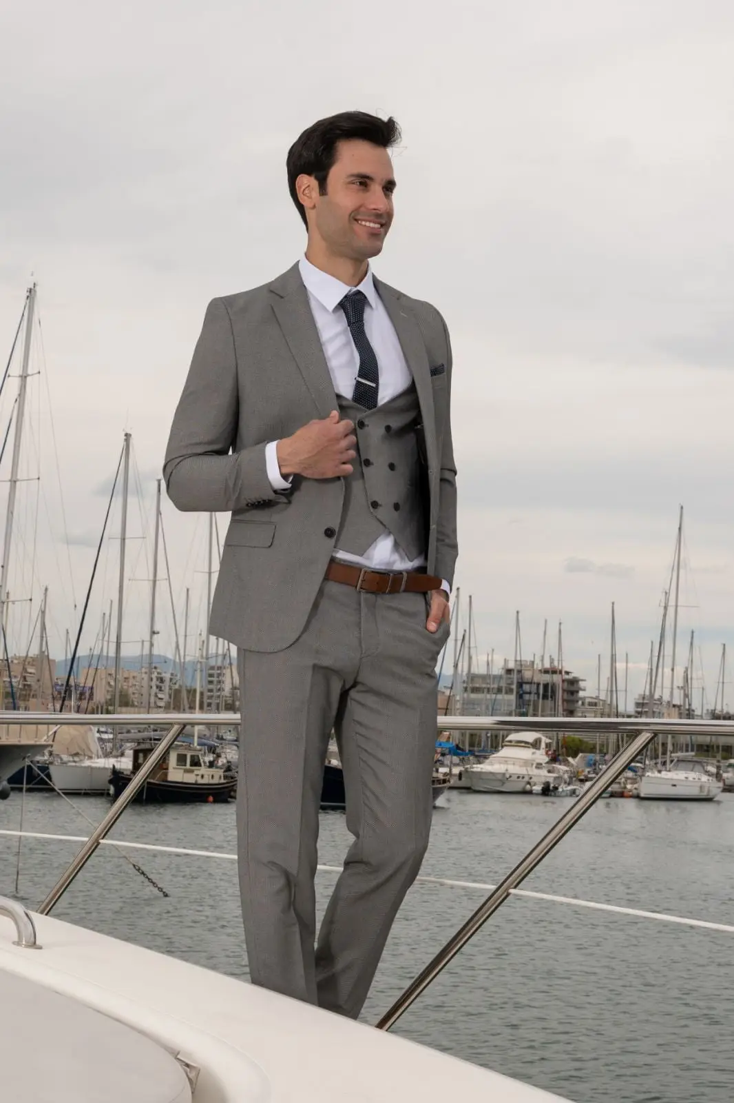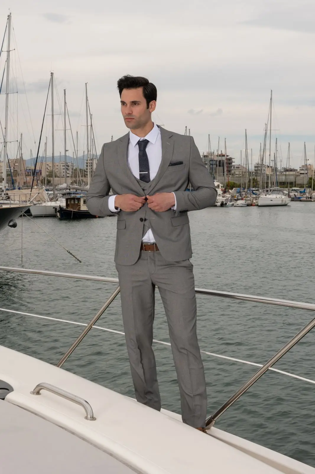 Ανδρικό Κοστούμι Γκρι Με Γιλέκο Στενή Εφαρμογή Senso Diverso S24-29