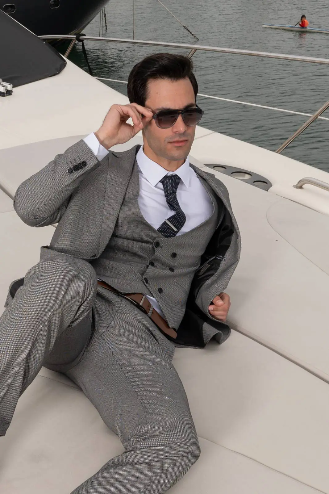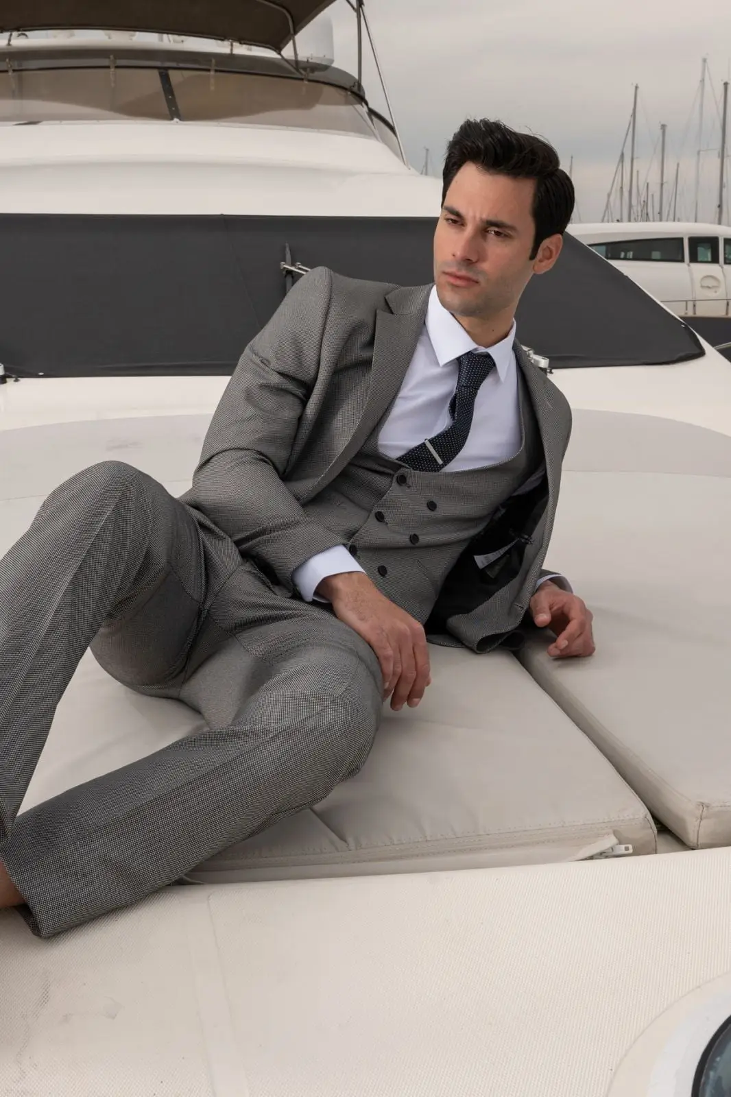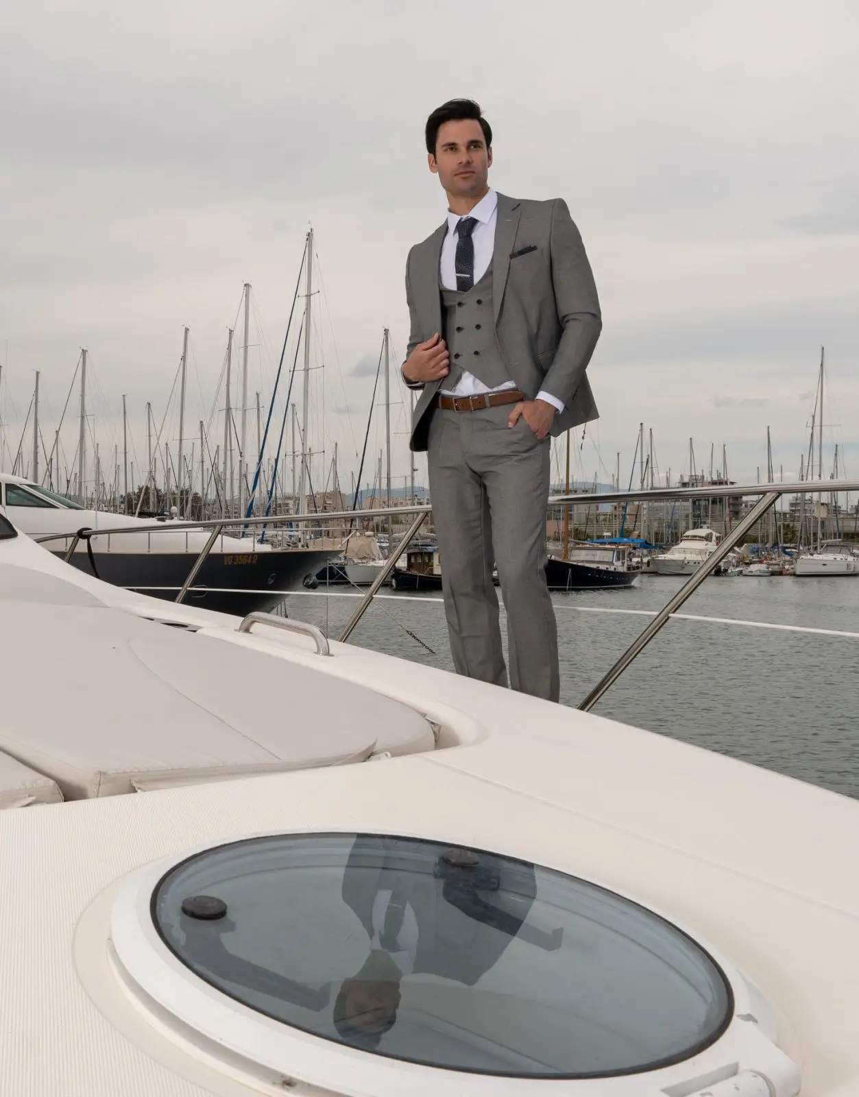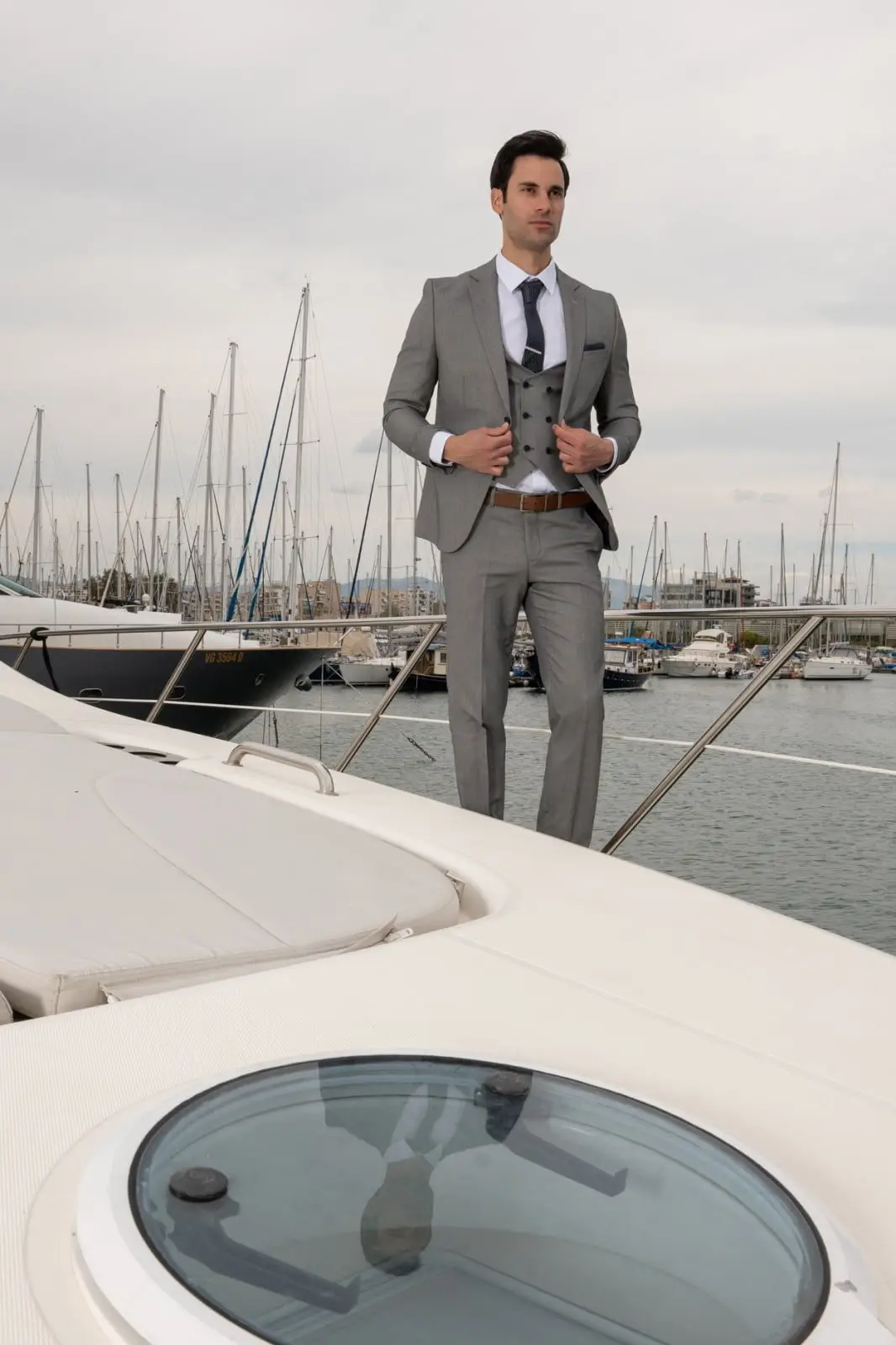 Ανδρικό Κοστούμι Γκρι Με Γιλέκο Στενή Εφαρμογή Senso Diverso S24-29