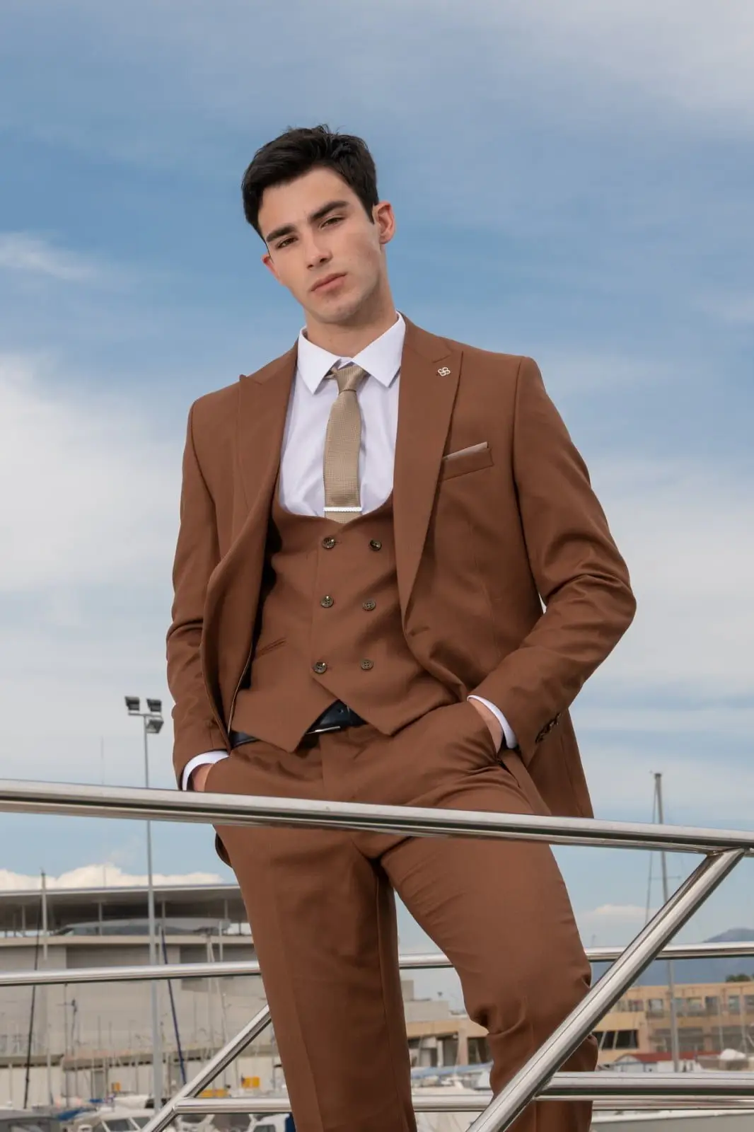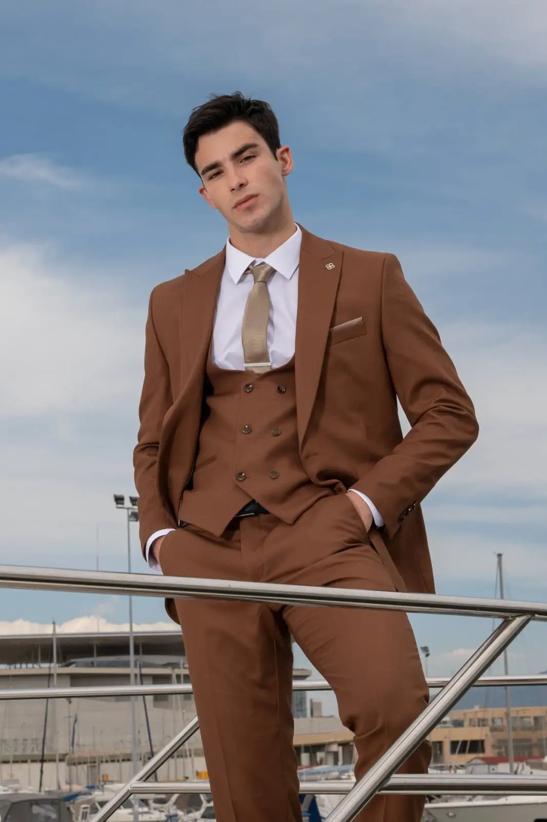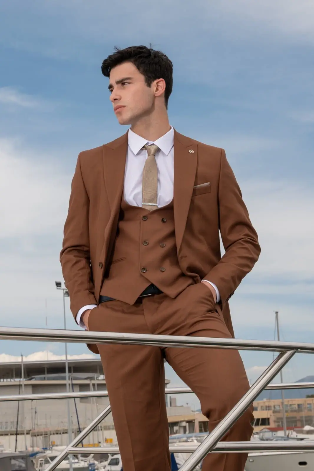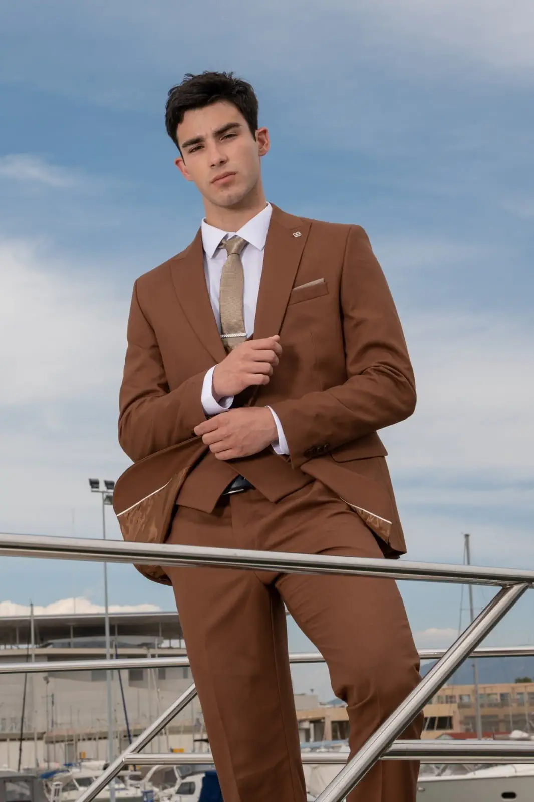 Ανδρικό Κοστούμι Κάμελ Στενή Γραμμή Senso Diverso S24-24