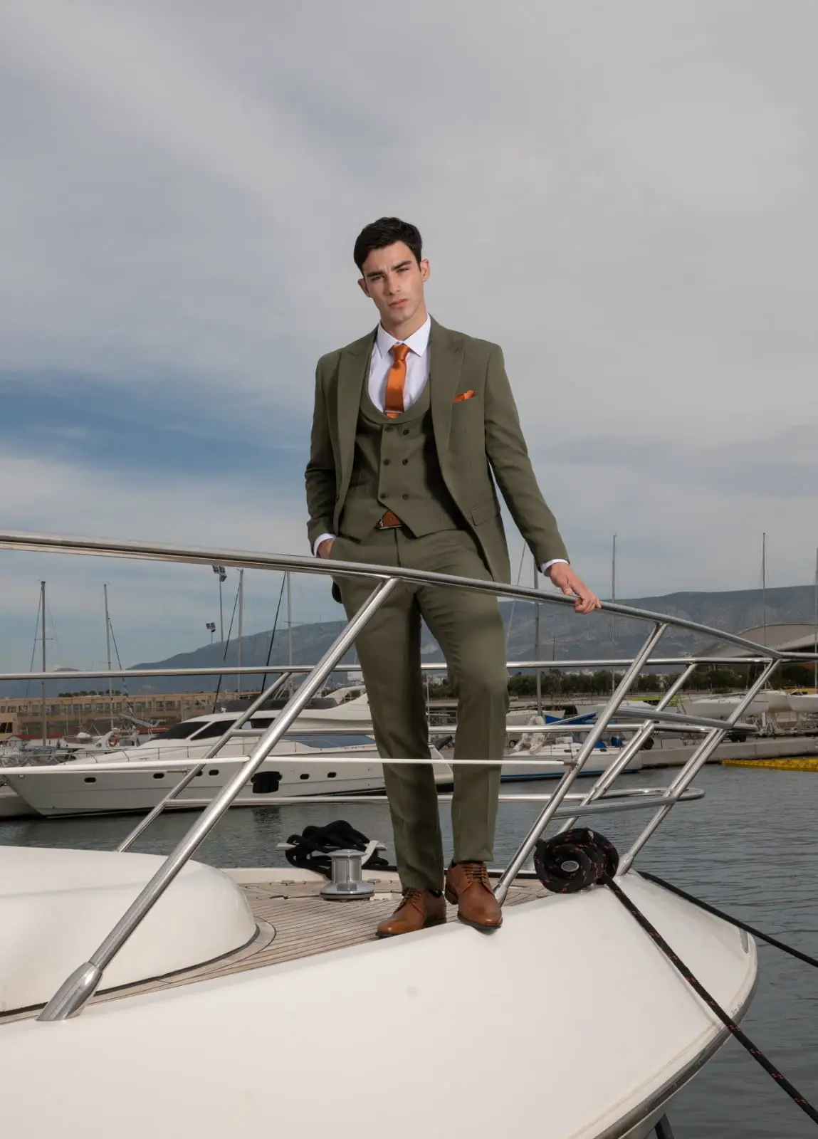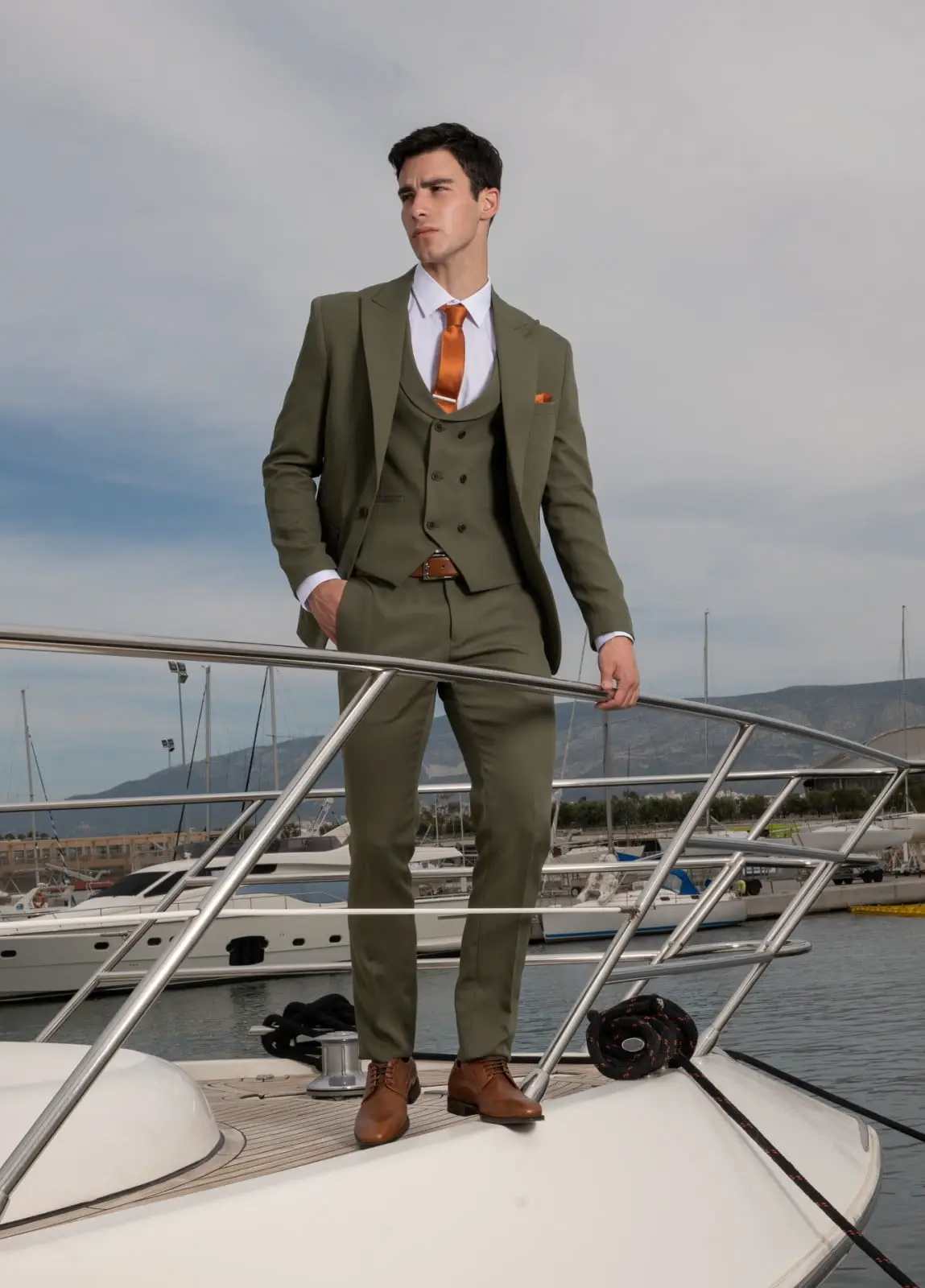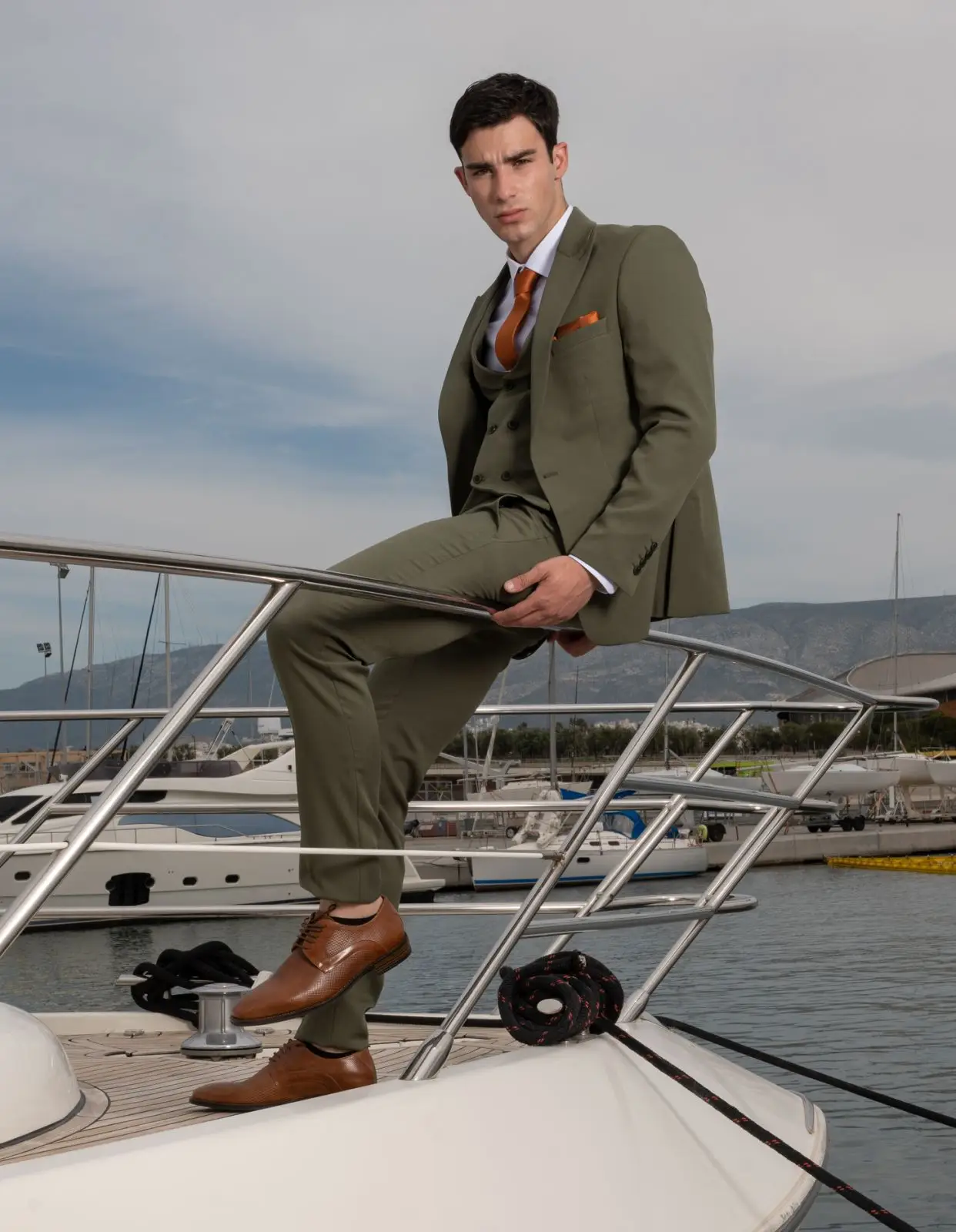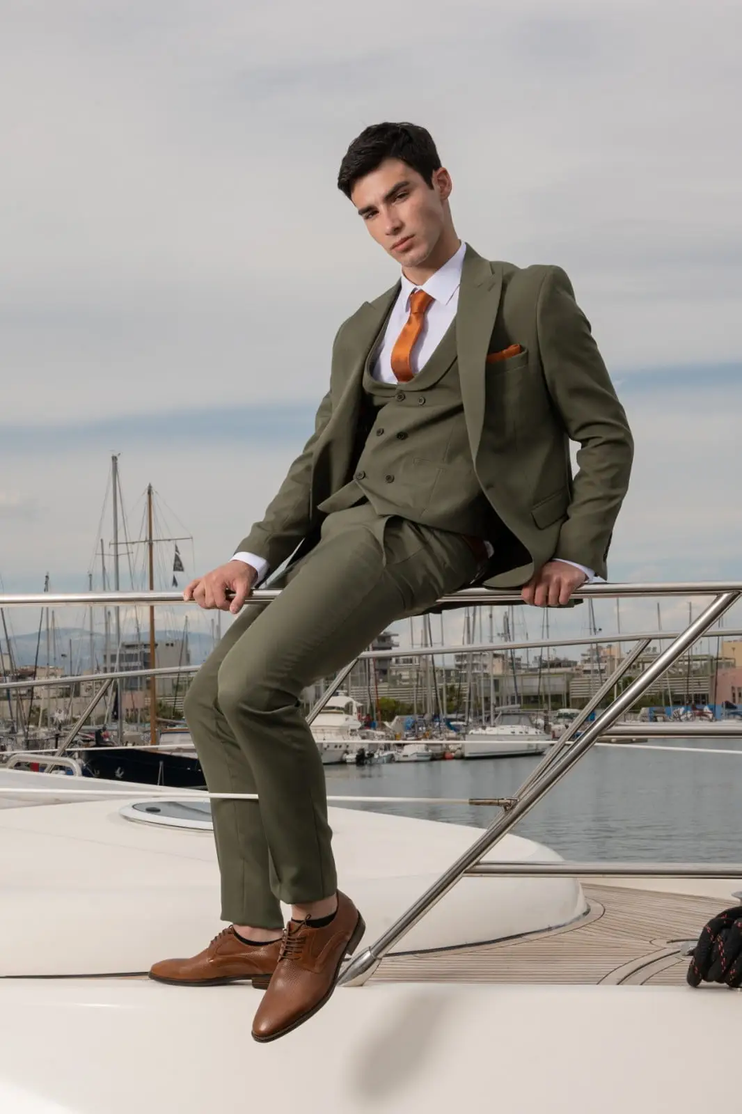 Ανδρικό Κοστούμι Λαδί Με Γιλέκο Senso Diverso S24-27