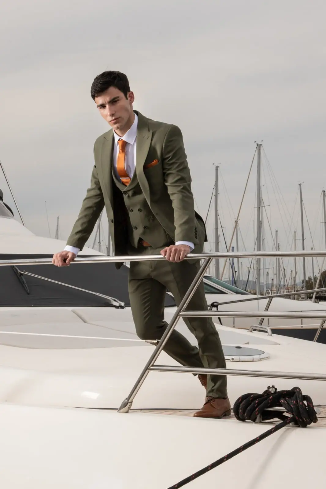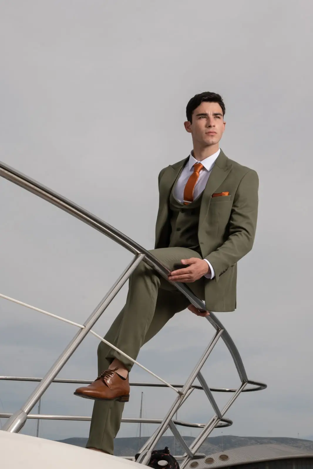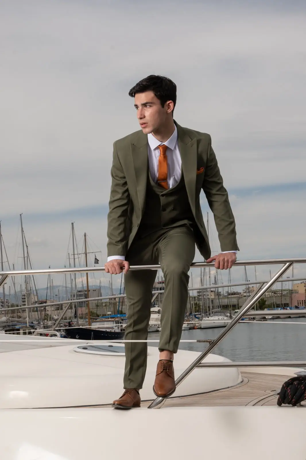 Ανδρικό Κοστούμι Λαδί Με Γιλέκο Senso Diverso S24-27