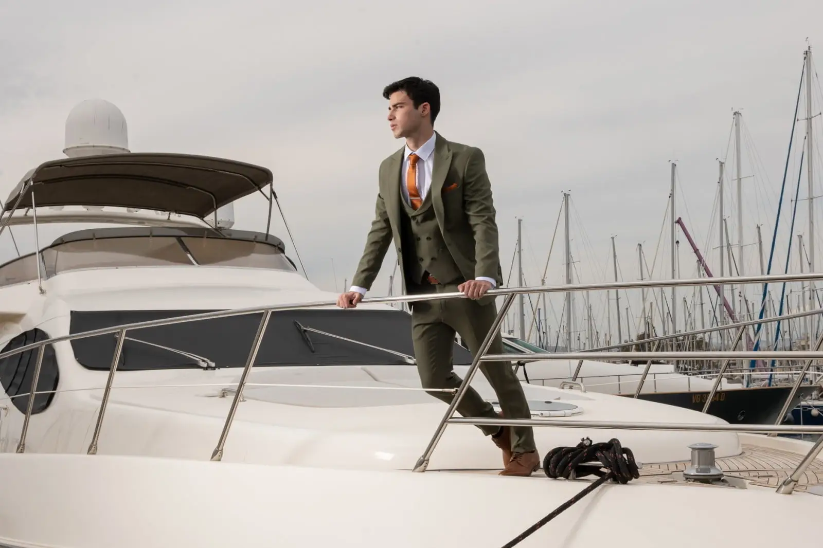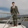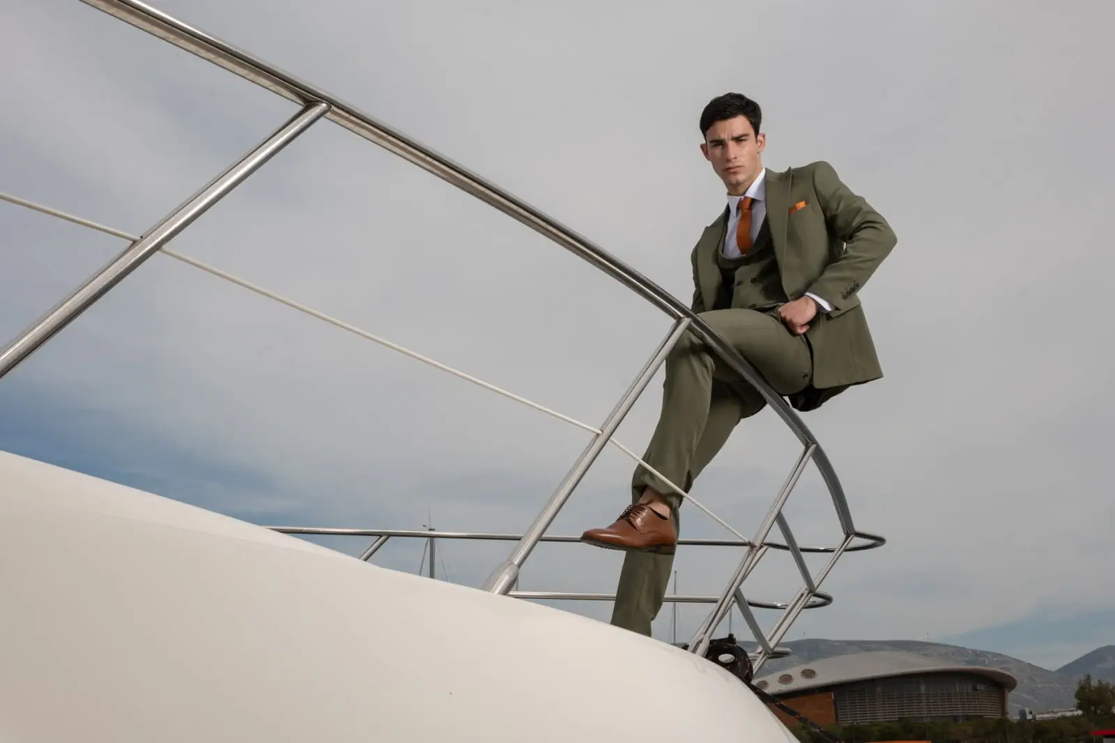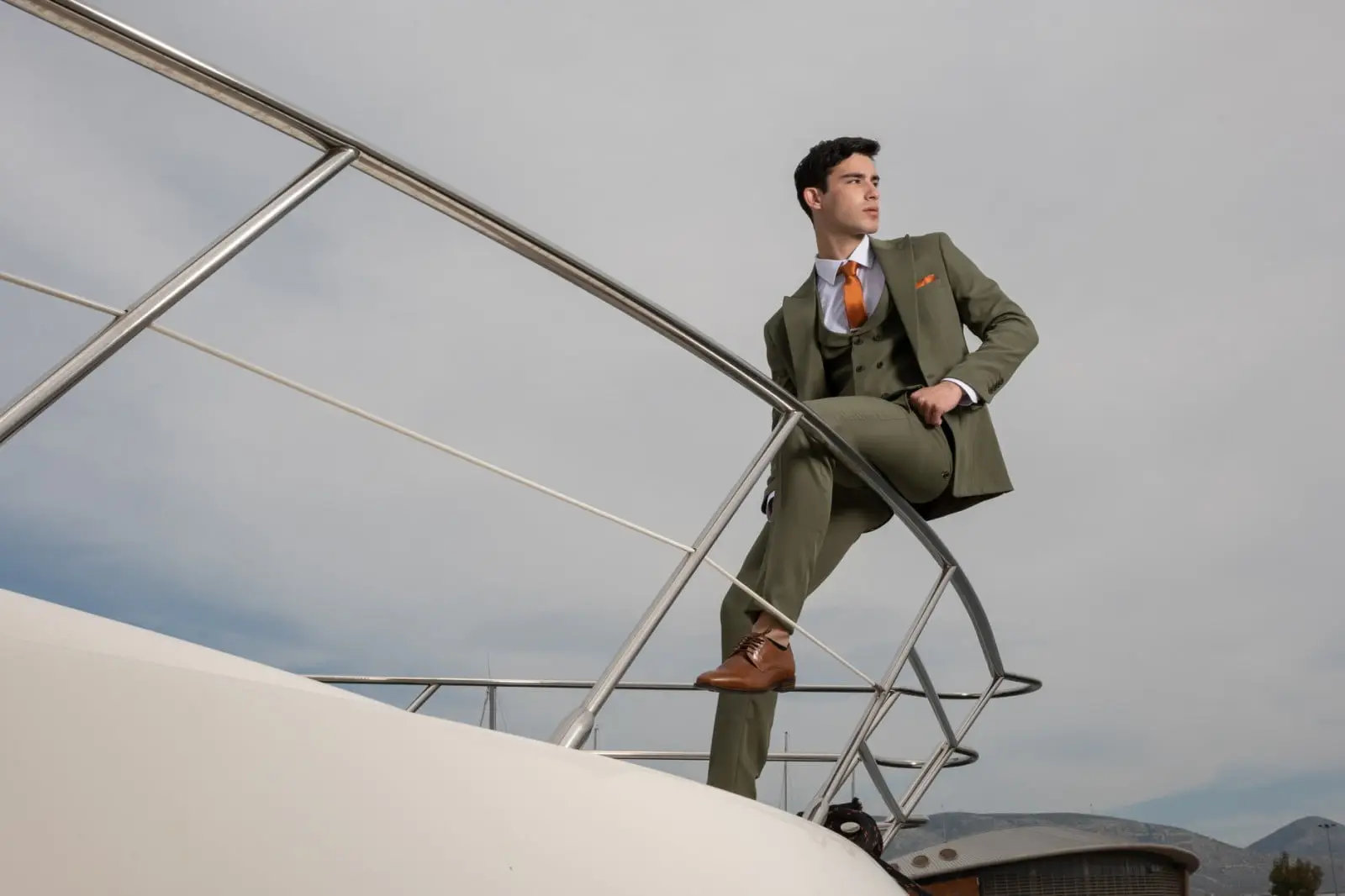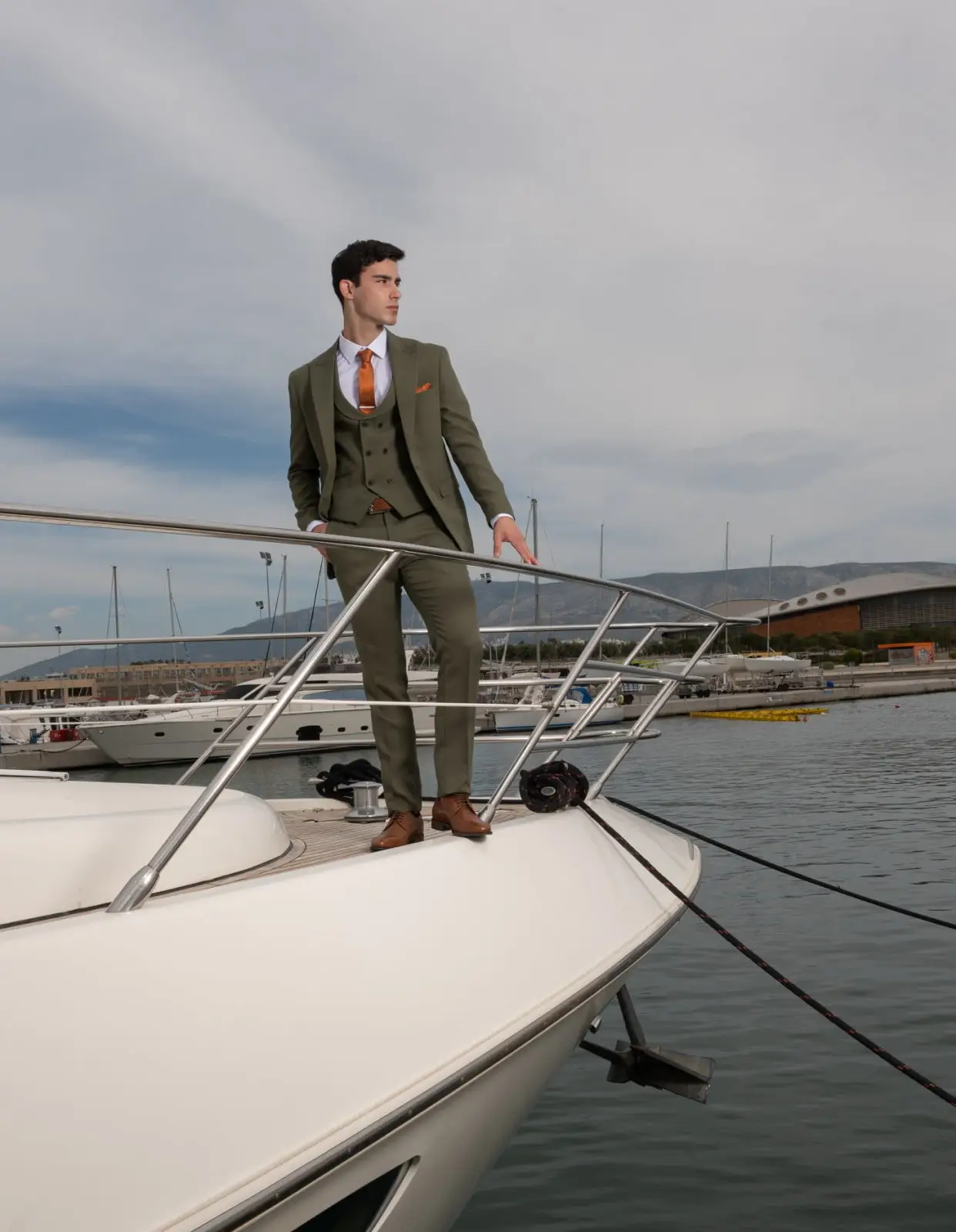 Ανδρικό Κοστούμι Λαδί Με Γιλέκο Senso Diverso S24-27