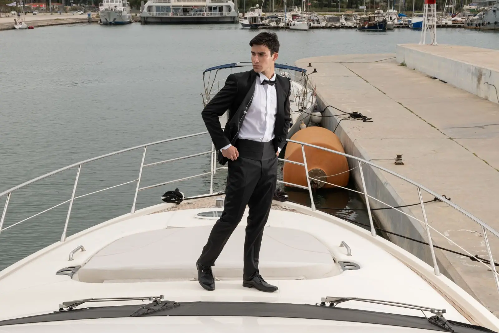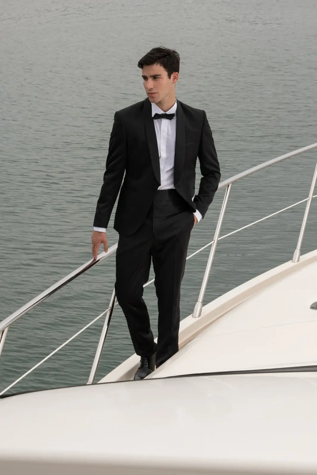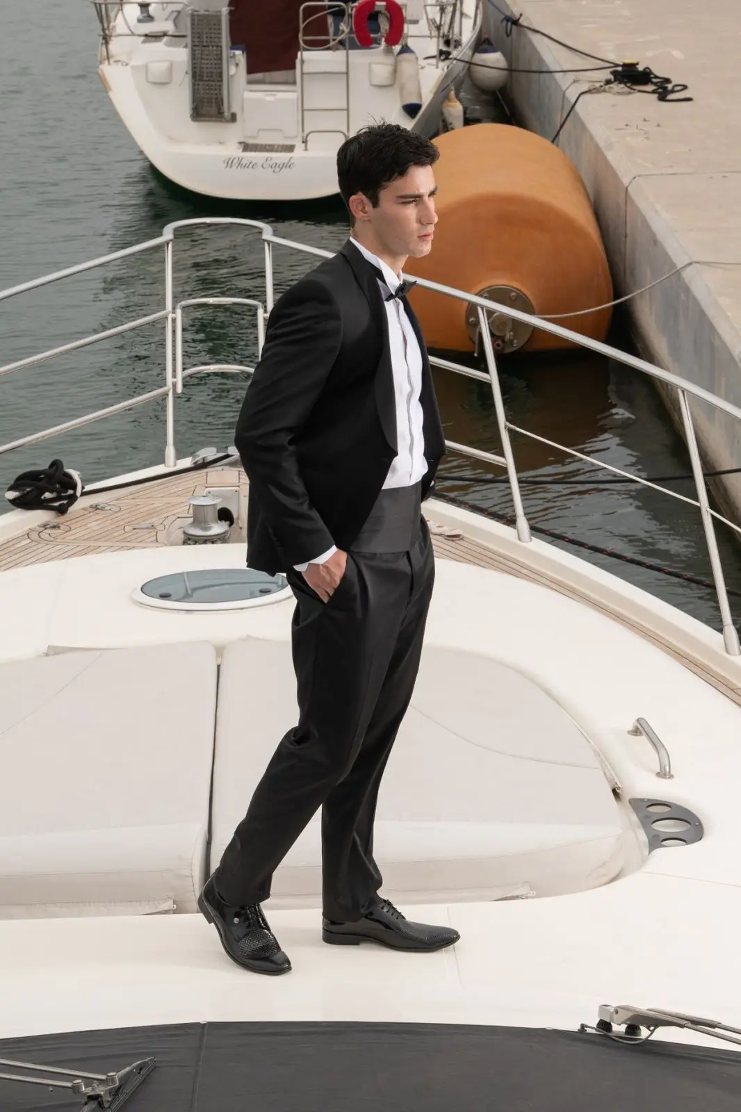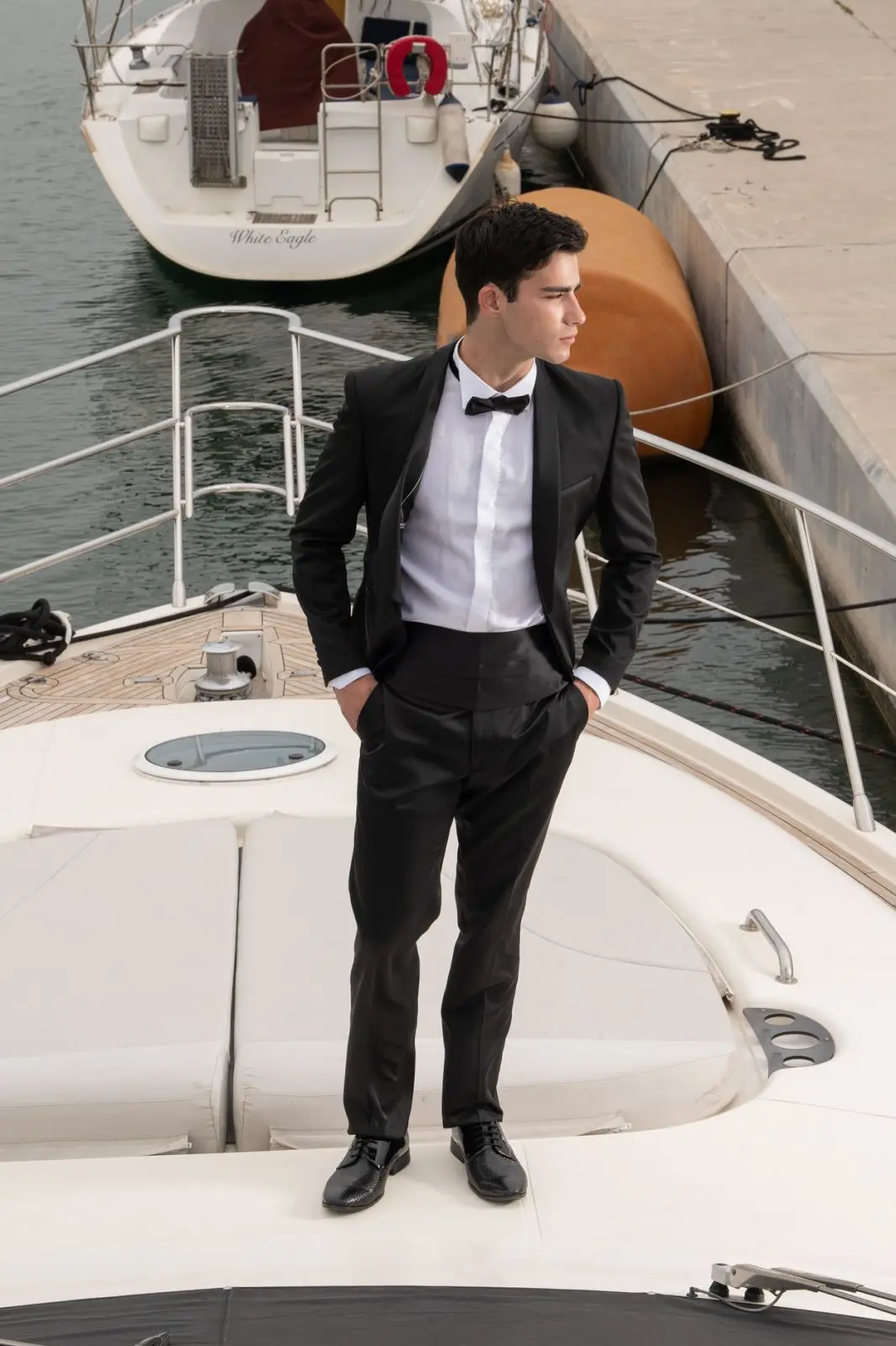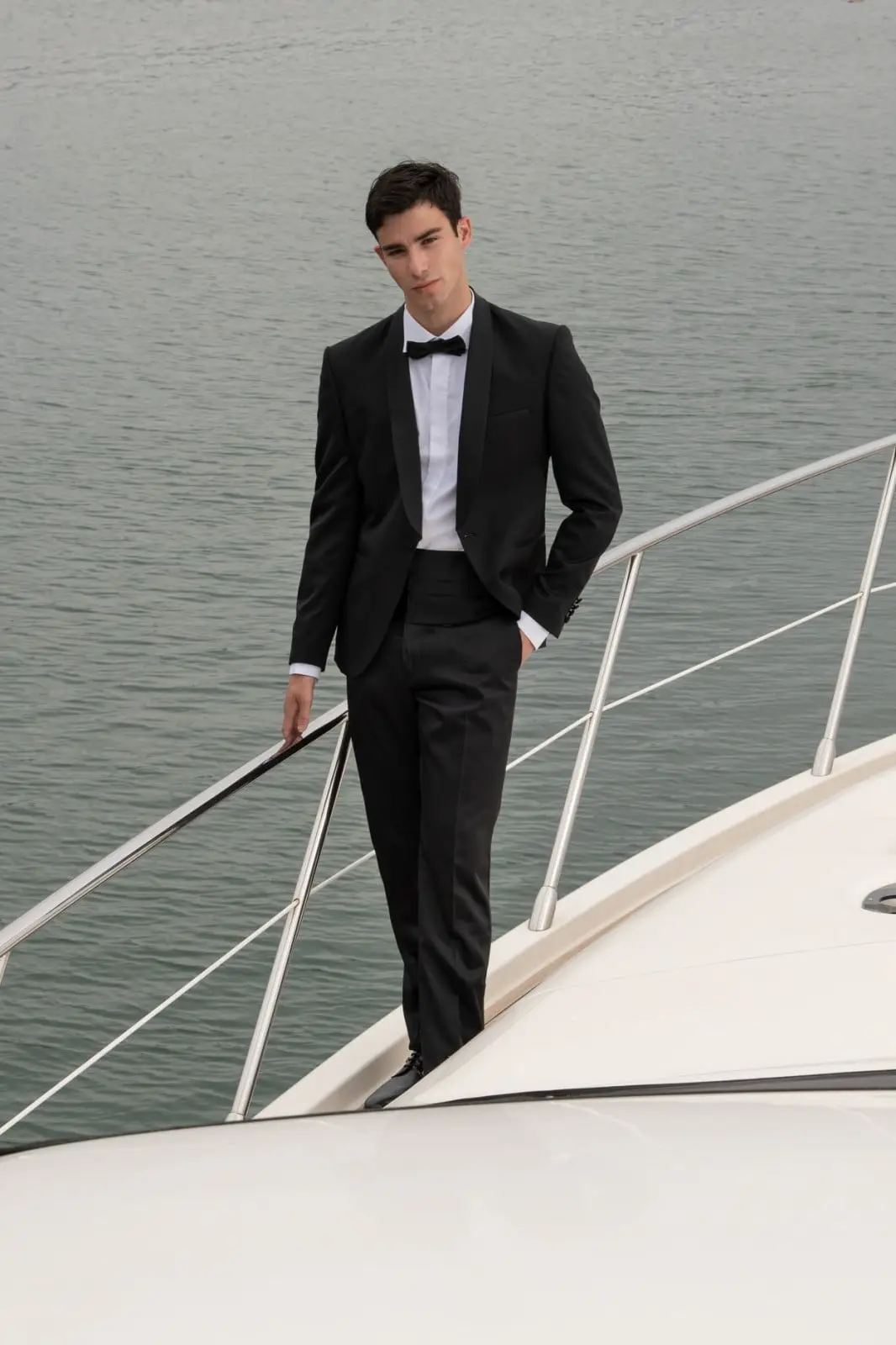 Μοναδικό γαμπριάτικο κοστούμι με ζωνάρι και παπιγιόν.