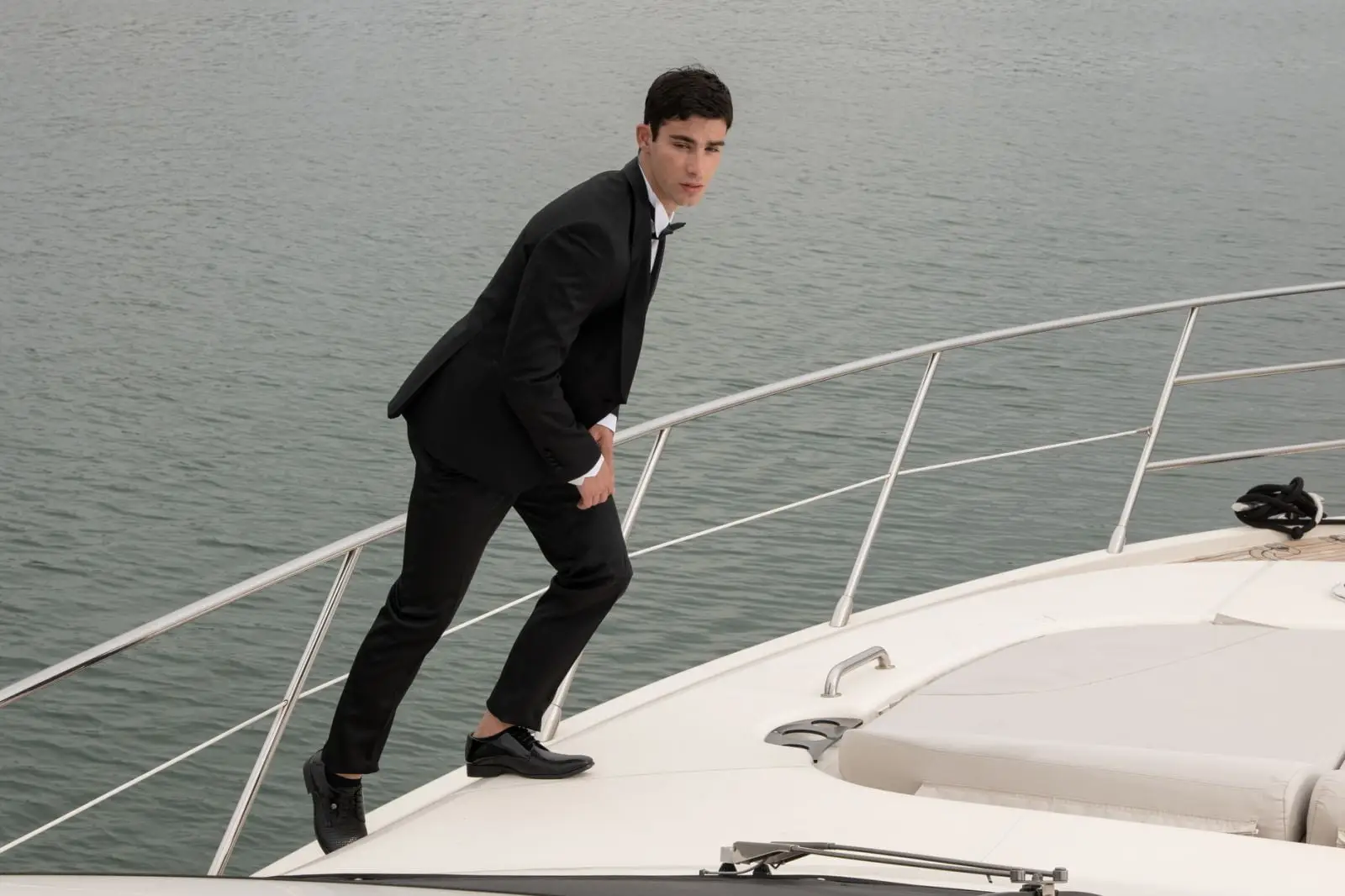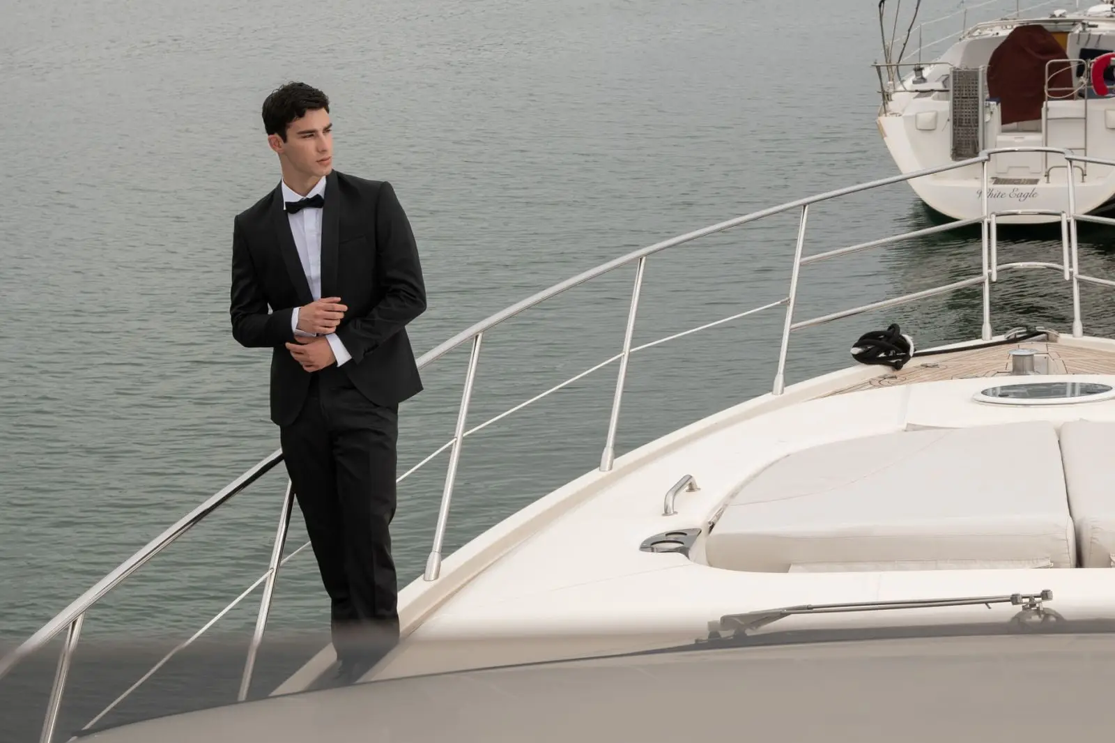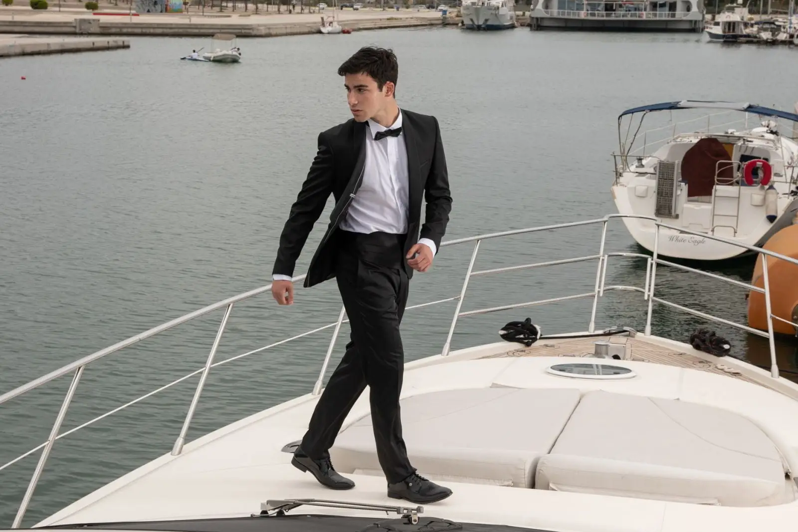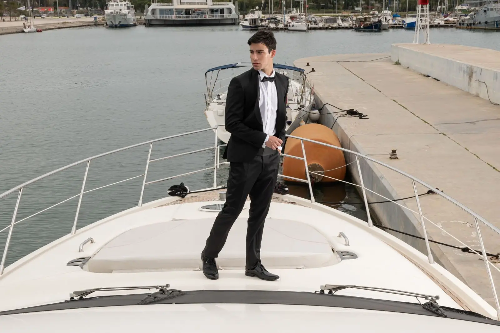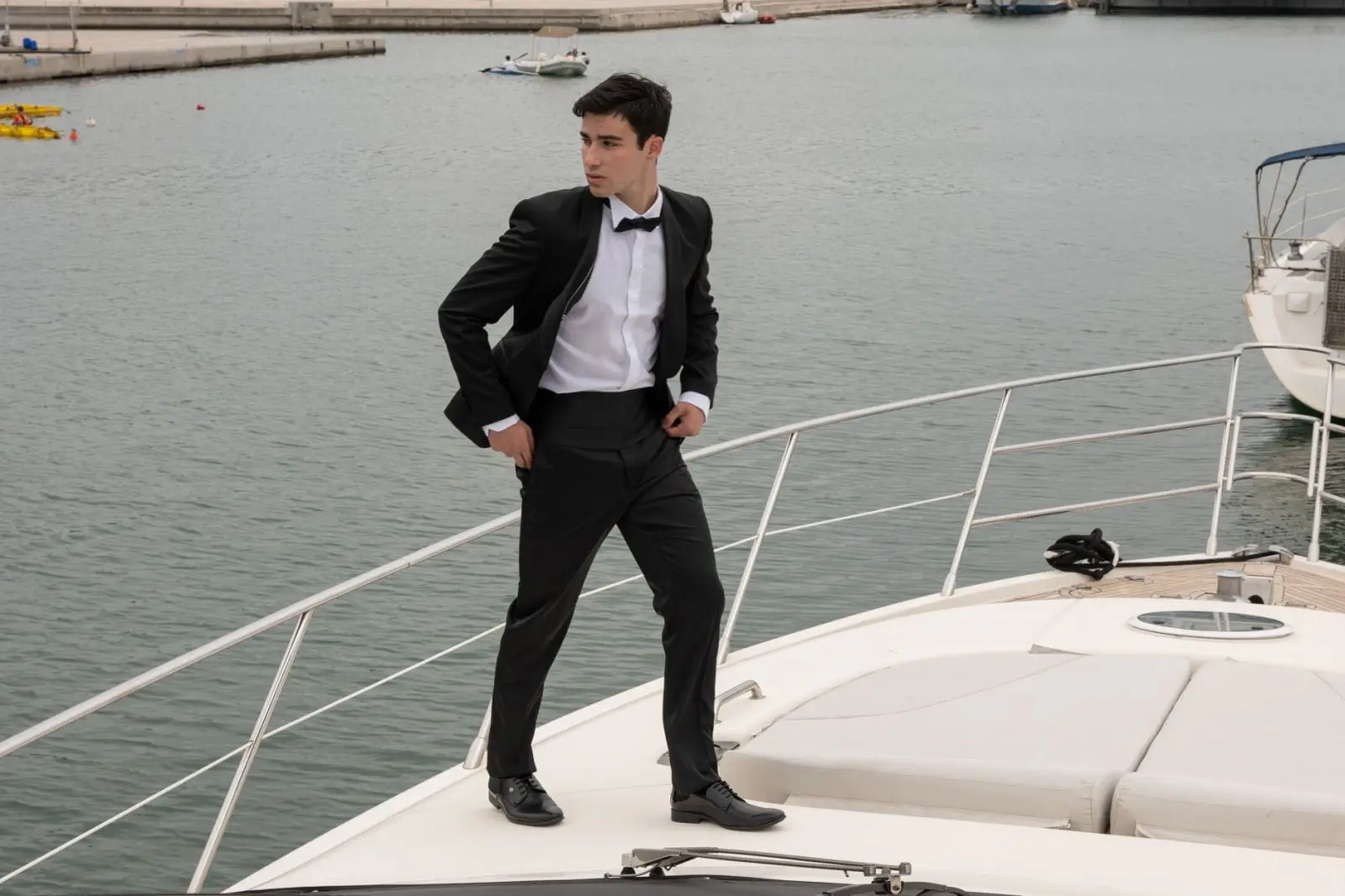 Μοναδικό γαμπριάτικο κοστούμι με ζωνάρι και παπιγιόν.