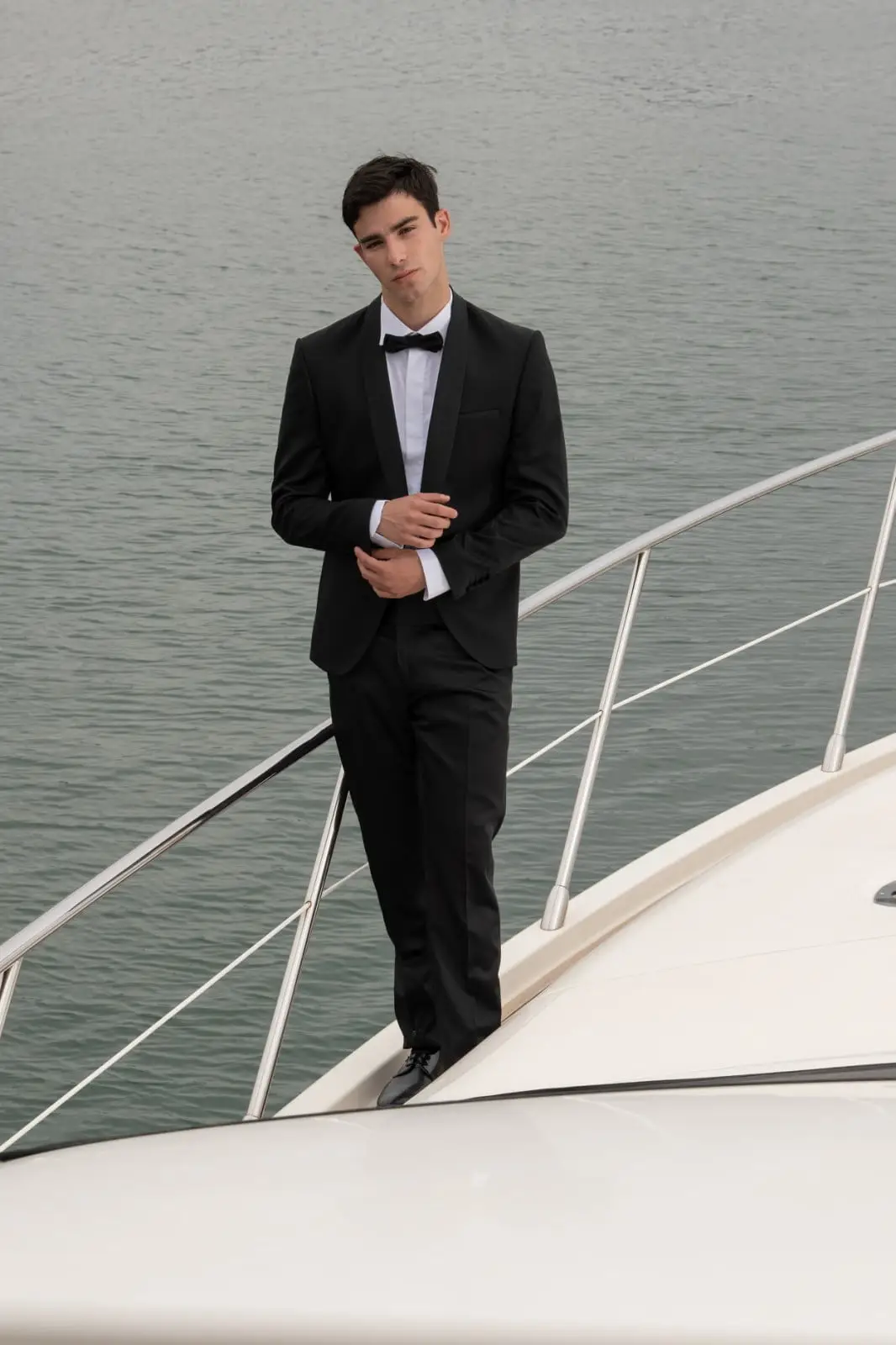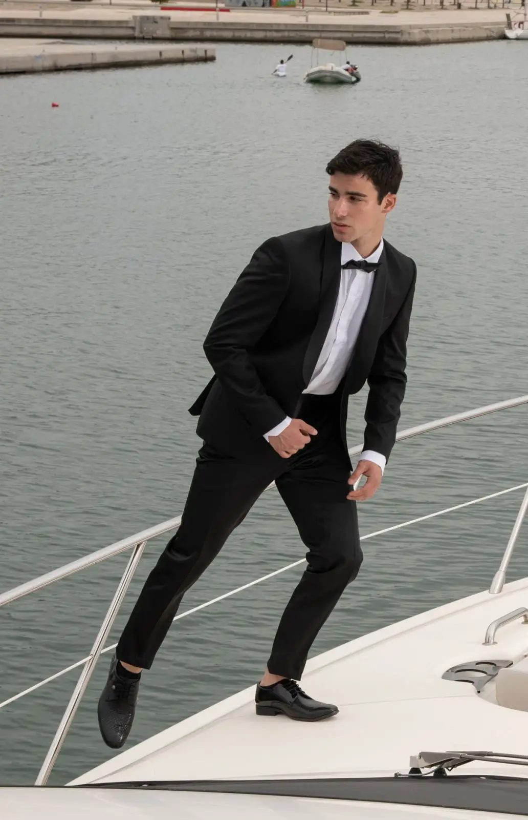 Γαμπριάτικο Κοστούμι Μαύρο Στενή Γραμμή S24-38
