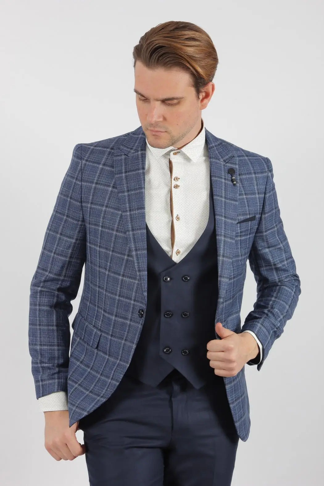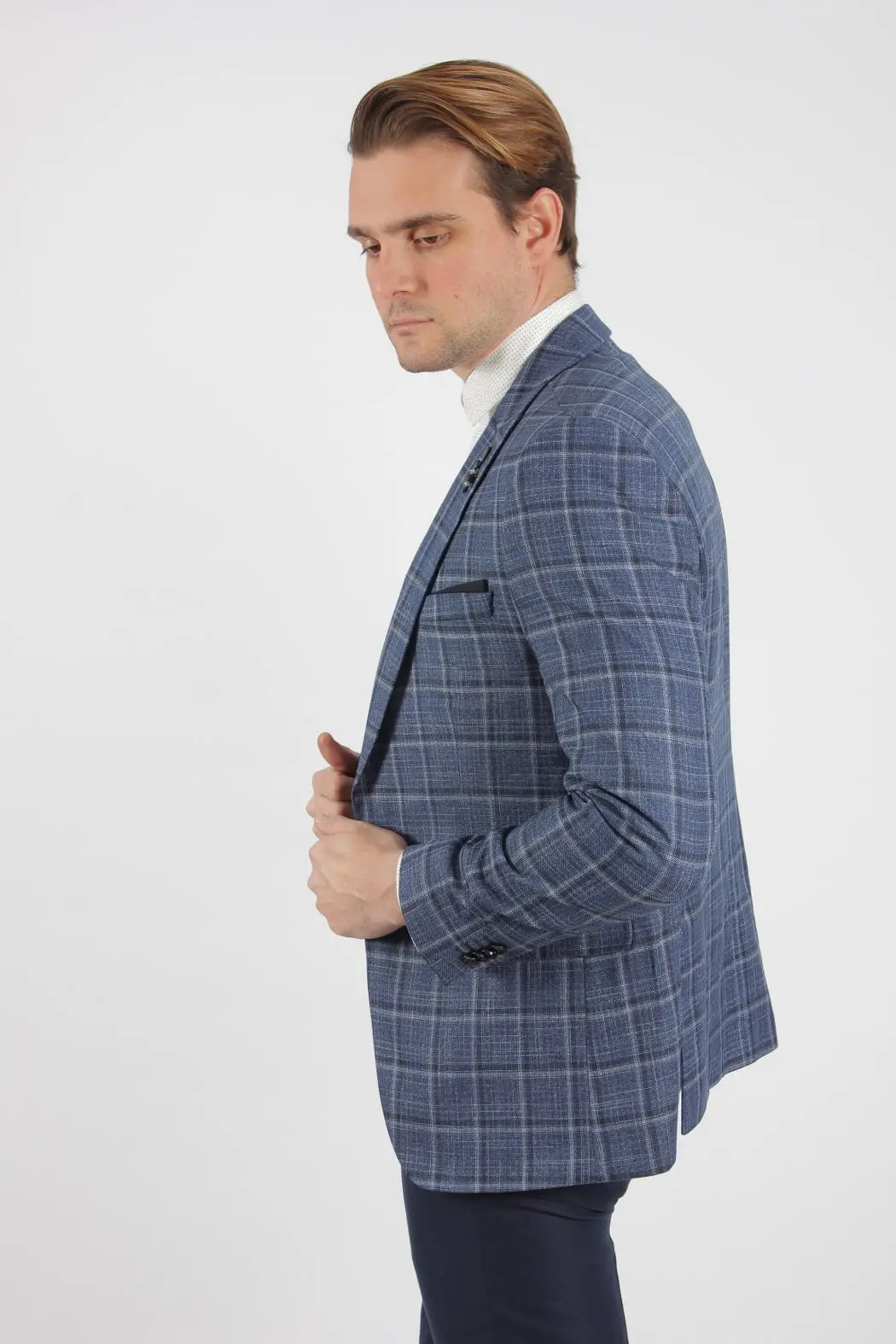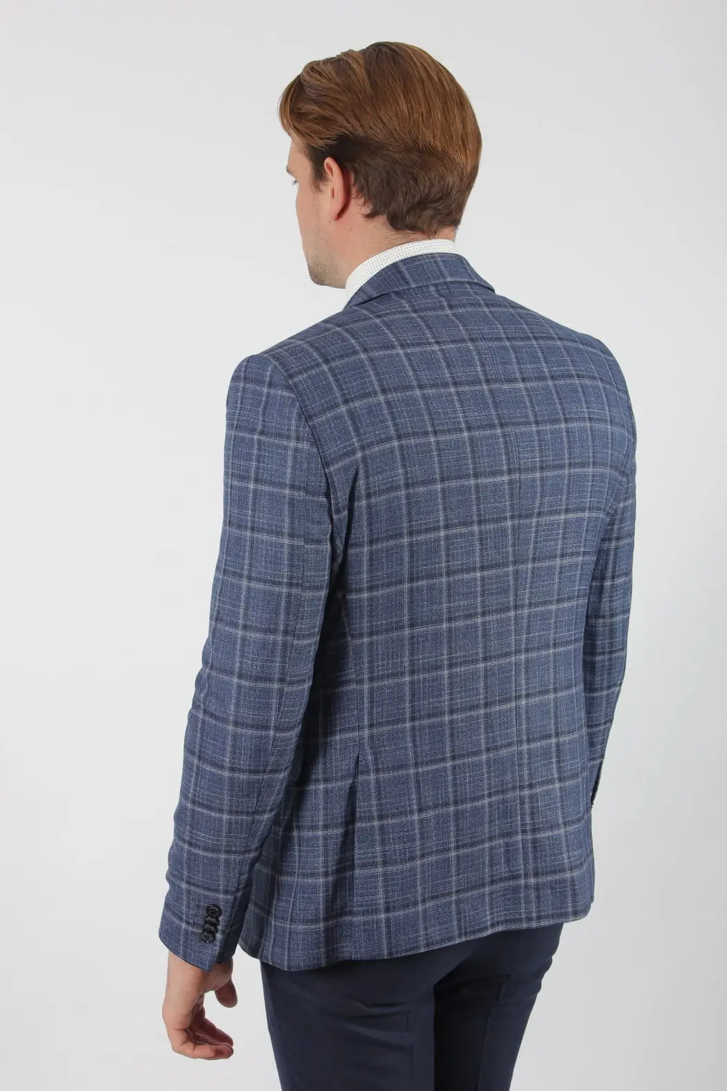 Ανδρικό Slim Fit Σακάκι σε Μπλε Καρό Kapralos Noble