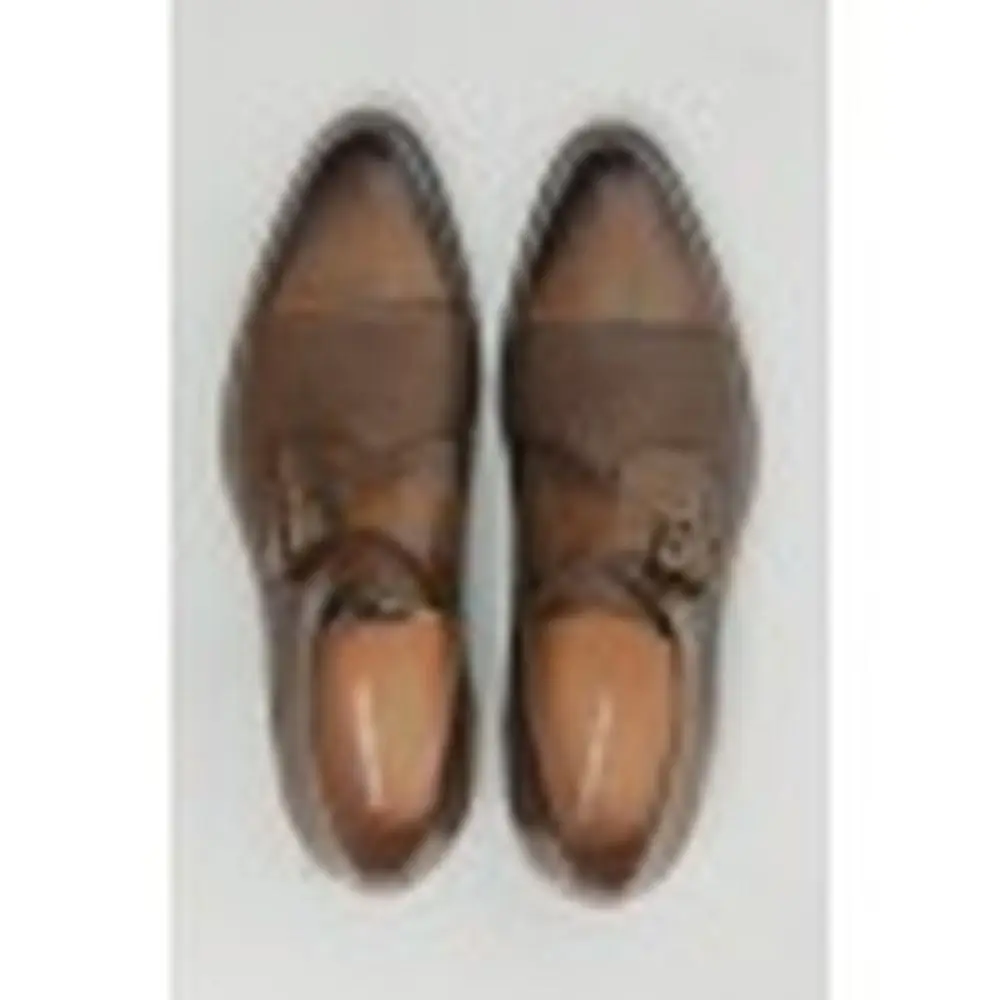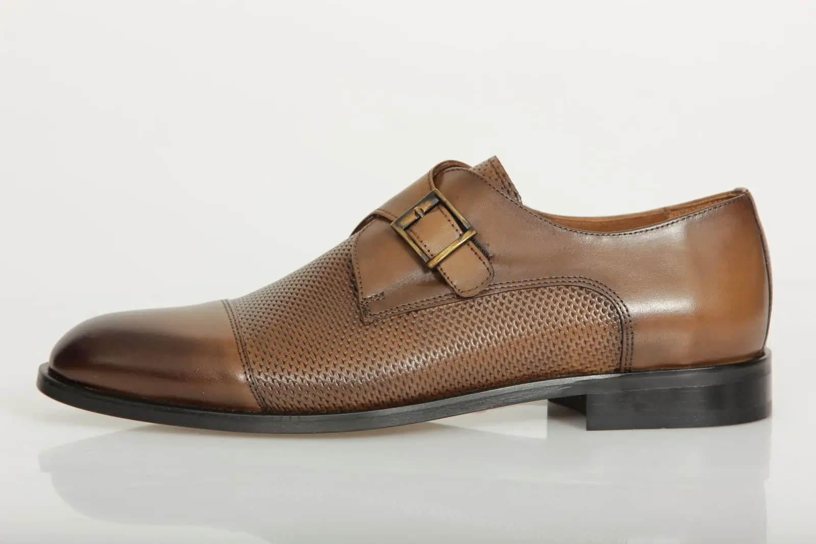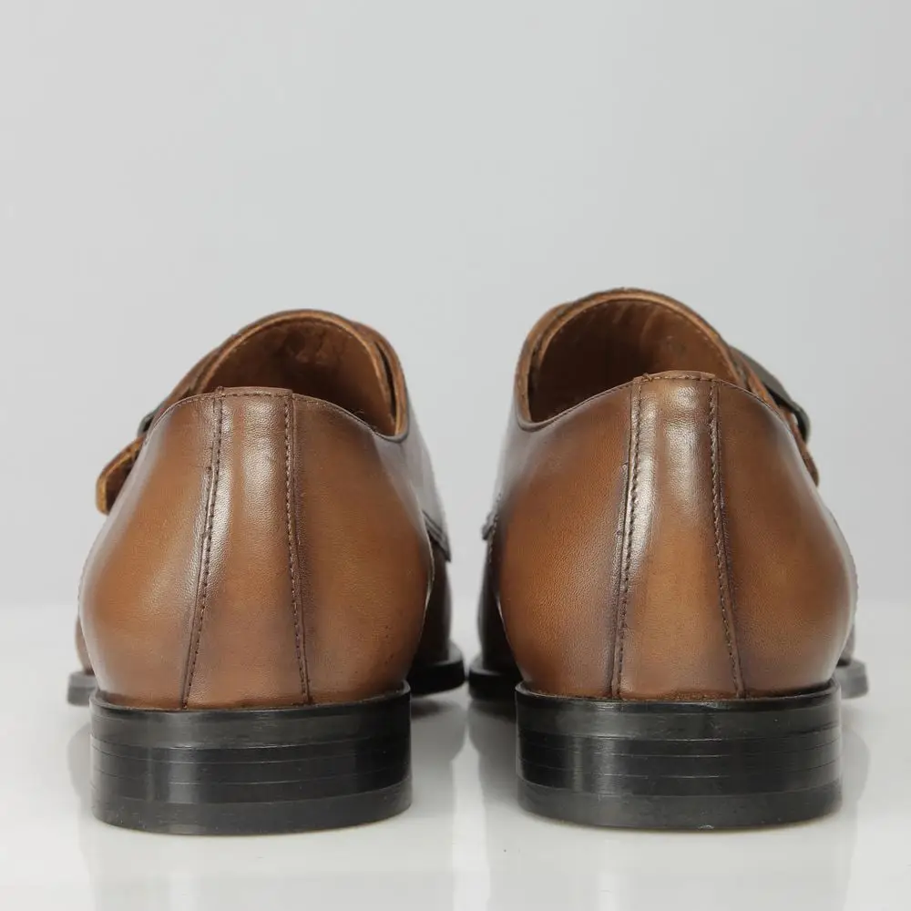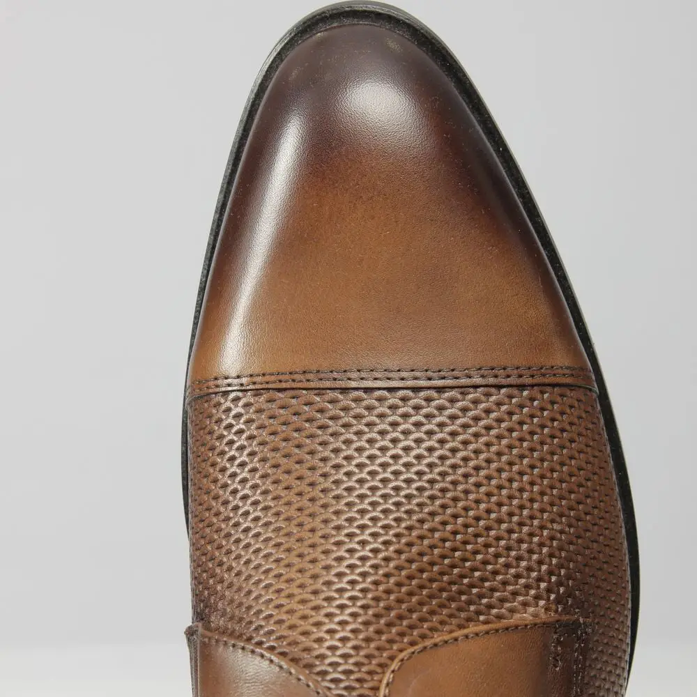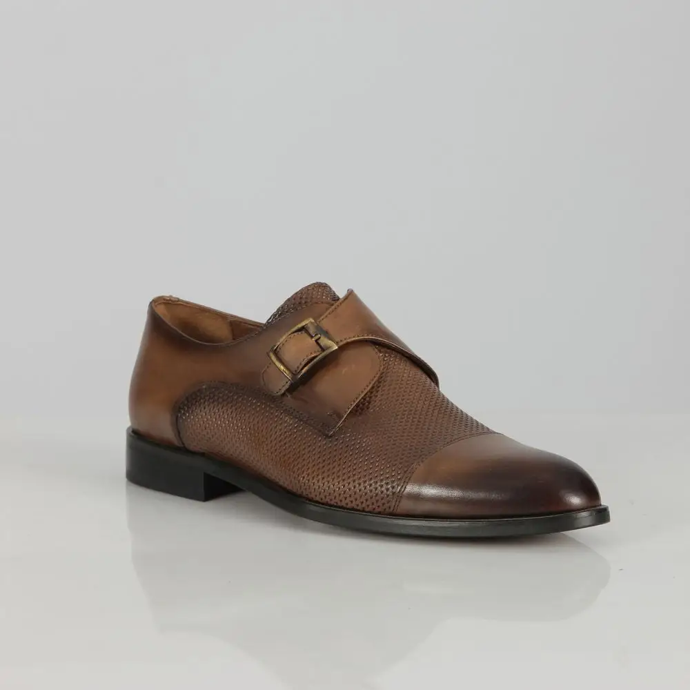 Ανδρικό Δερμάτινο Παπούτσι Monk Strap Diamond Pattern Καφέ J906