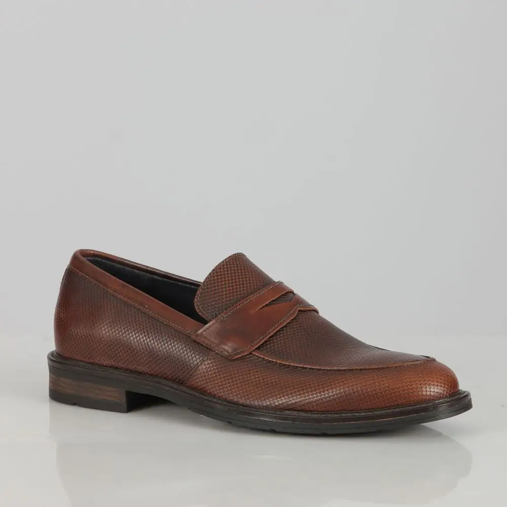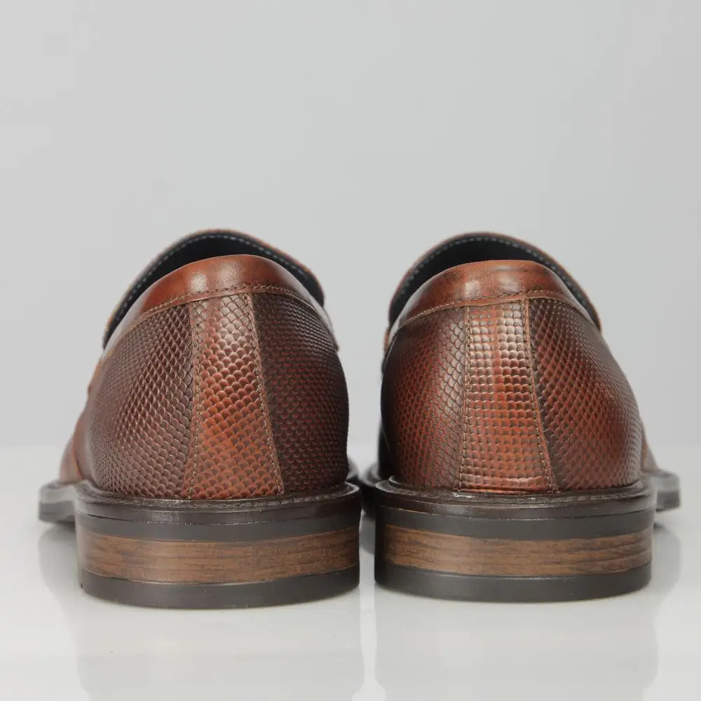 Ανδρικό Δερμάτινο Παπούτσι Penny Loafer Καφέ Diamond Pattern 624-2